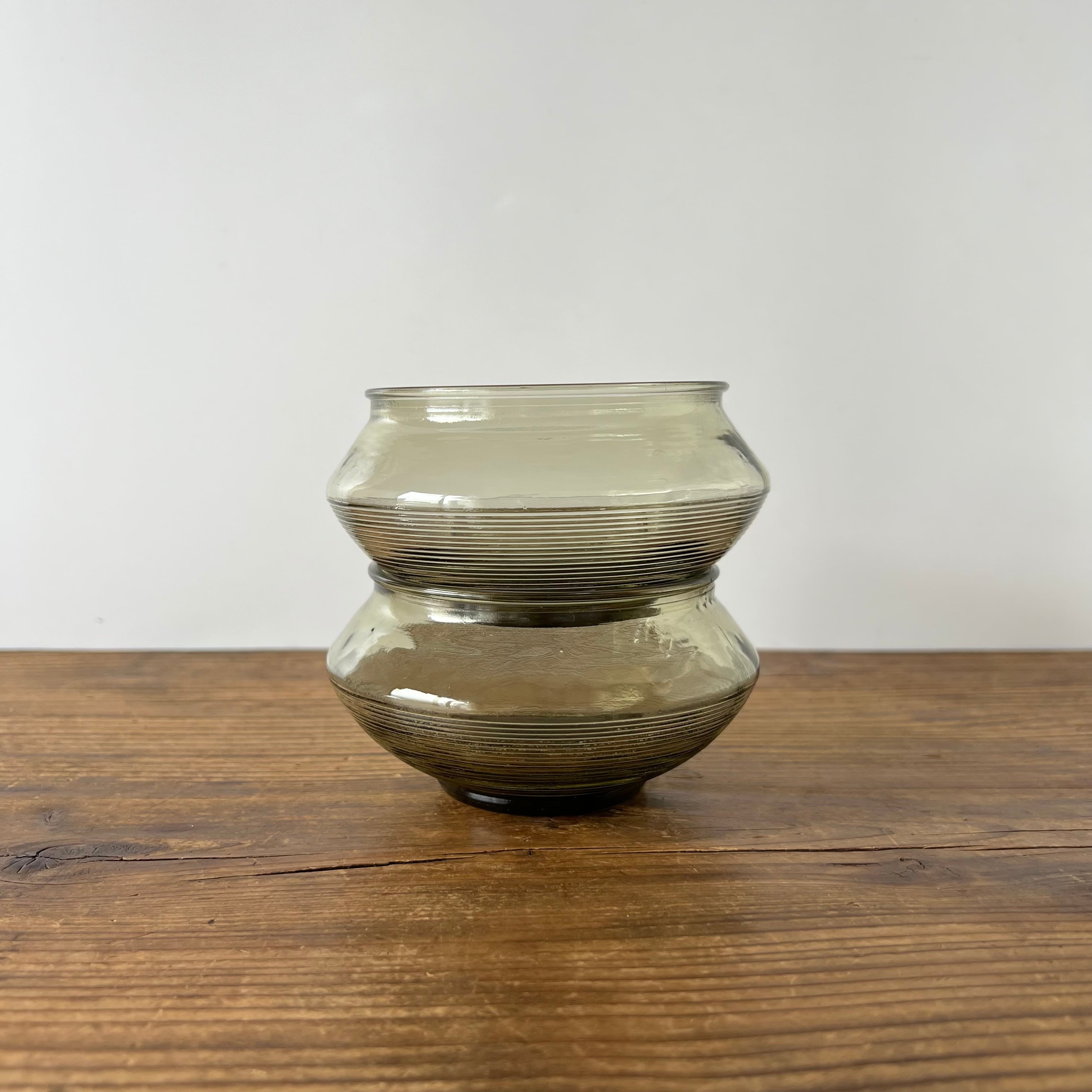 同シリーズのタンブラーはマスタード容器、ボトルはジュースボトルですが、こちらのガラスボウルはジャム容器だったようです。