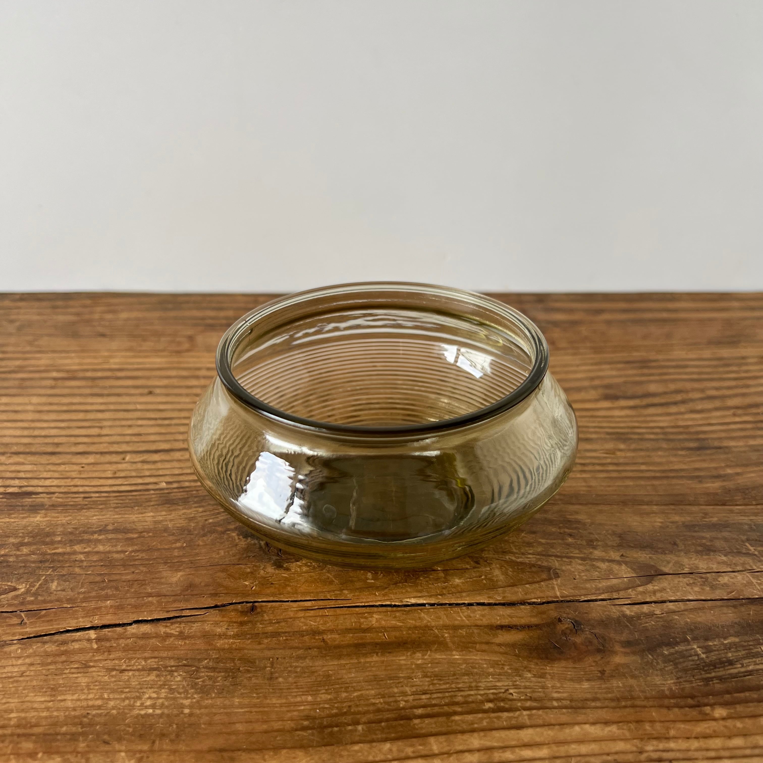 同シリーズのタンブラーはマスタード容器、ボトルはジュースボトルですが、こちらのガラスボウルはジャム容器だったようです。