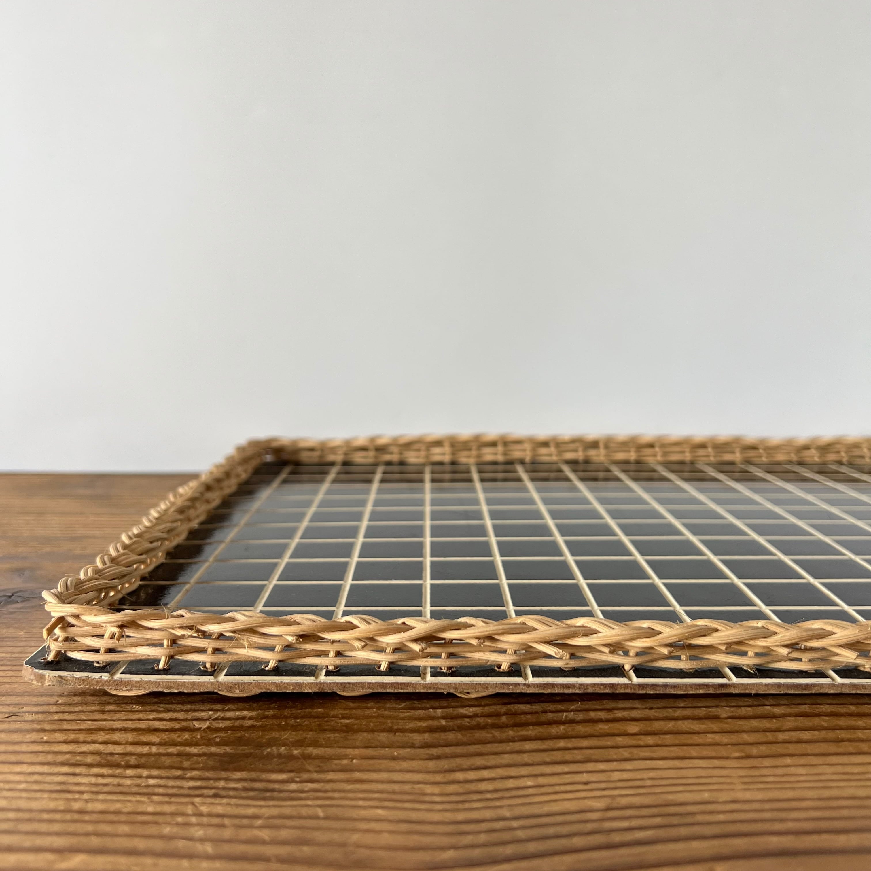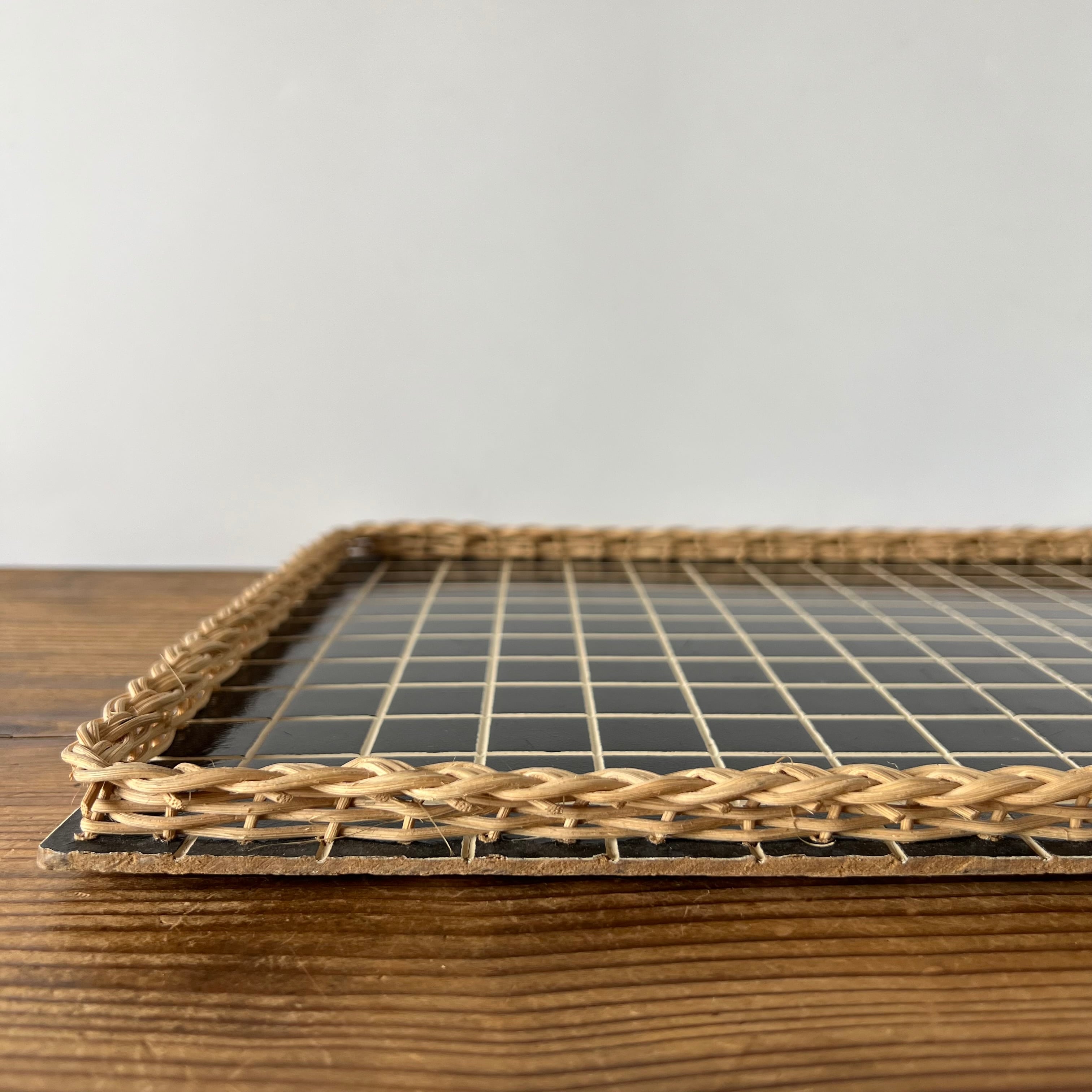 硬めの圧縮ボードに籐が三つ編みどめされています。