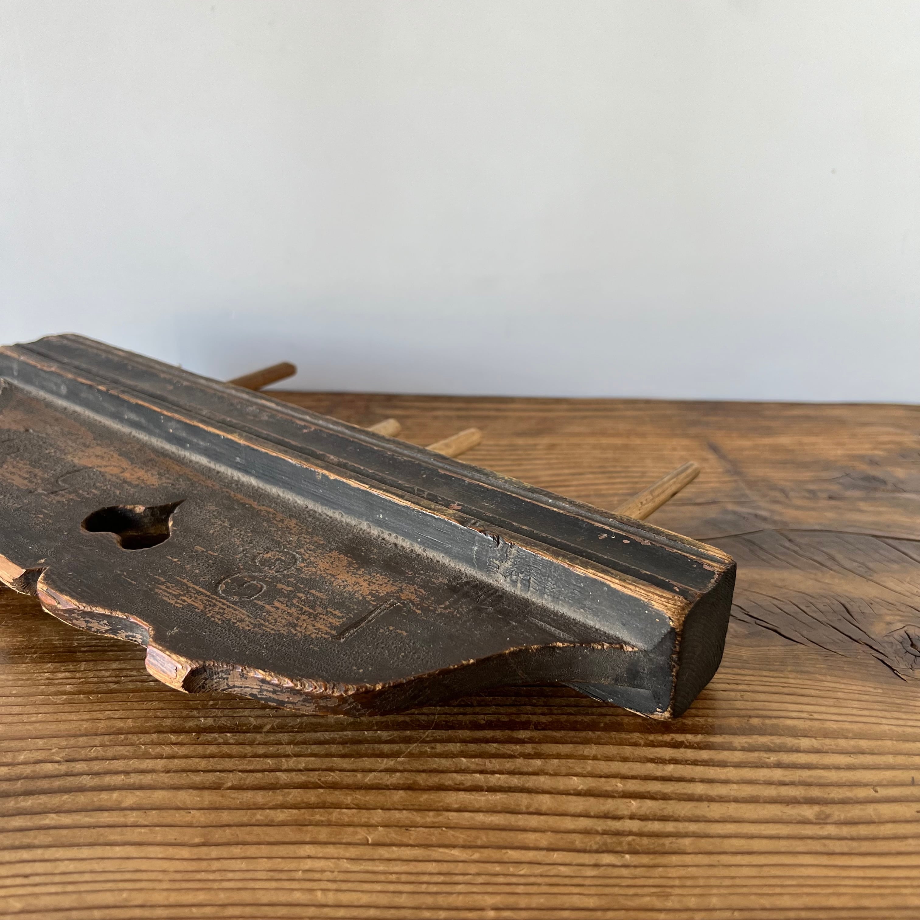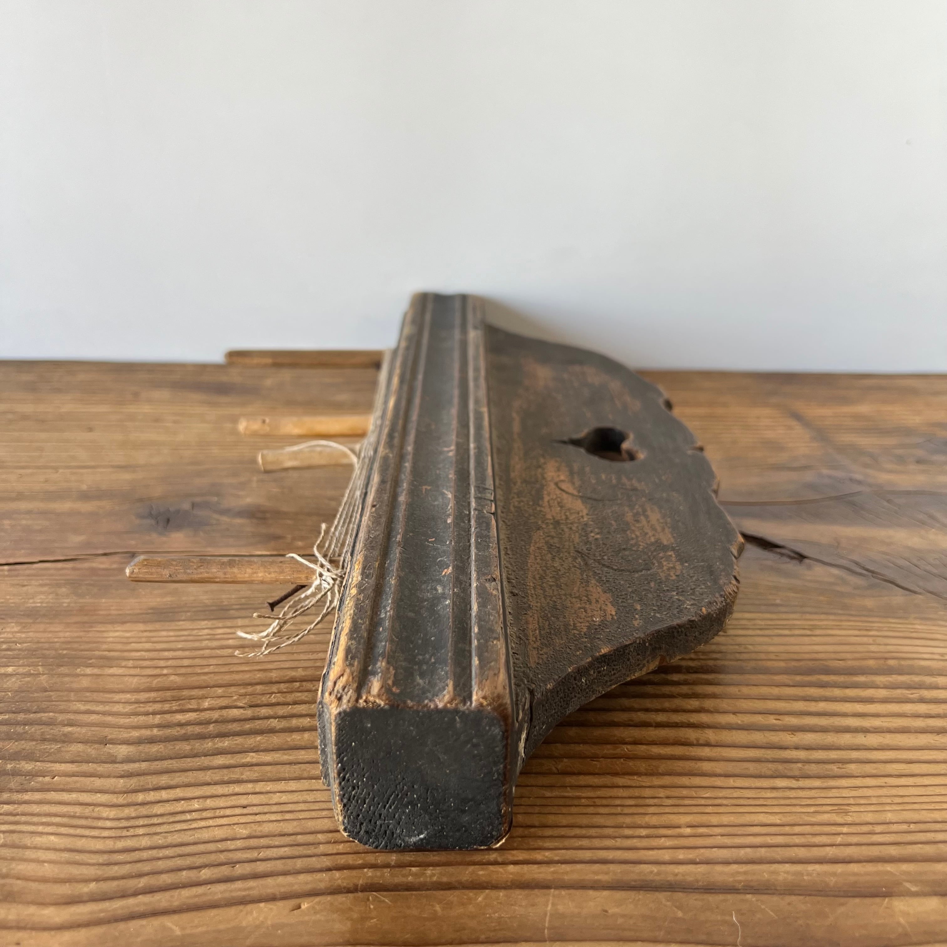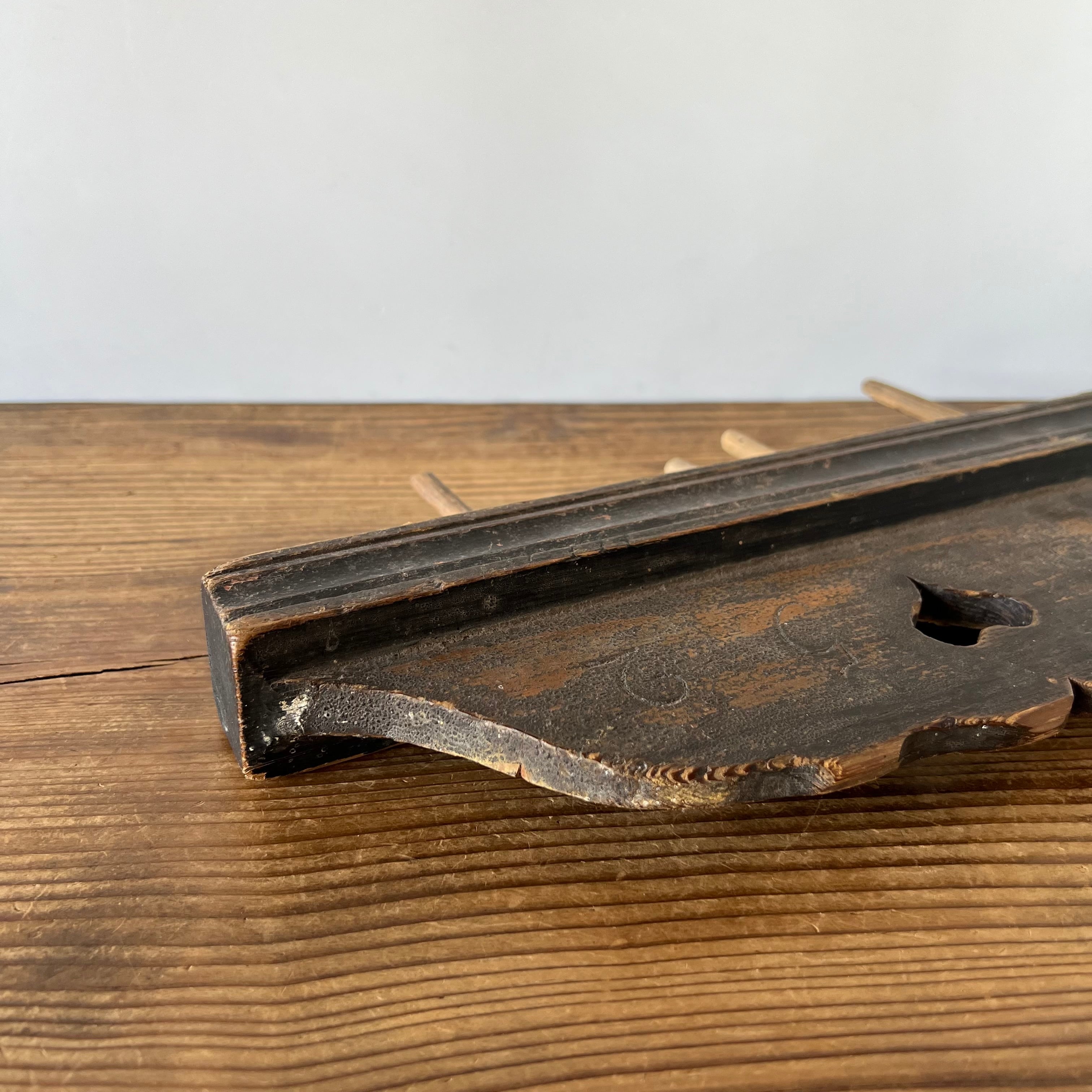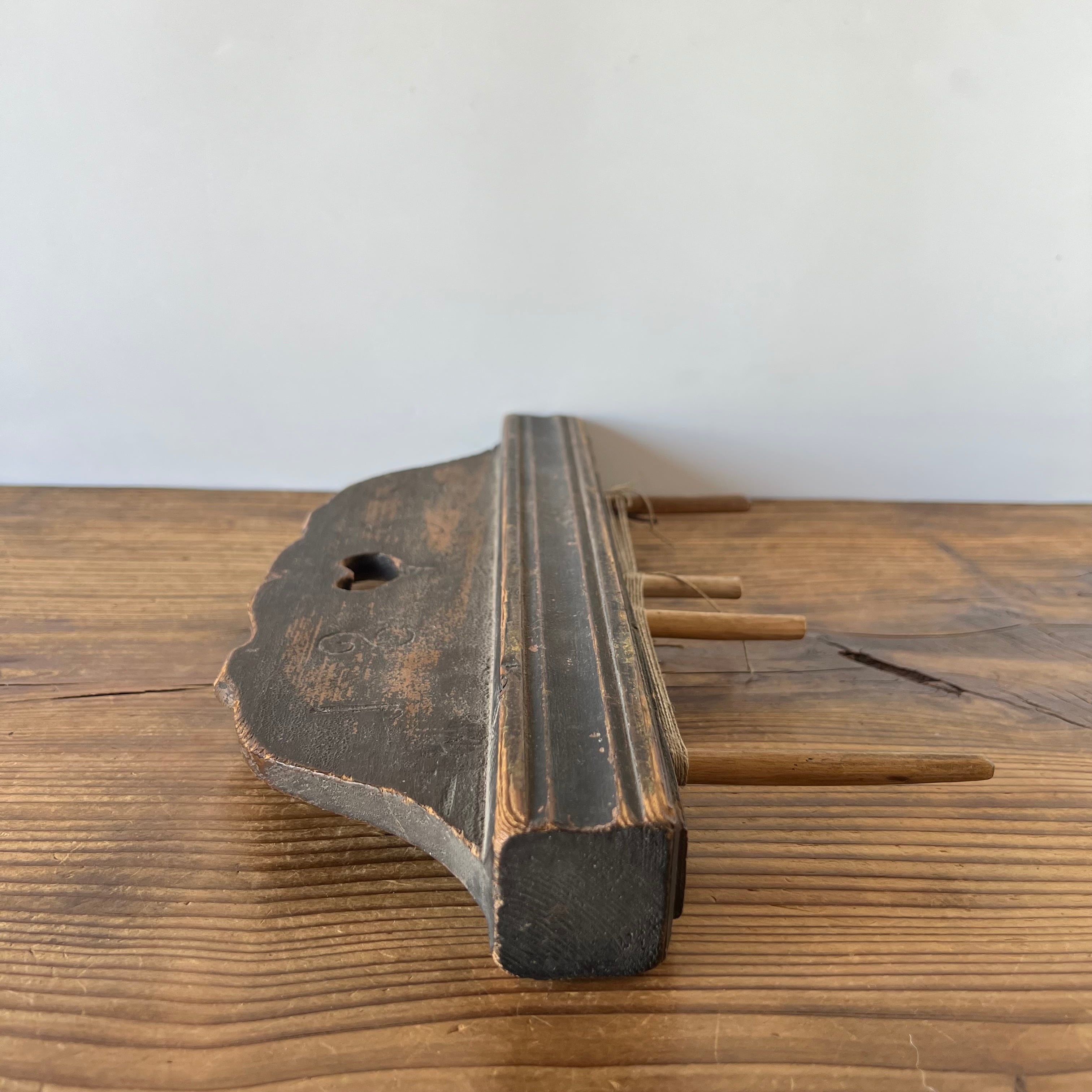 下に付いている4本の棒は家具から外された後に取り付けられ、誰かが糸巻きのように使っていたのかと思います。