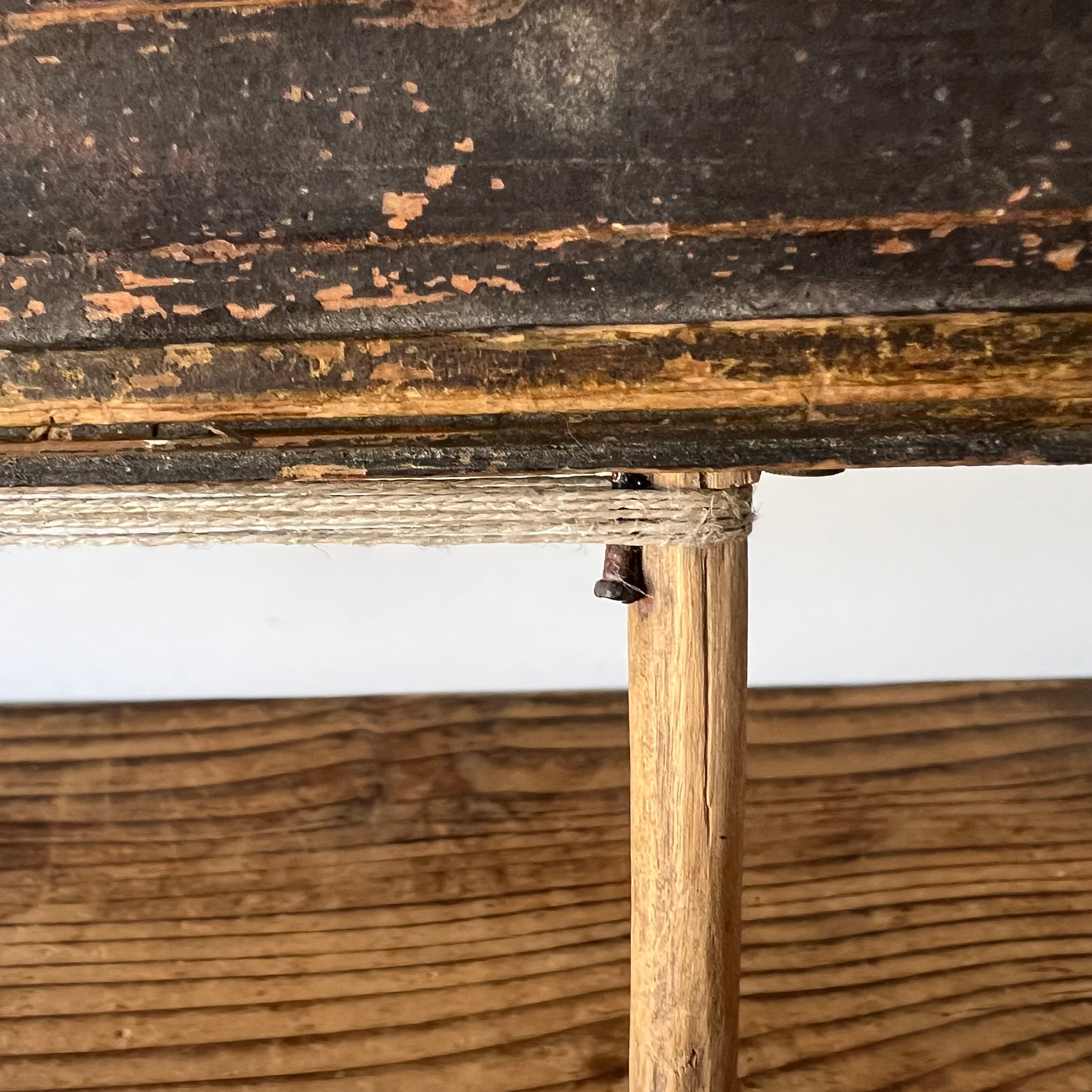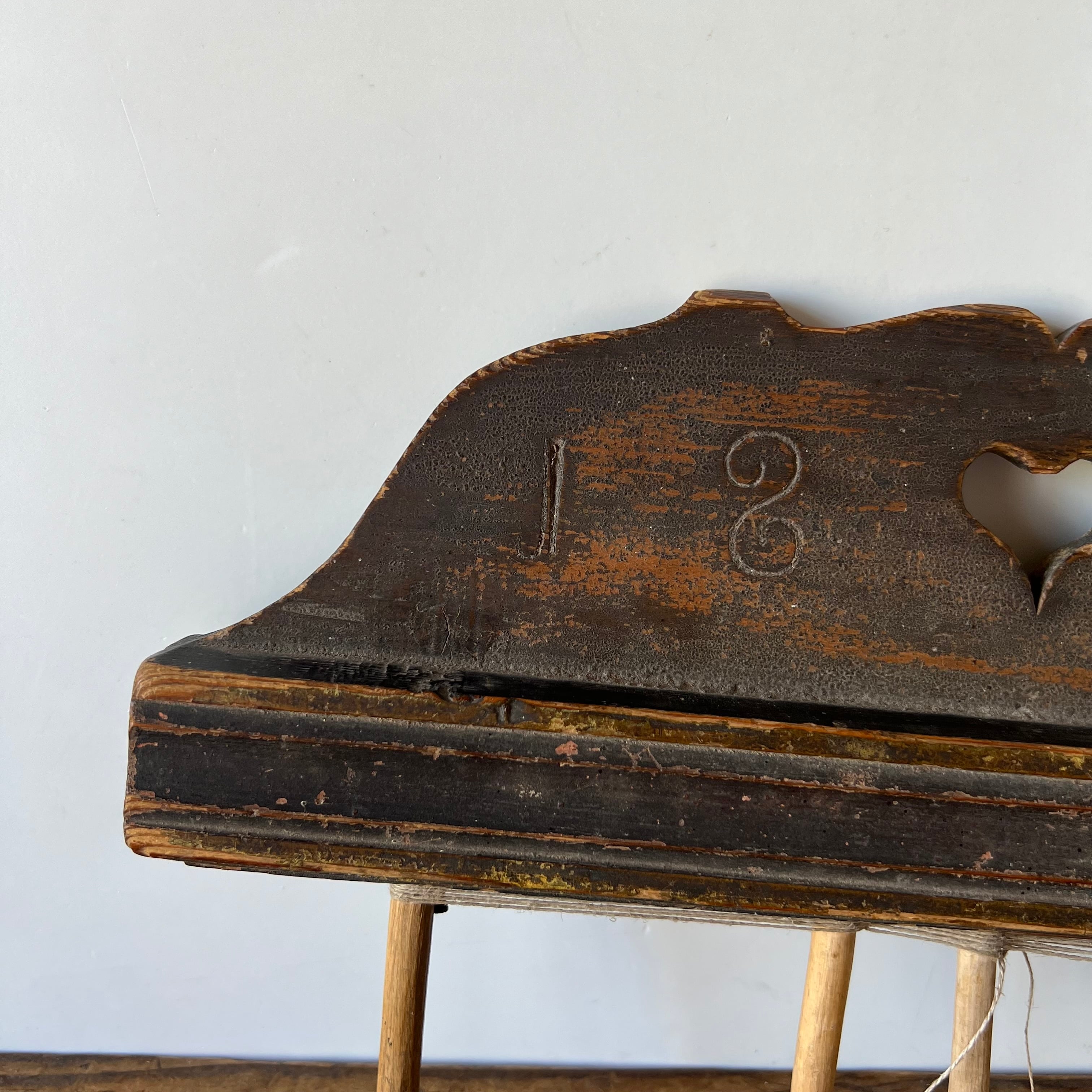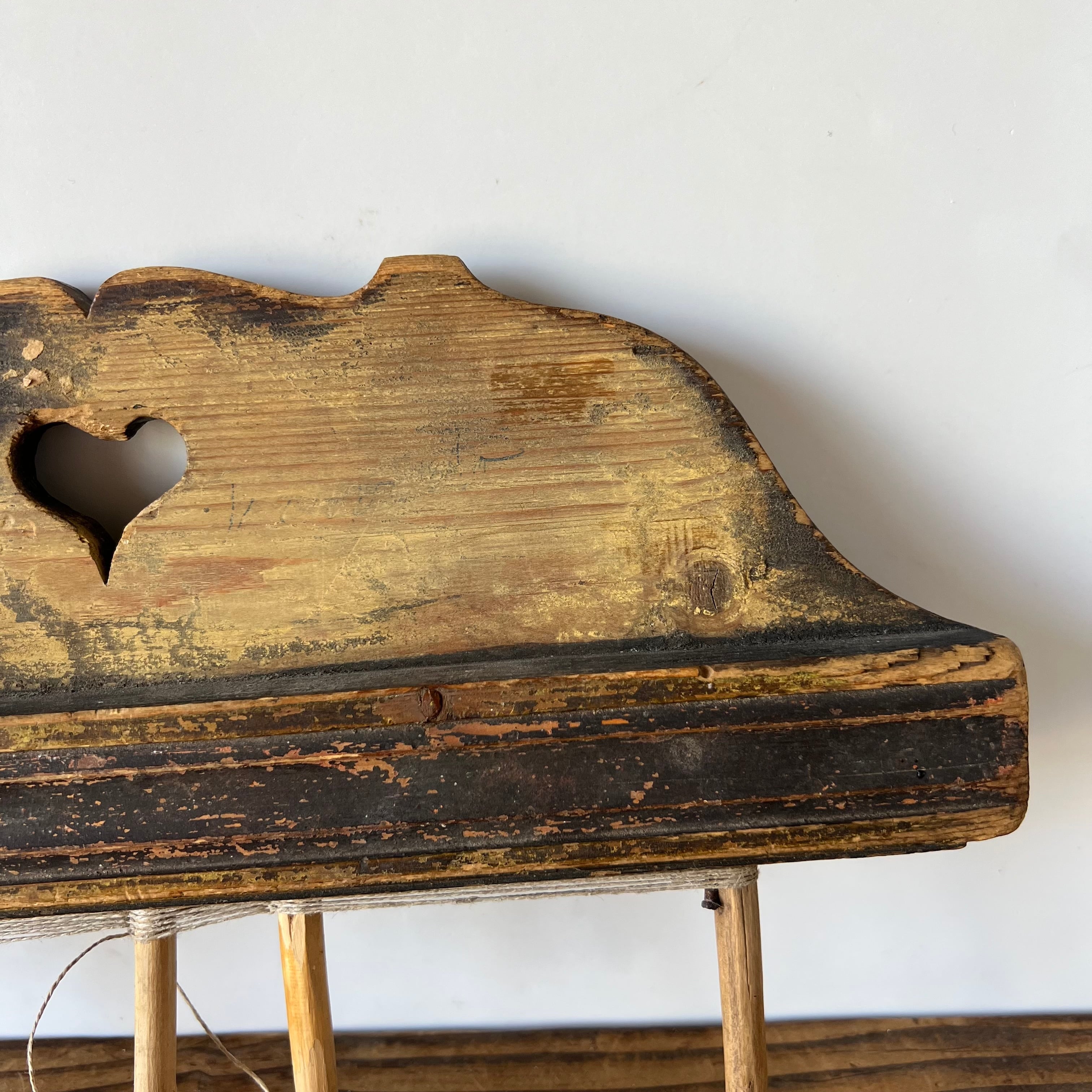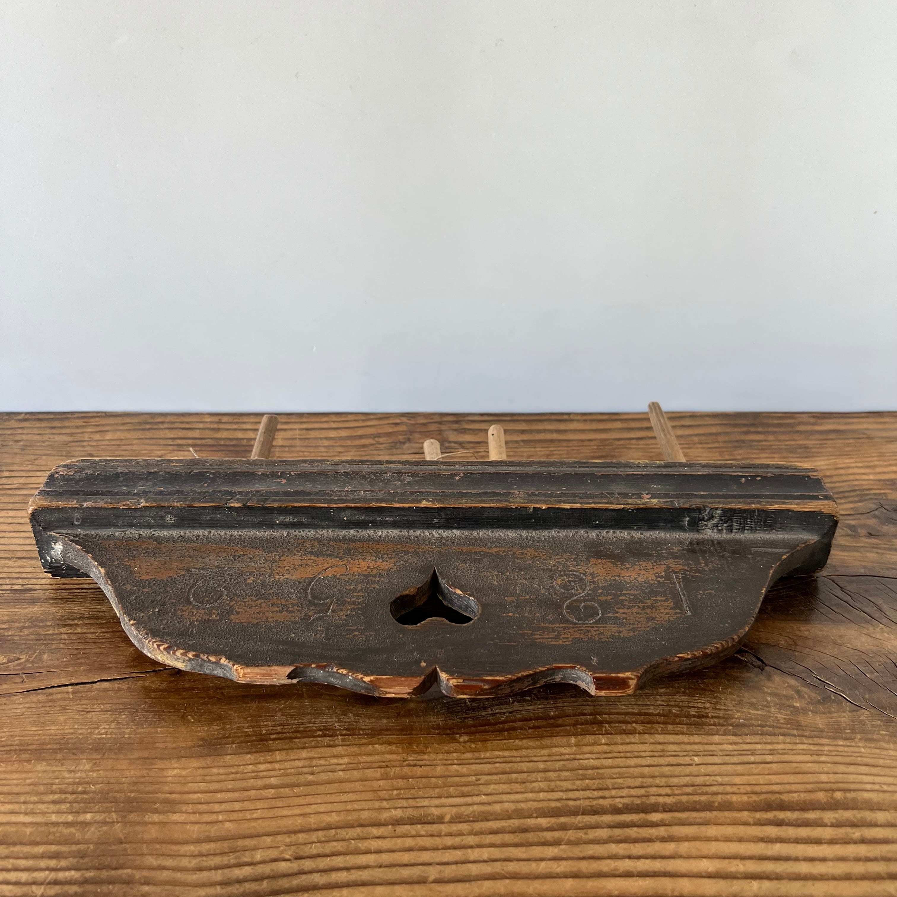 下に付いている4本の棒は家具から外された後に取り付けられ、誰かが糸巻きのように使っていたのかと思います。