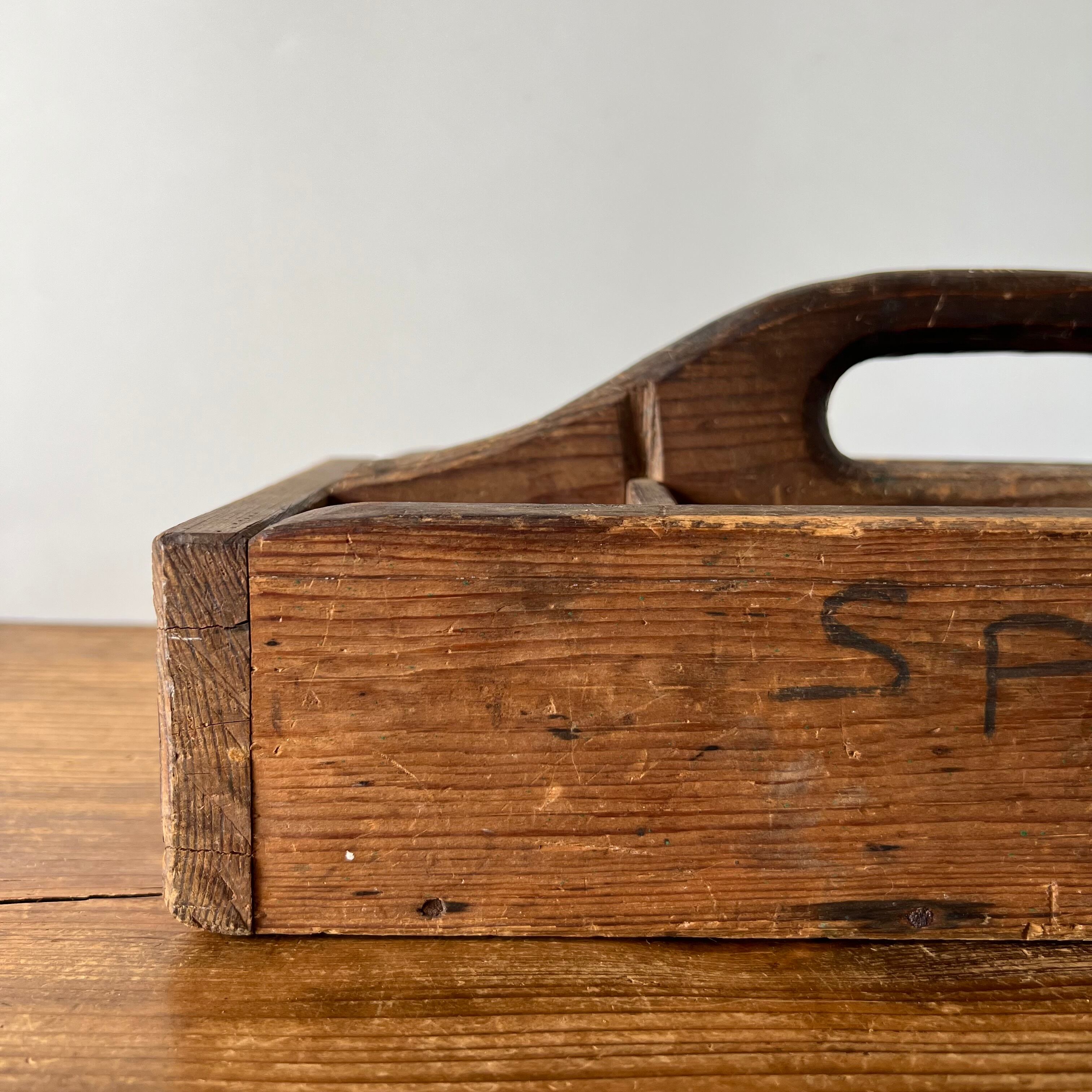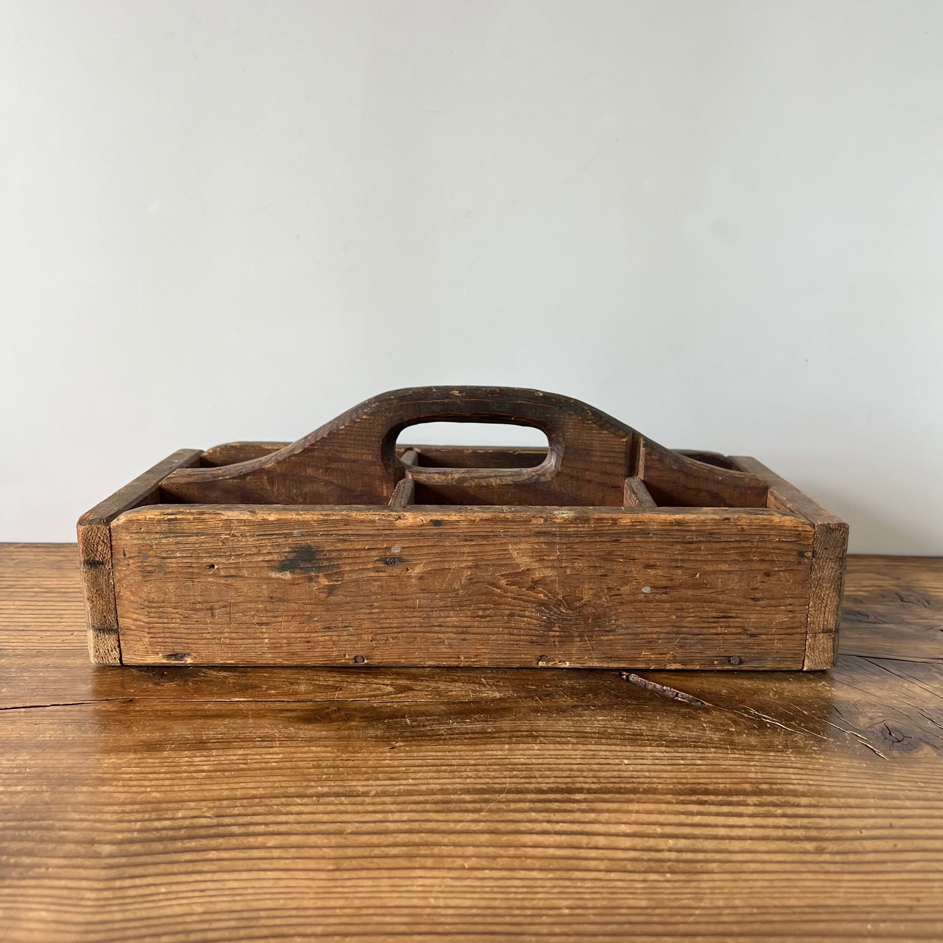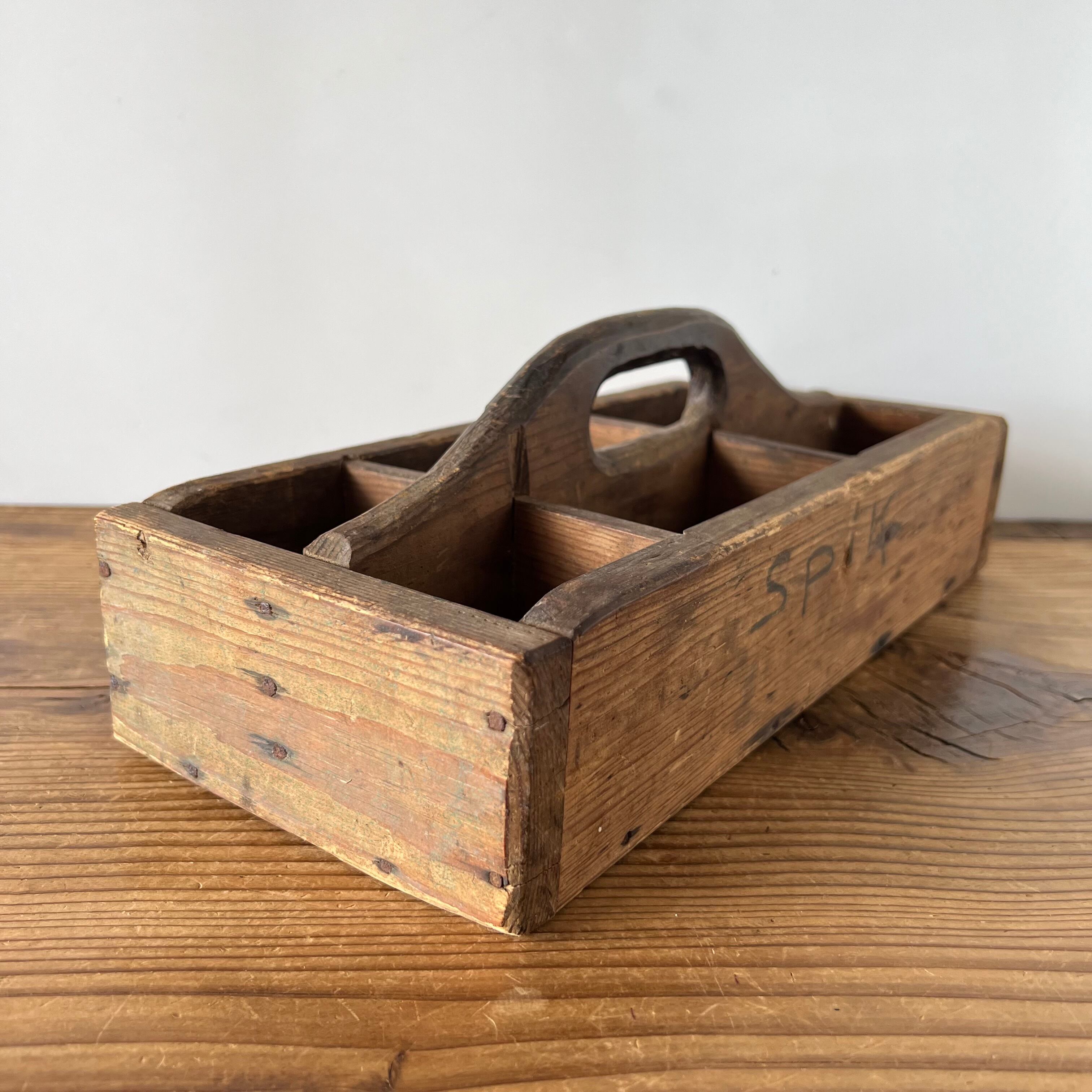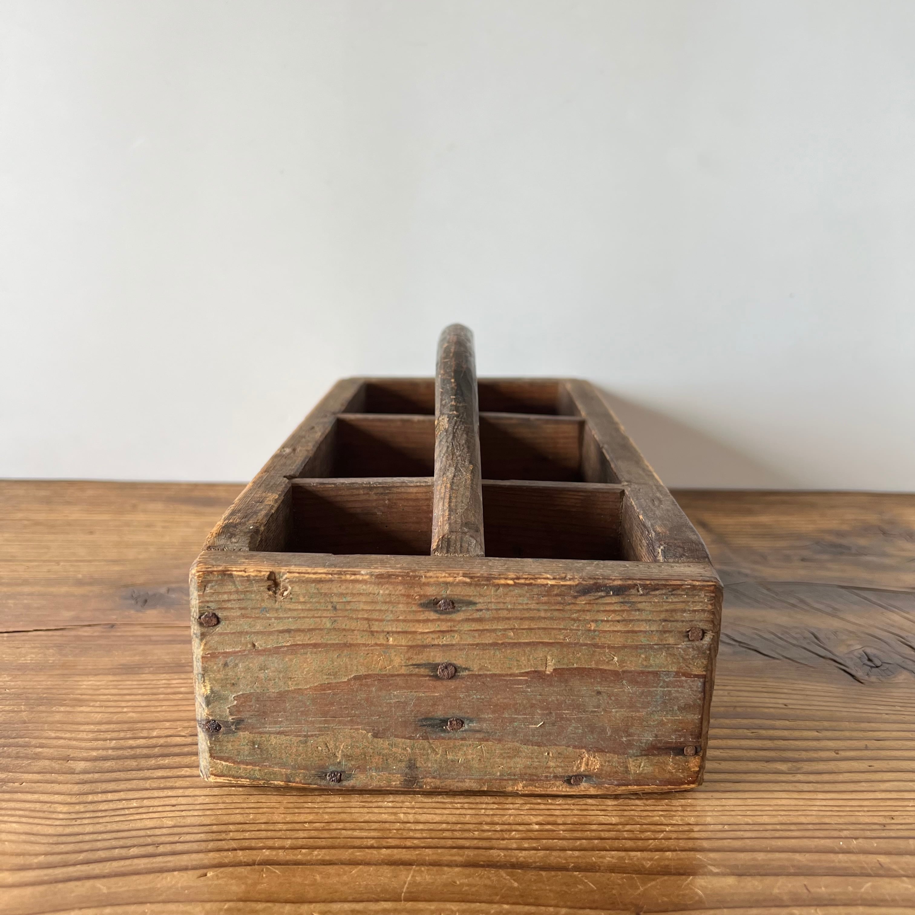 スウェーデンで見つけた古い木製の道具入れです。