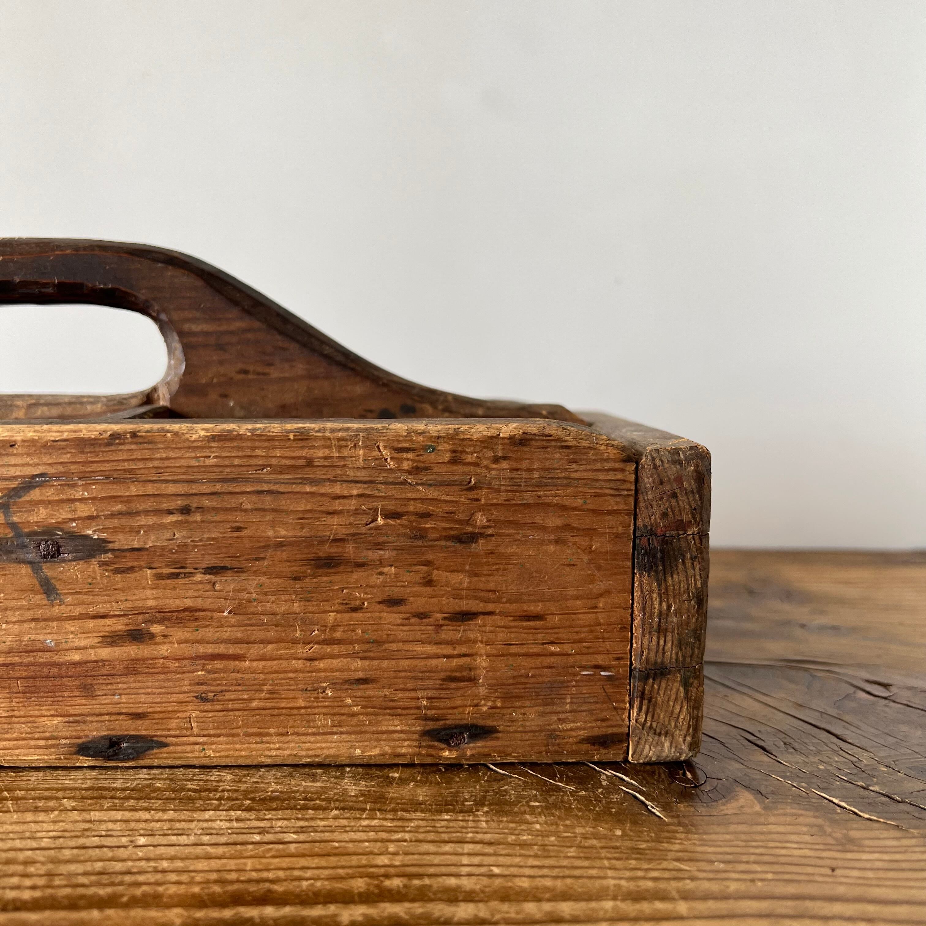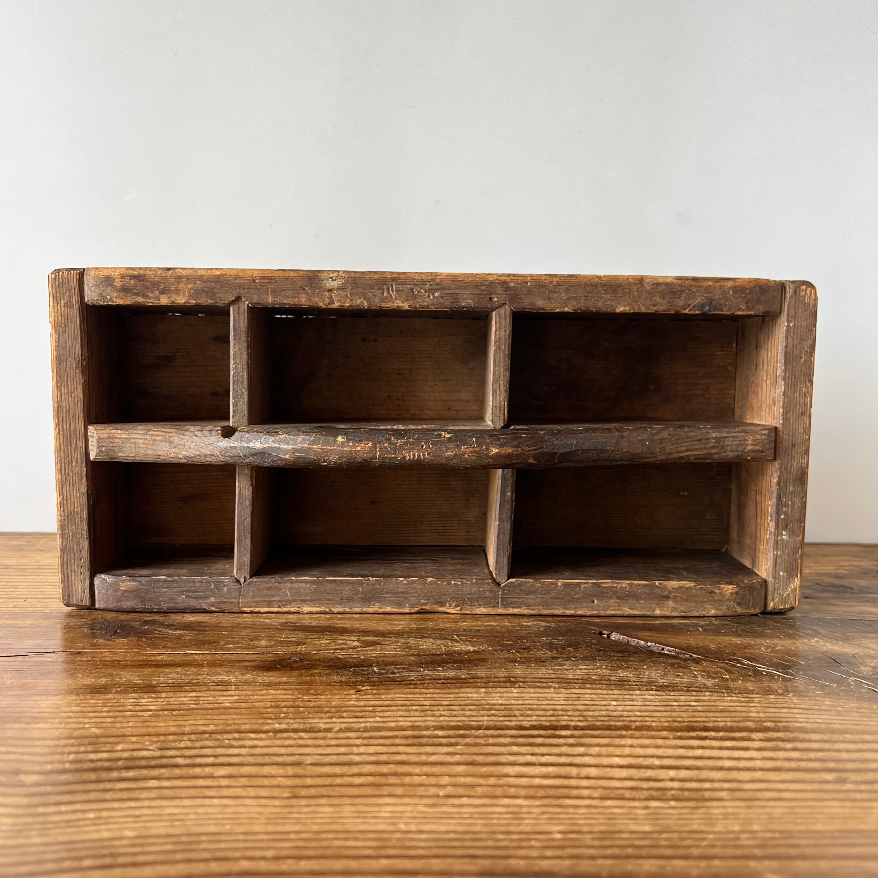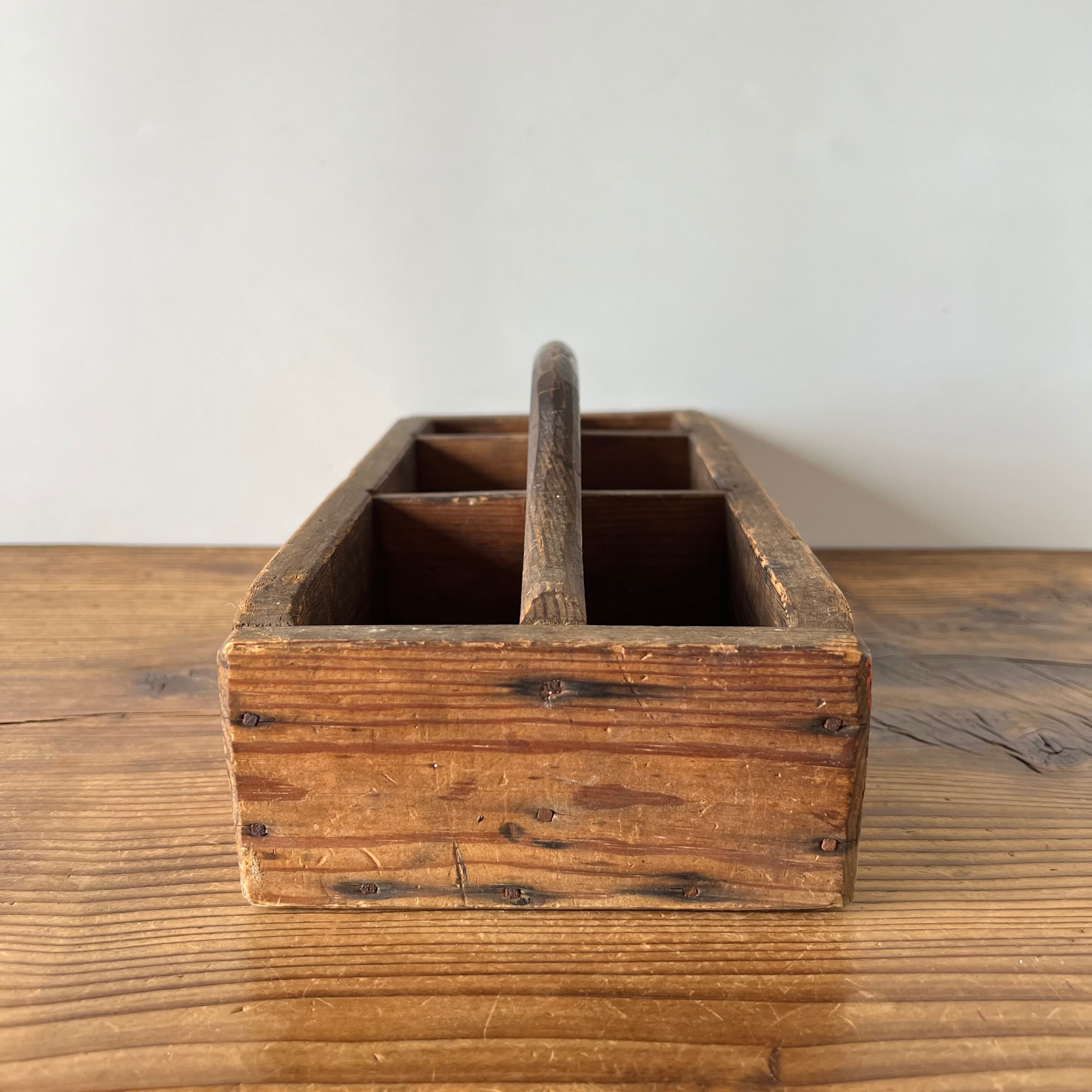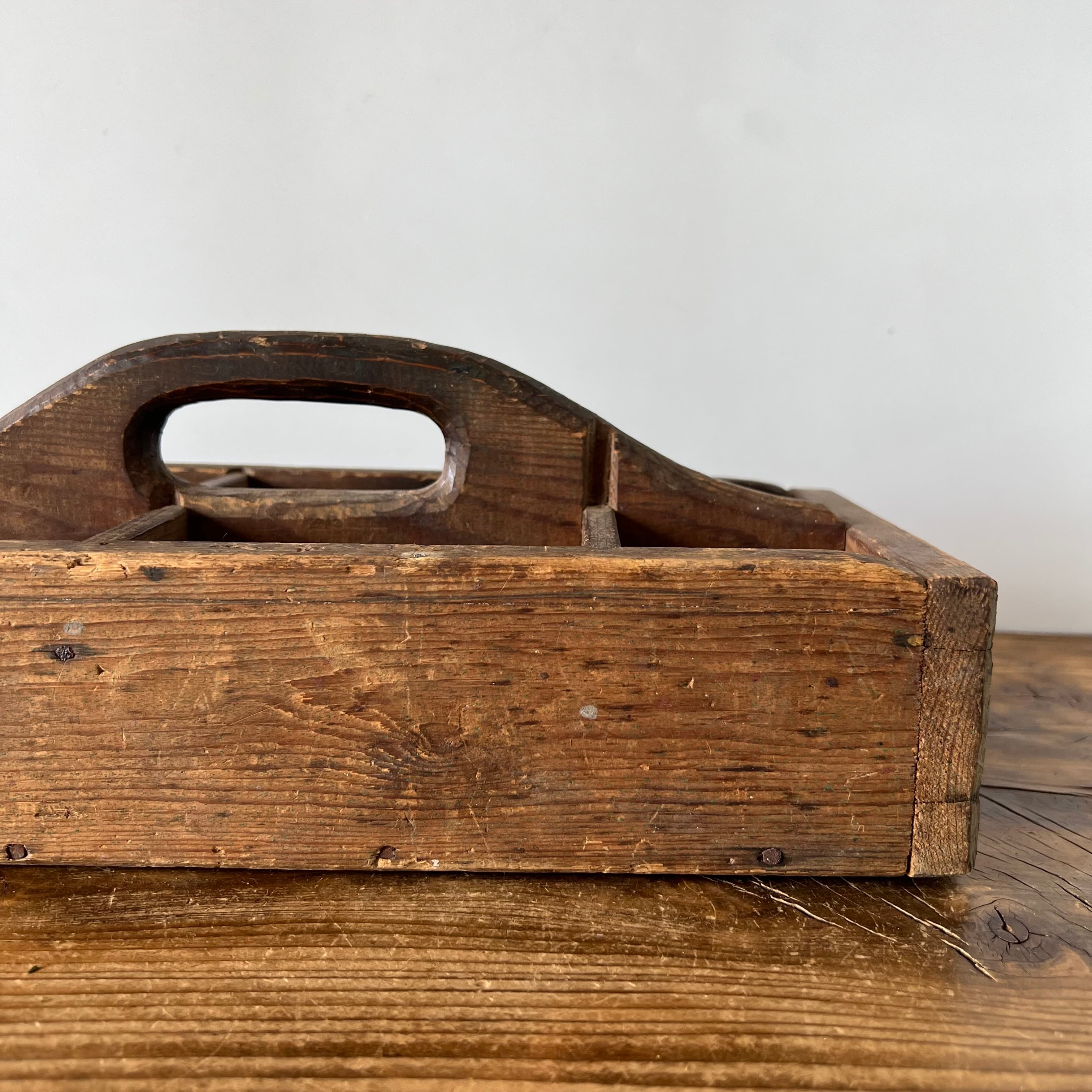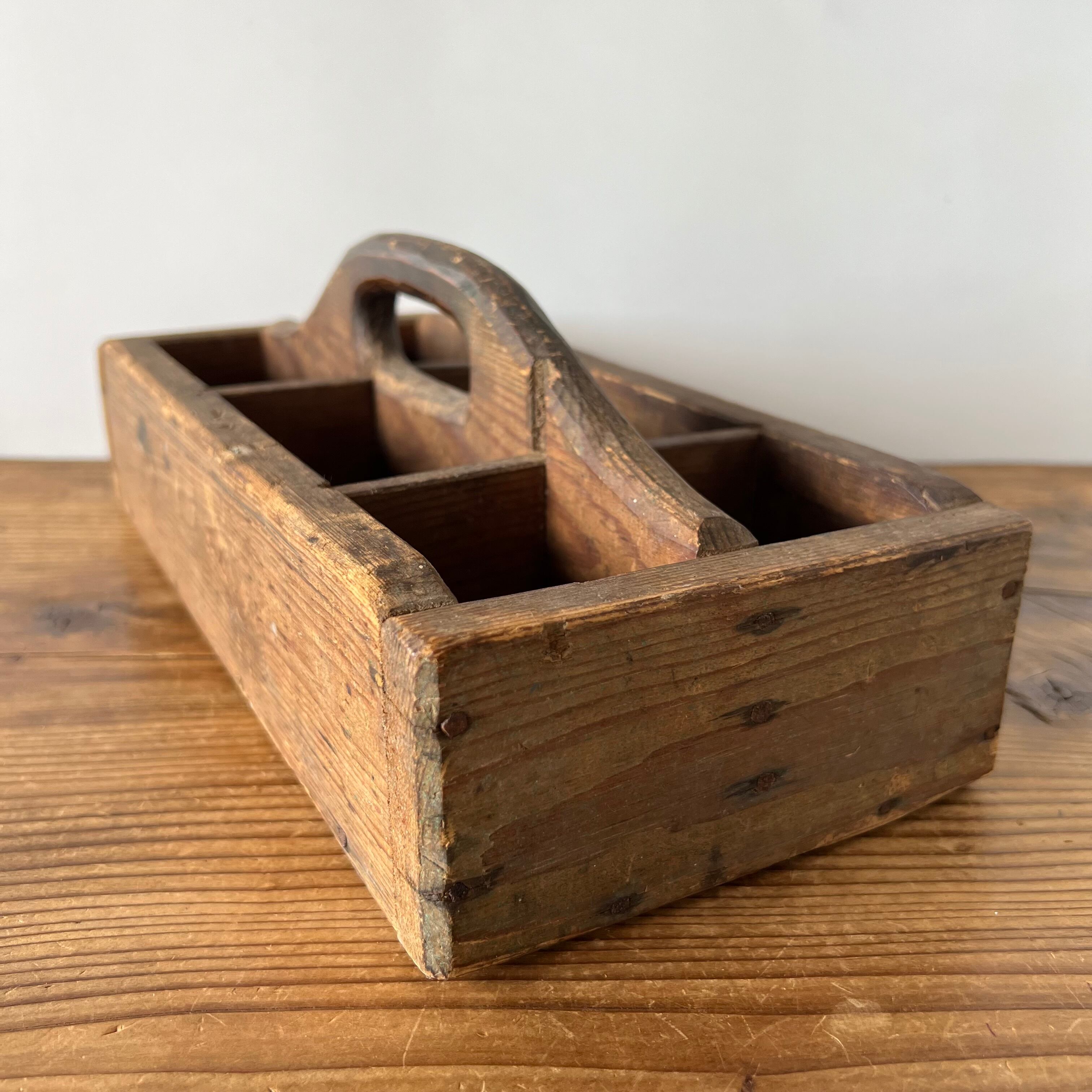 スウェーデンで見つけた古い木製の道具入れです。