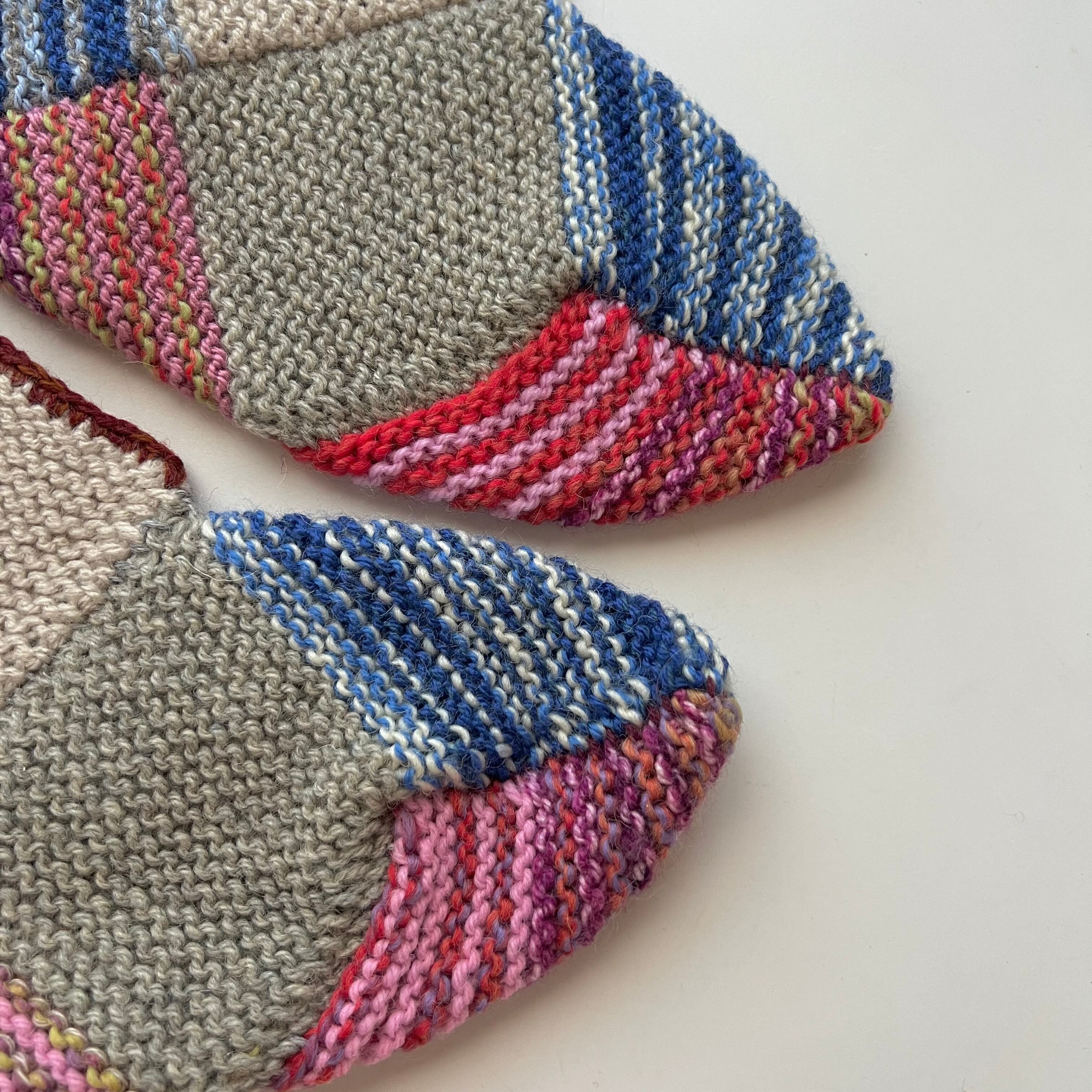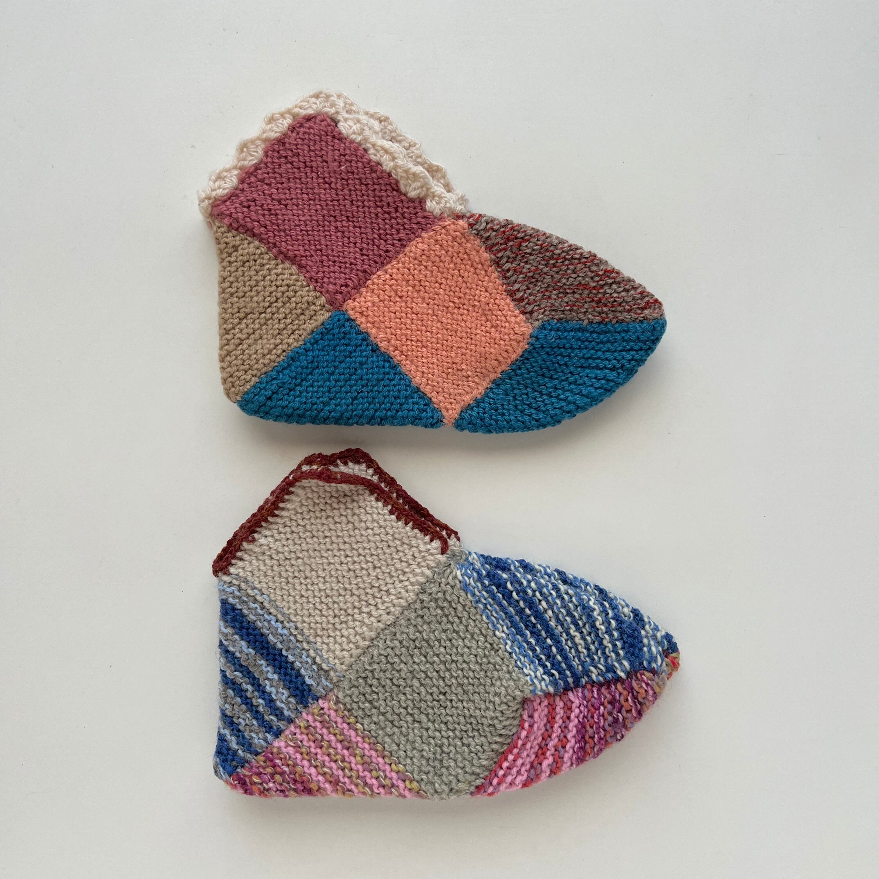 さまざまな毛糸を組み合わせたパックワーク模様は、ひとつひとつ表情が異なり、手仕事ならではの温もりを感じさせてくれます。