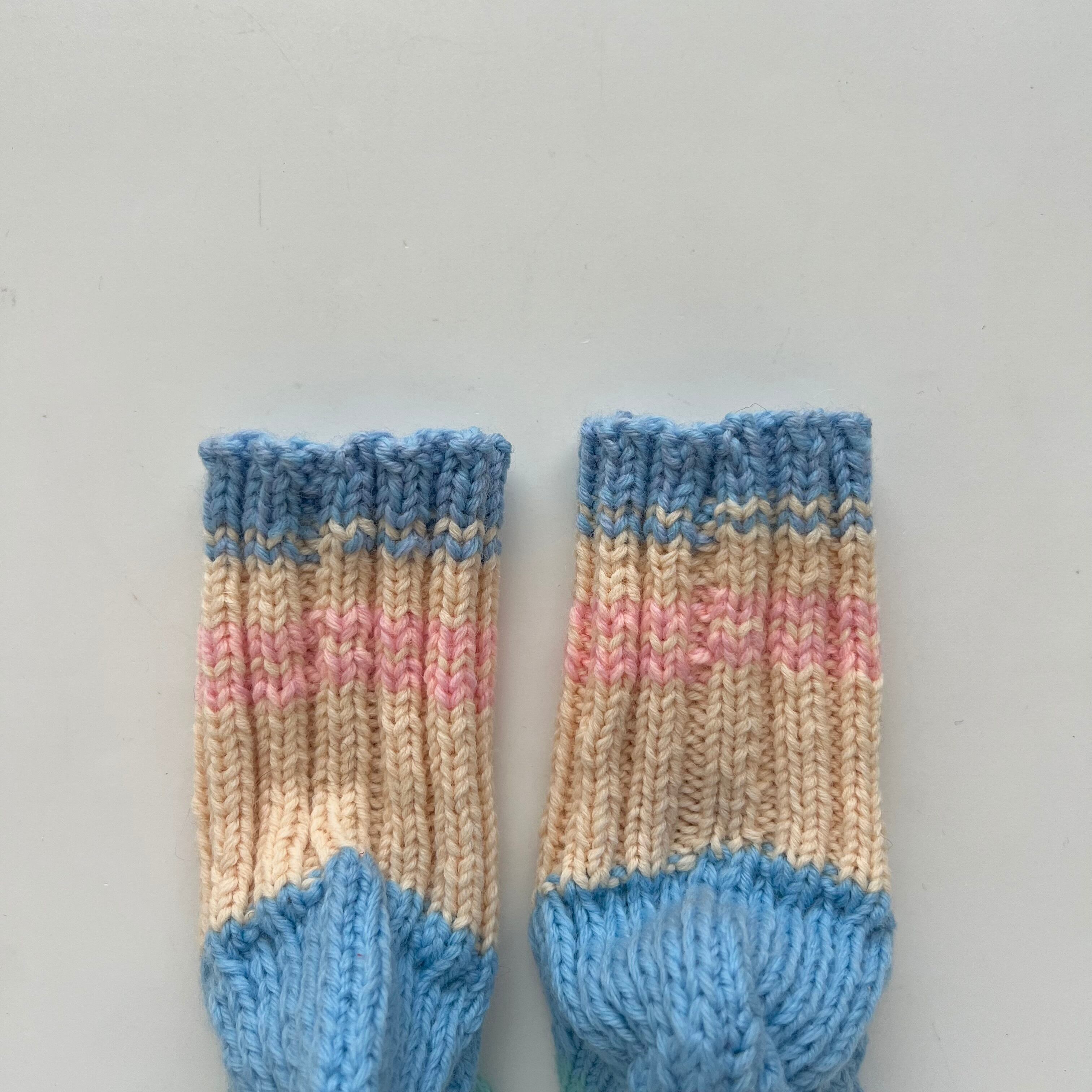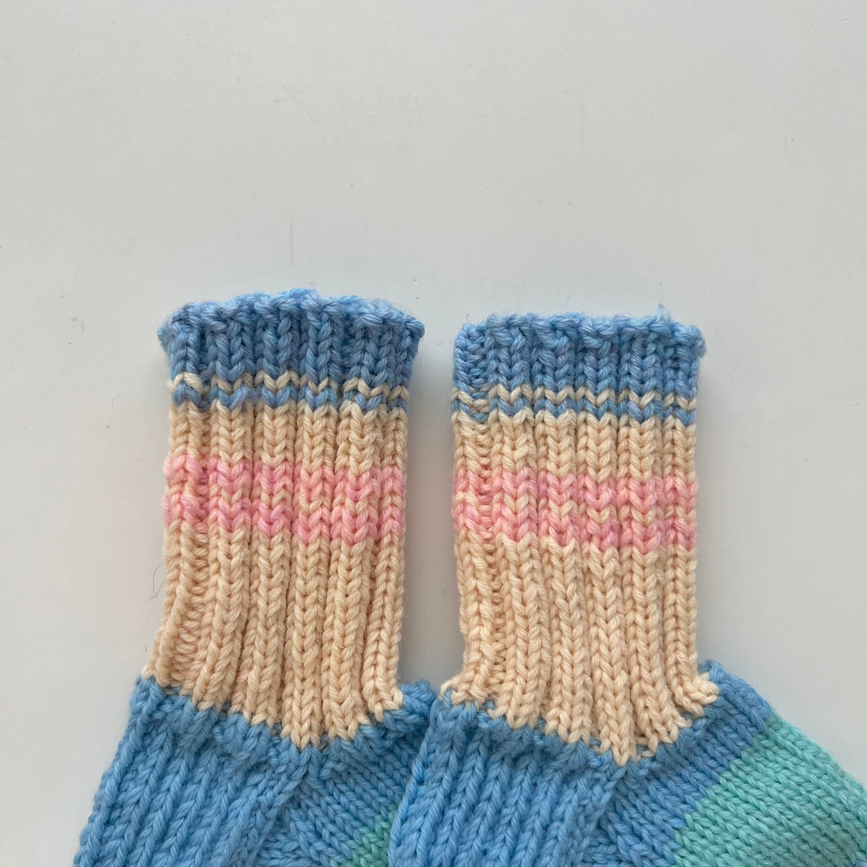 ベージュ、ピンク、ブルー、グリーンを組み合わせた可愛らしい配色がポイント。
