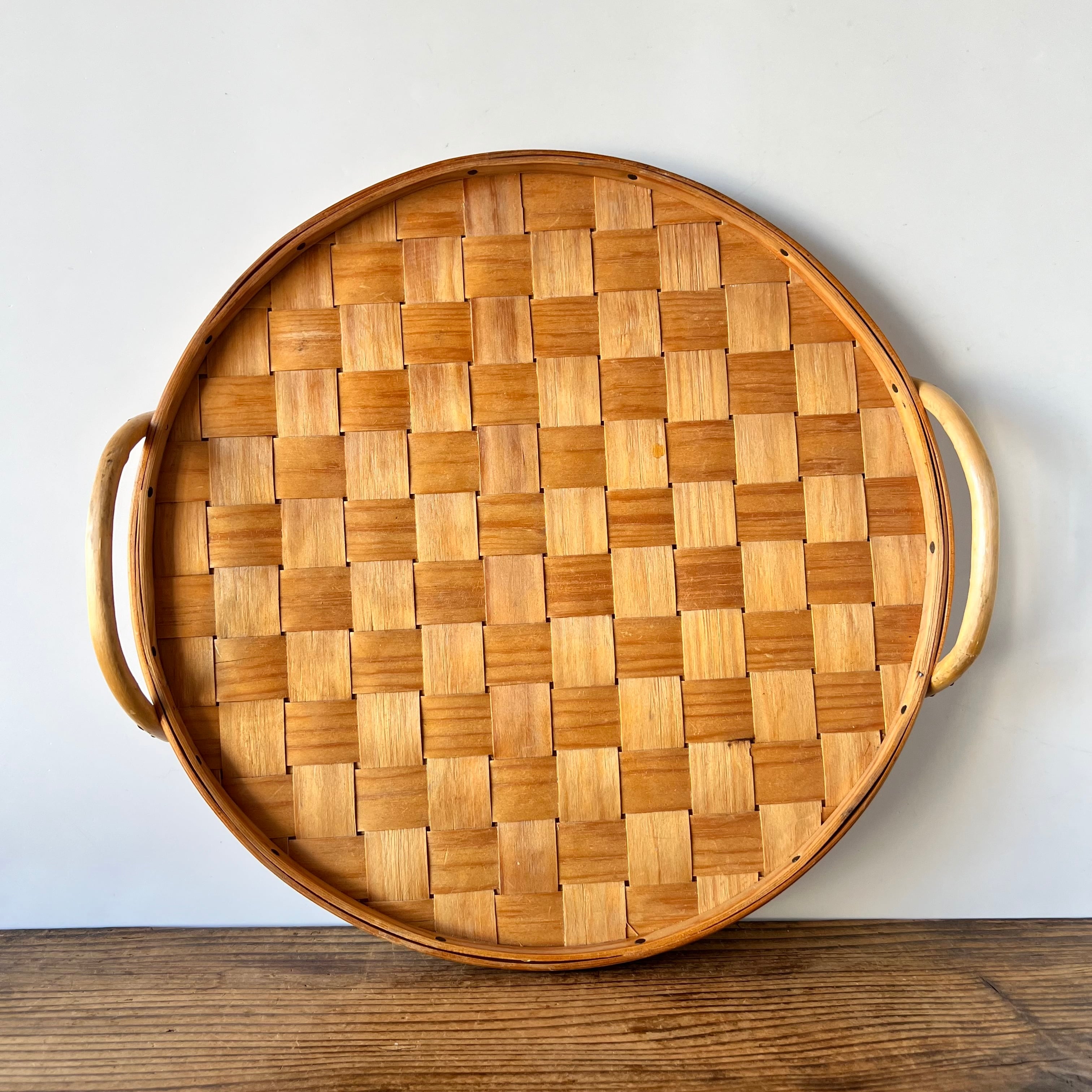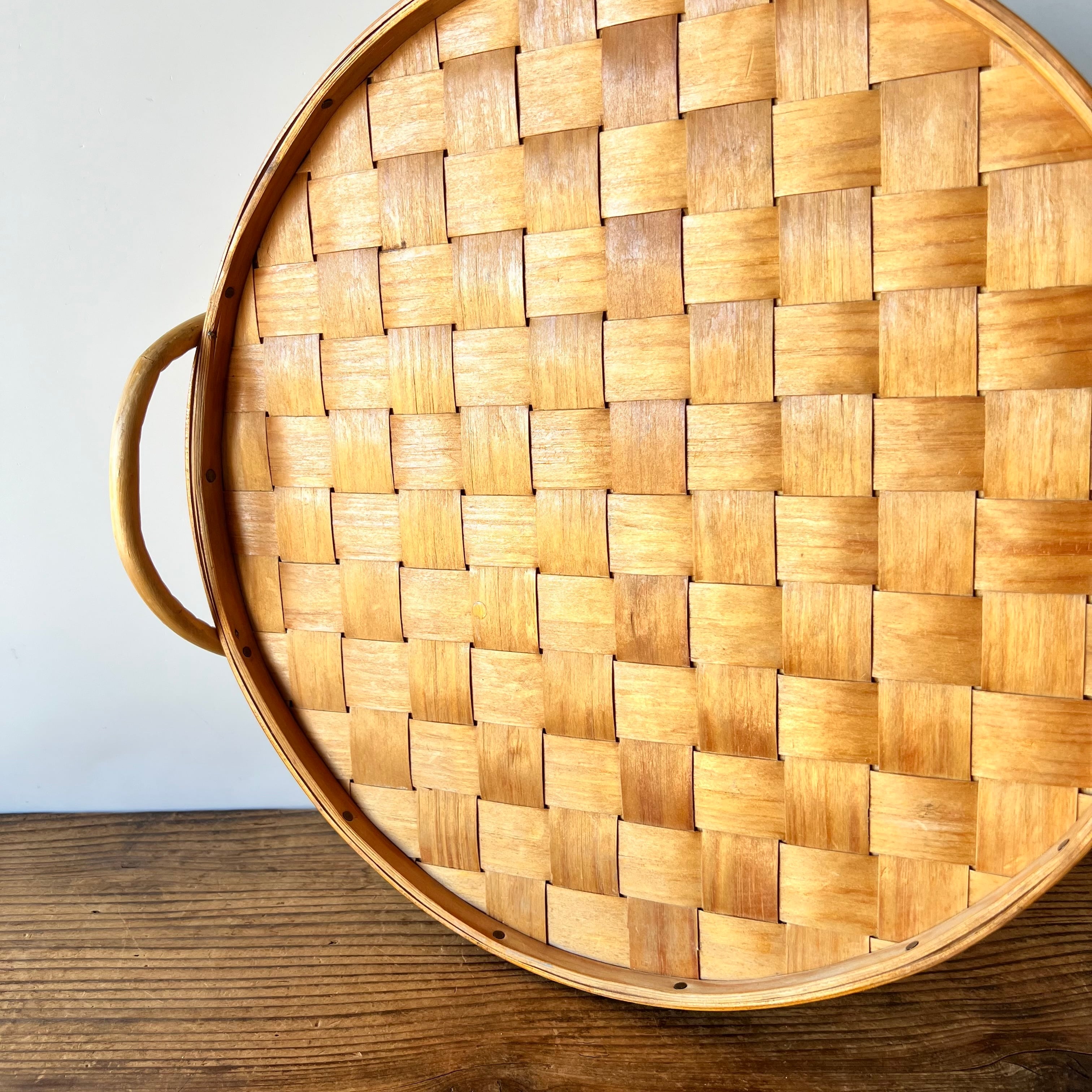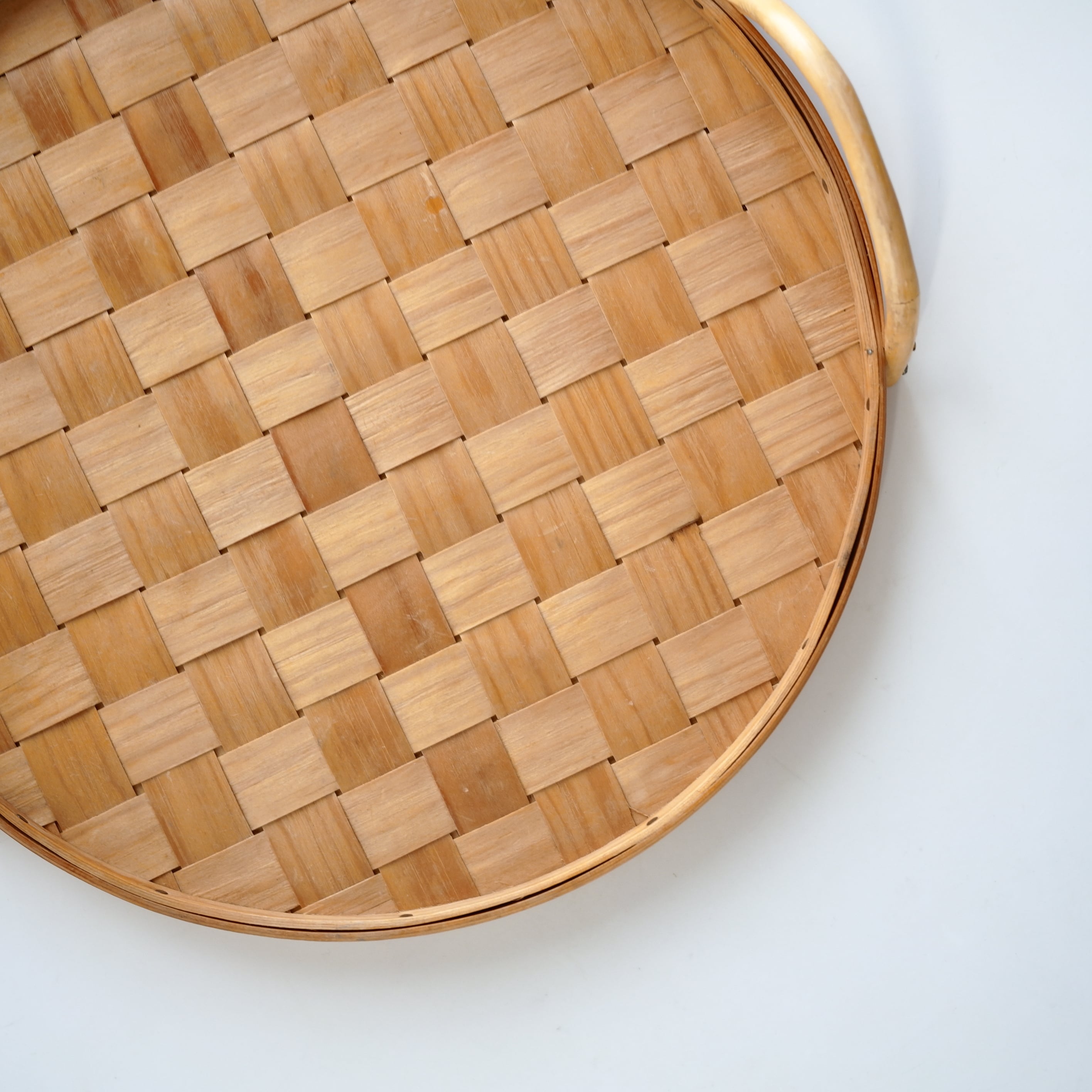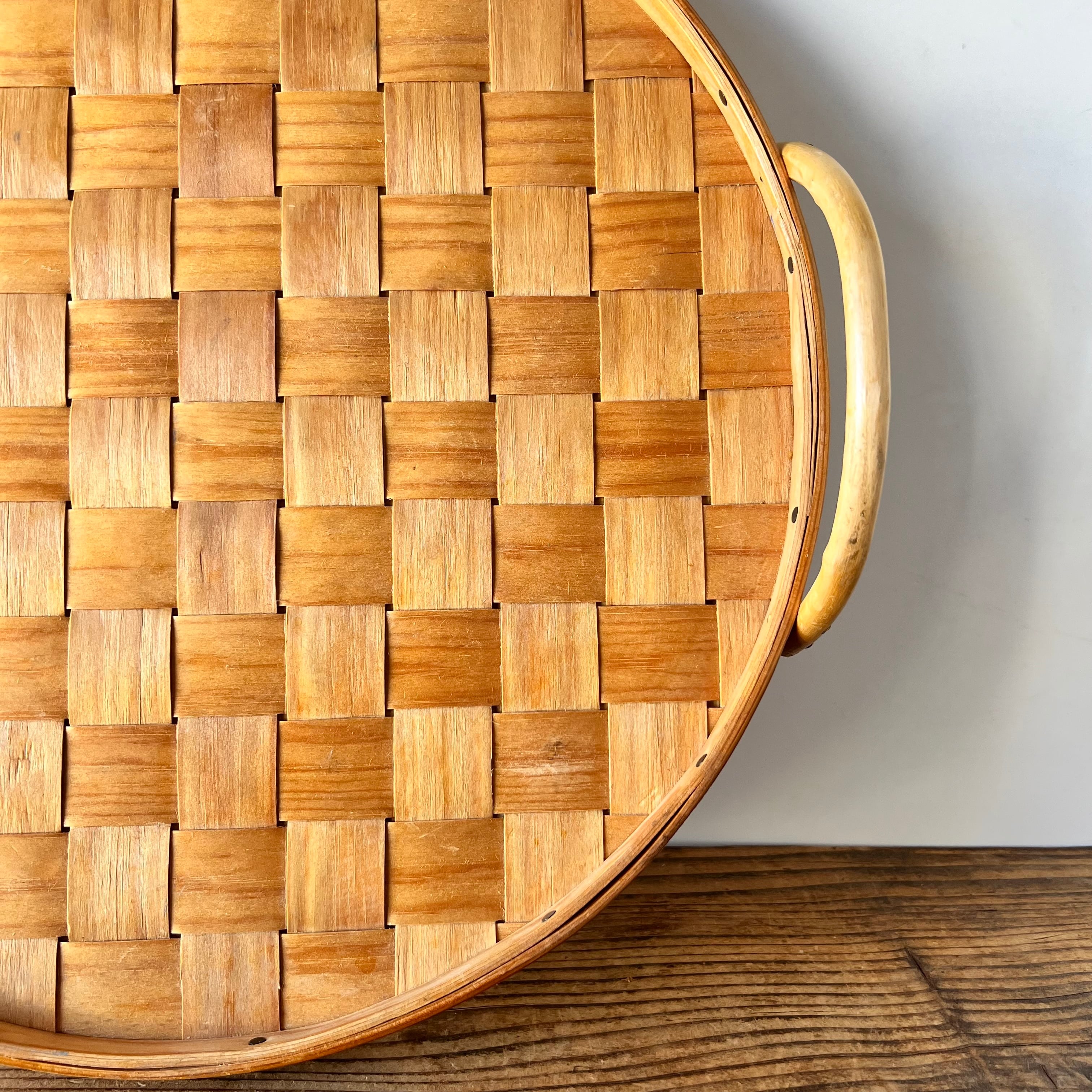 薄く裂いたパイン材を丁寧に編み込んで作られる、北欧伝統の木製トレイ。