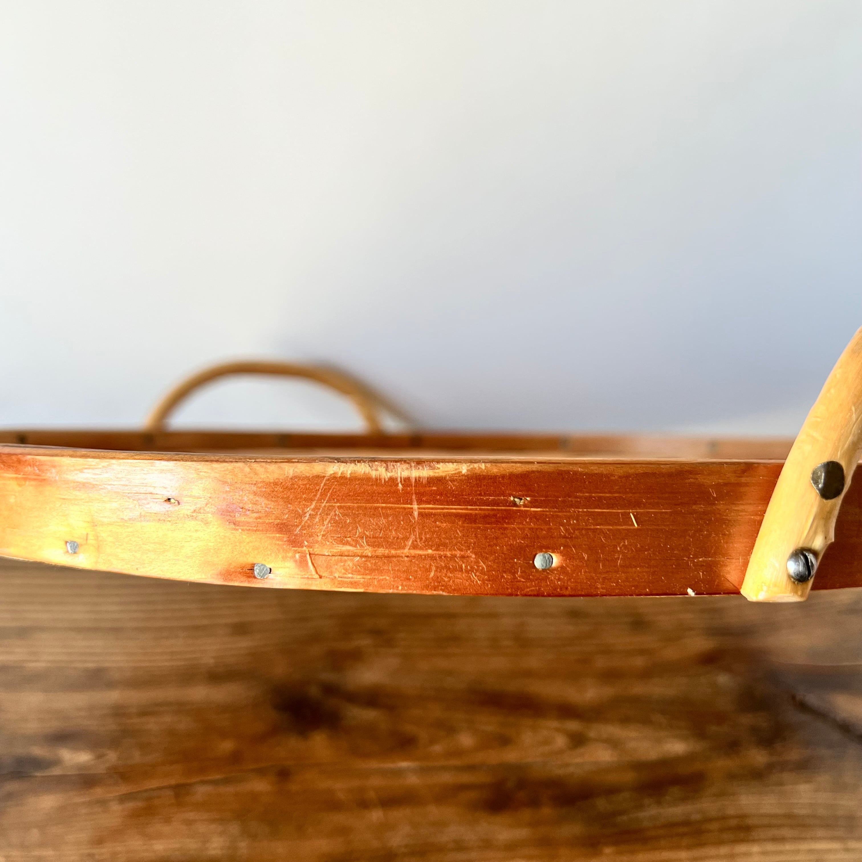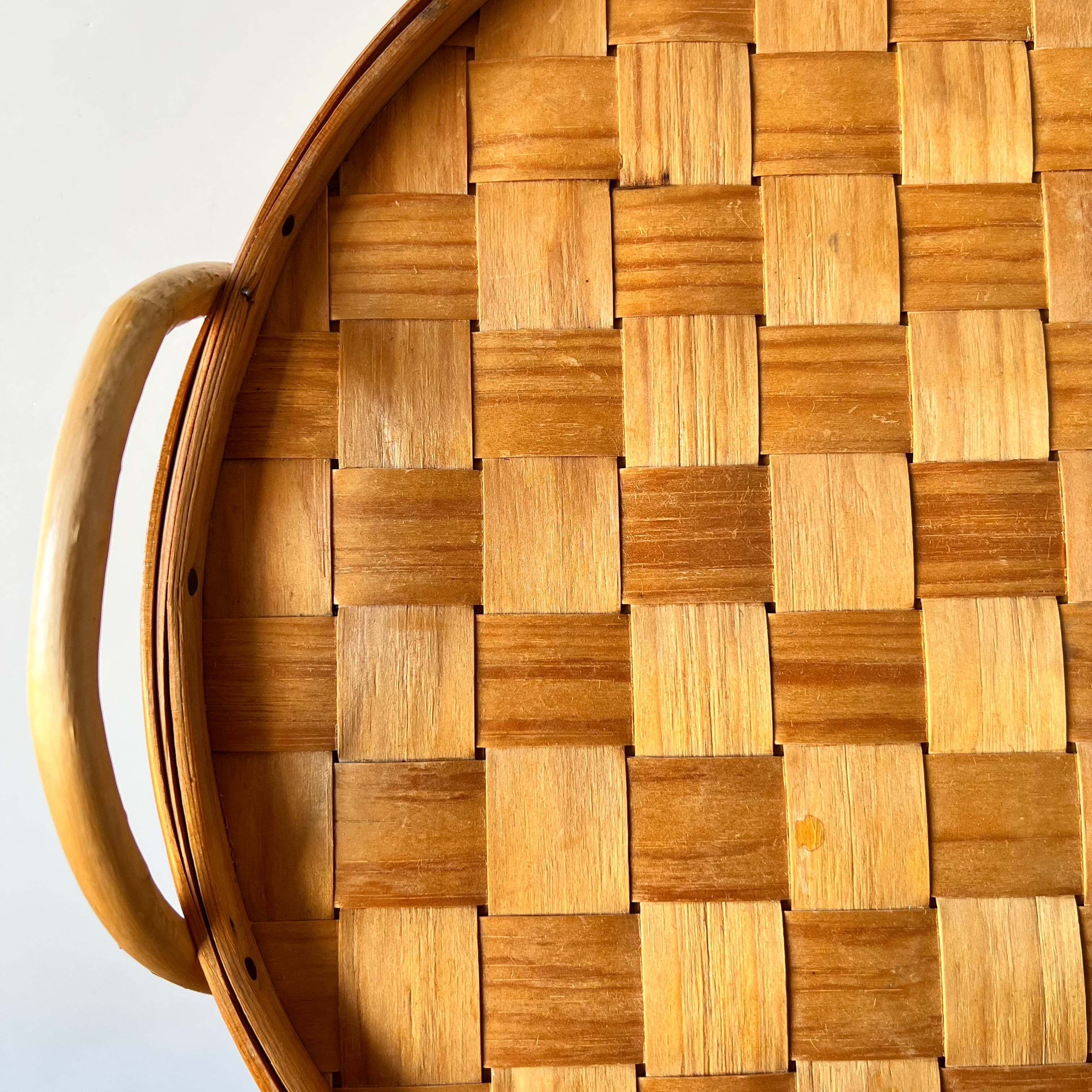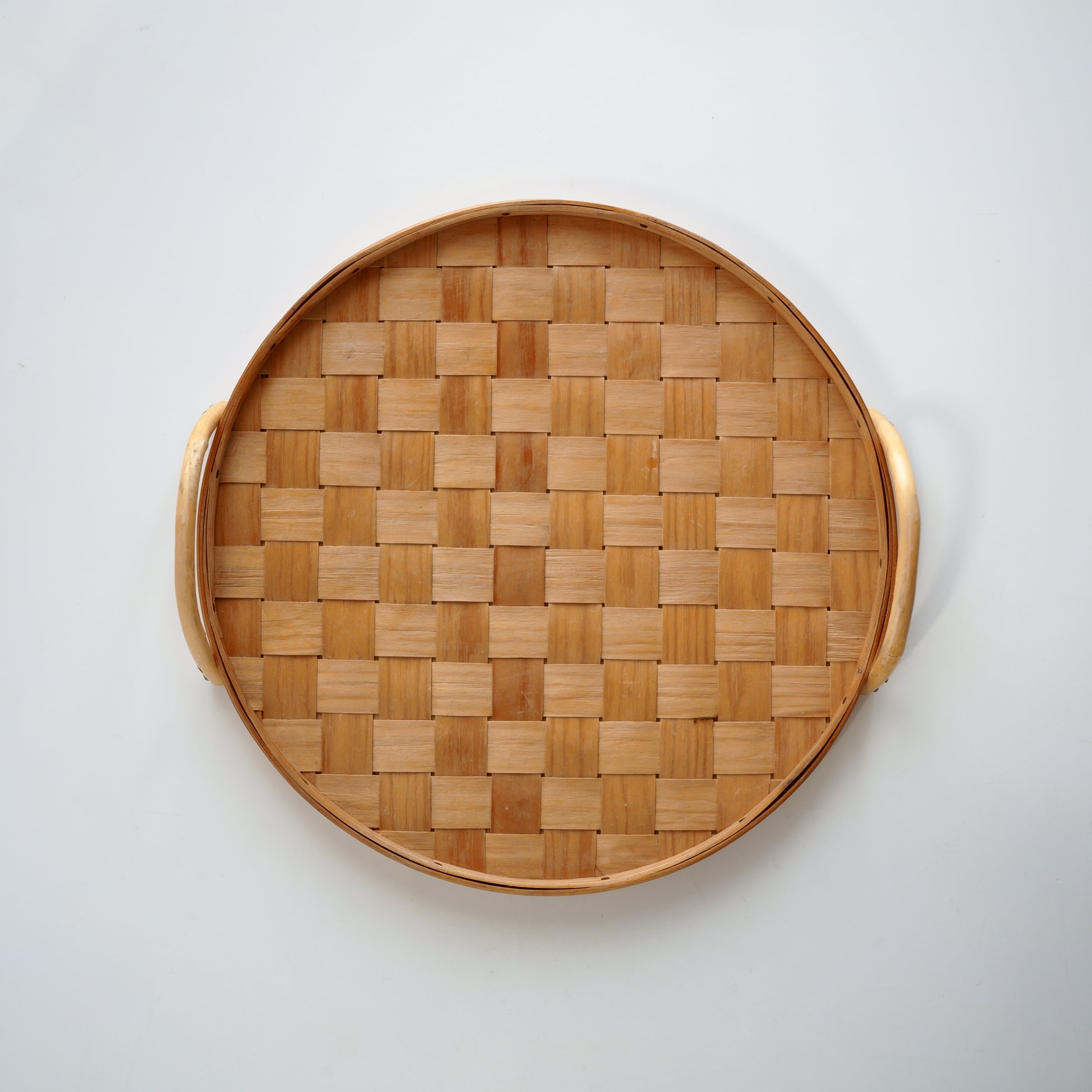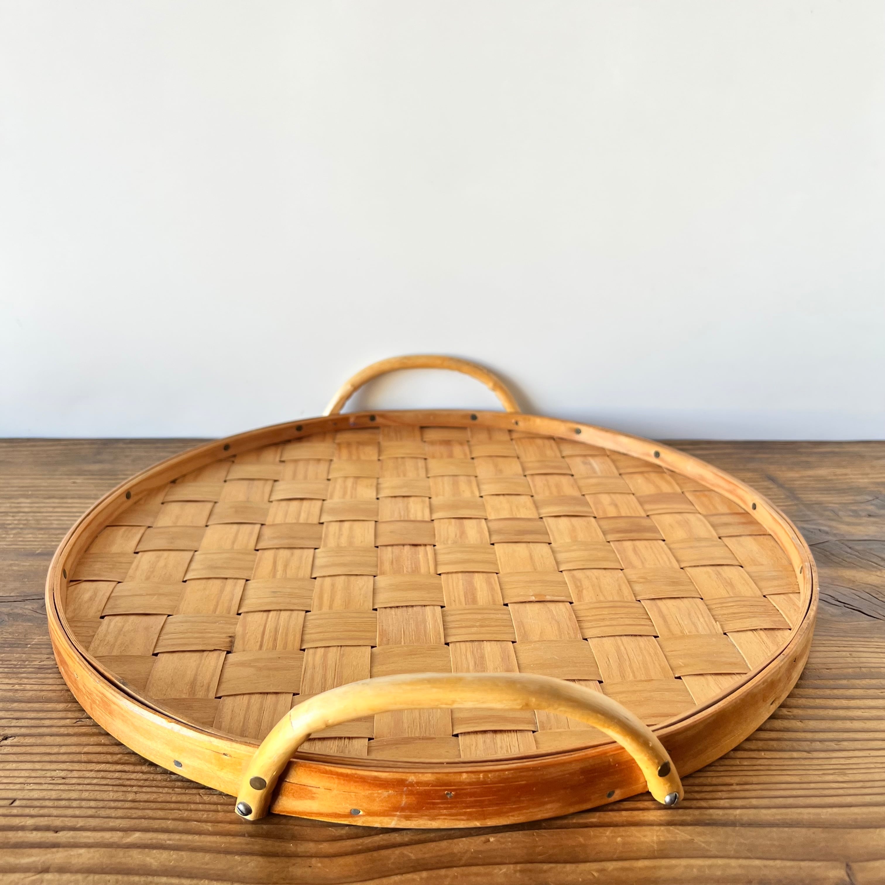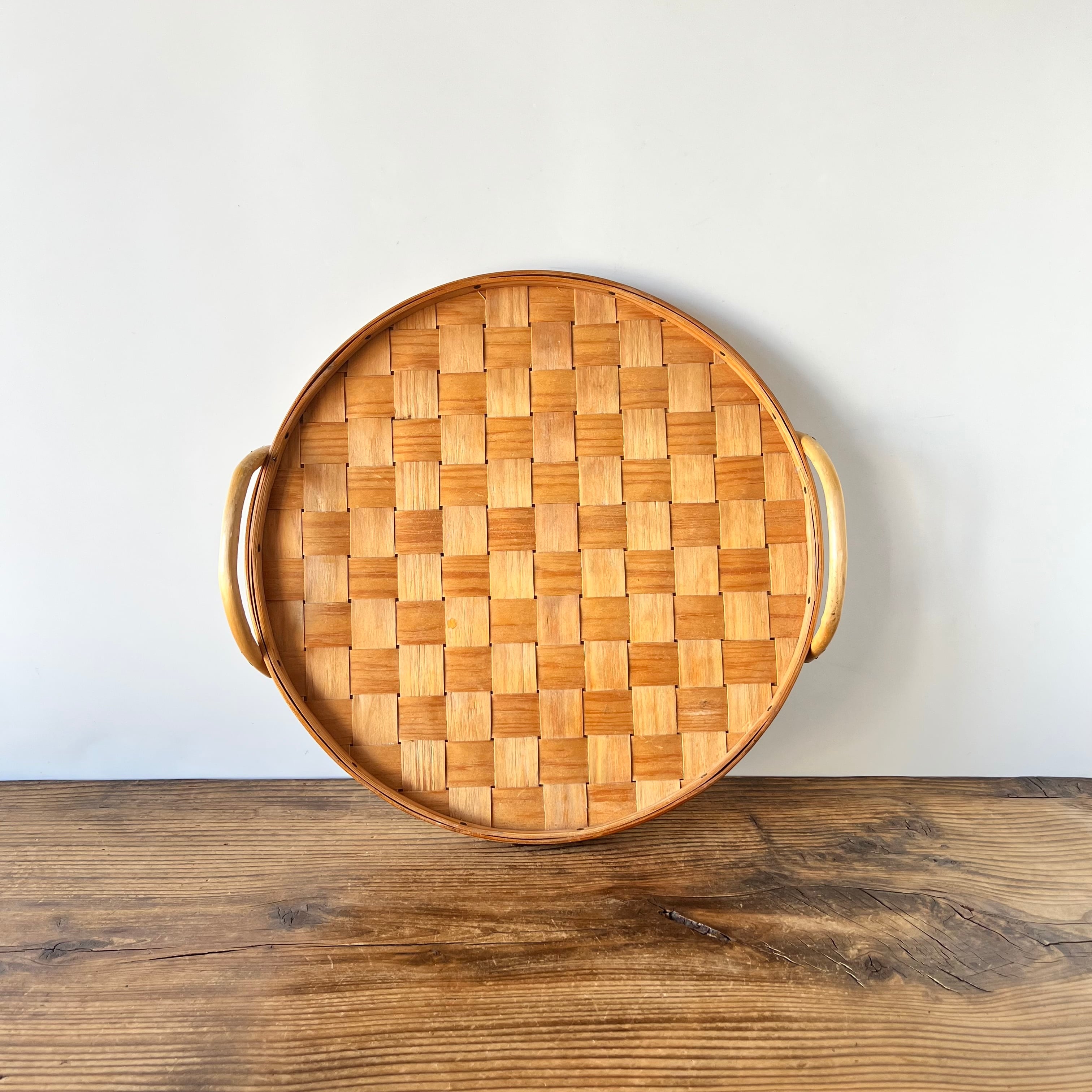 薄く裂いたパイン材を丁寧に編み込んで作られる、北欧伝統の木製トレイ。