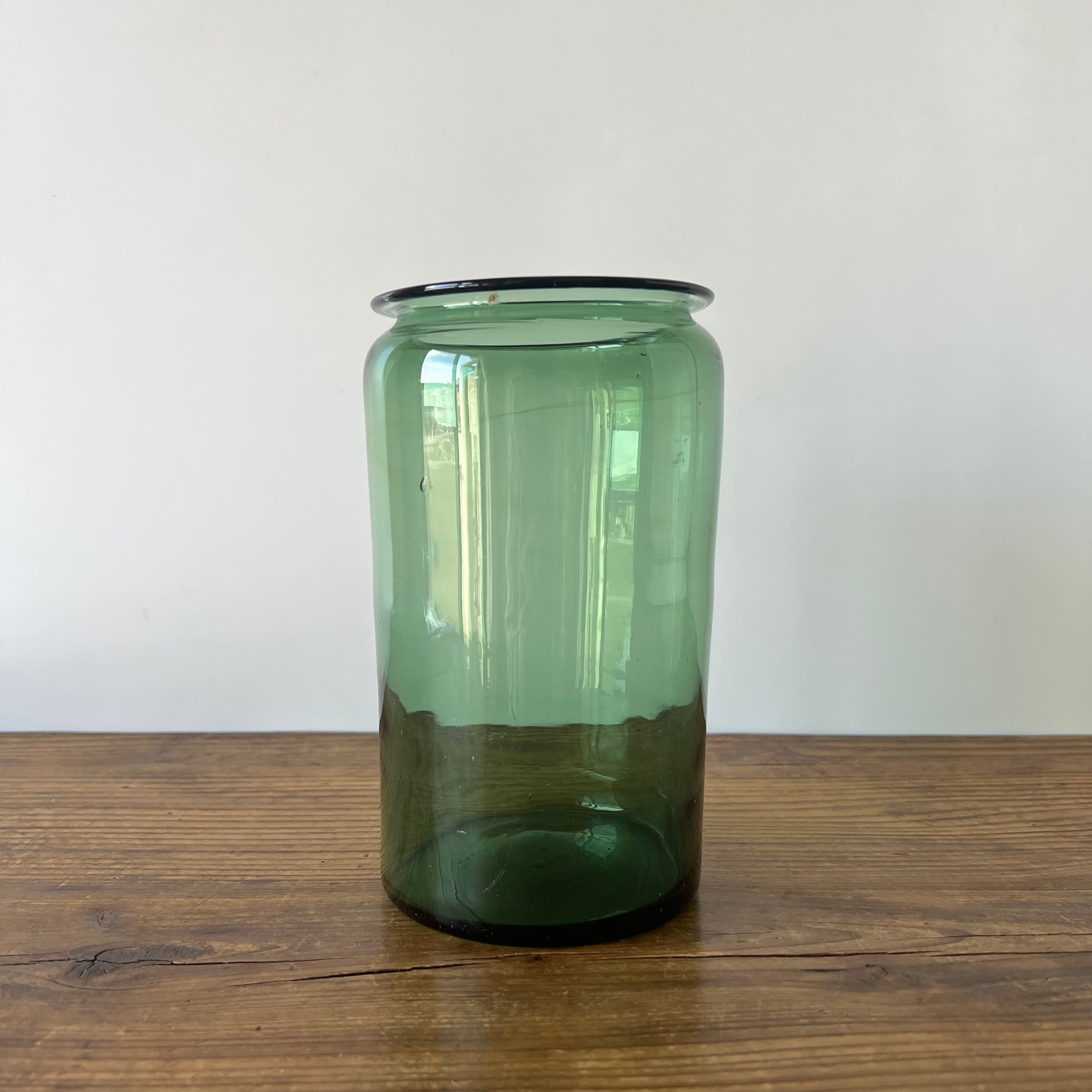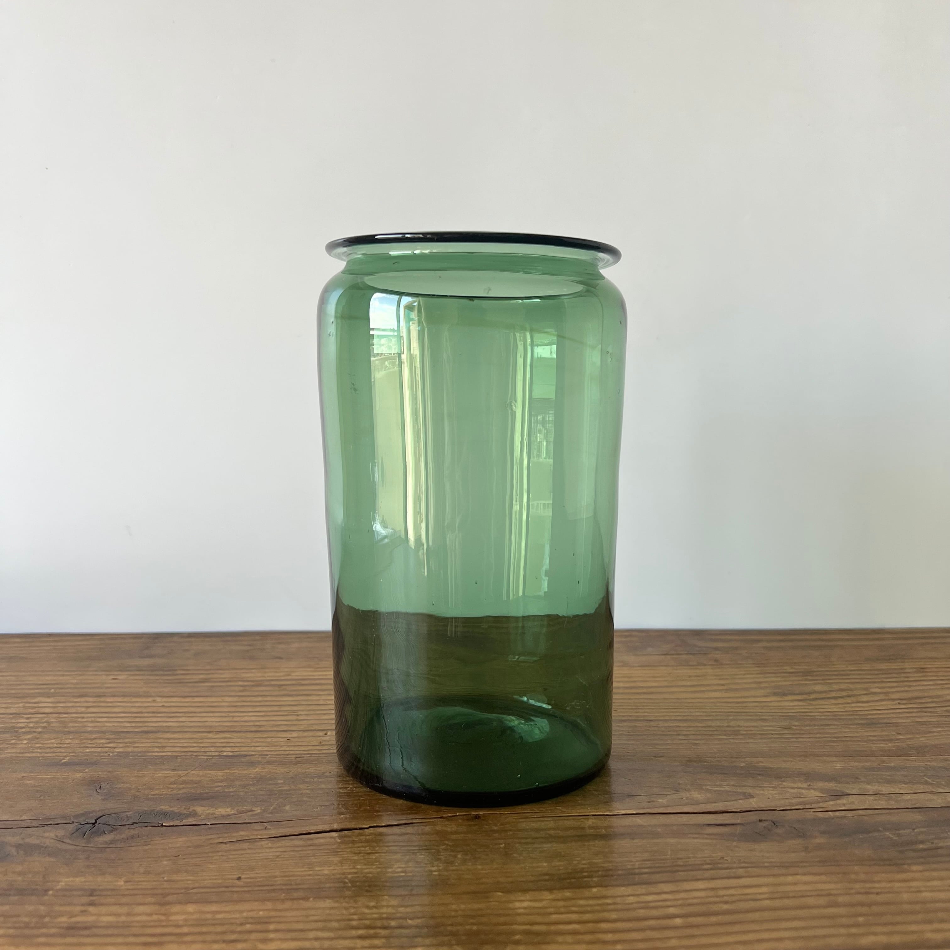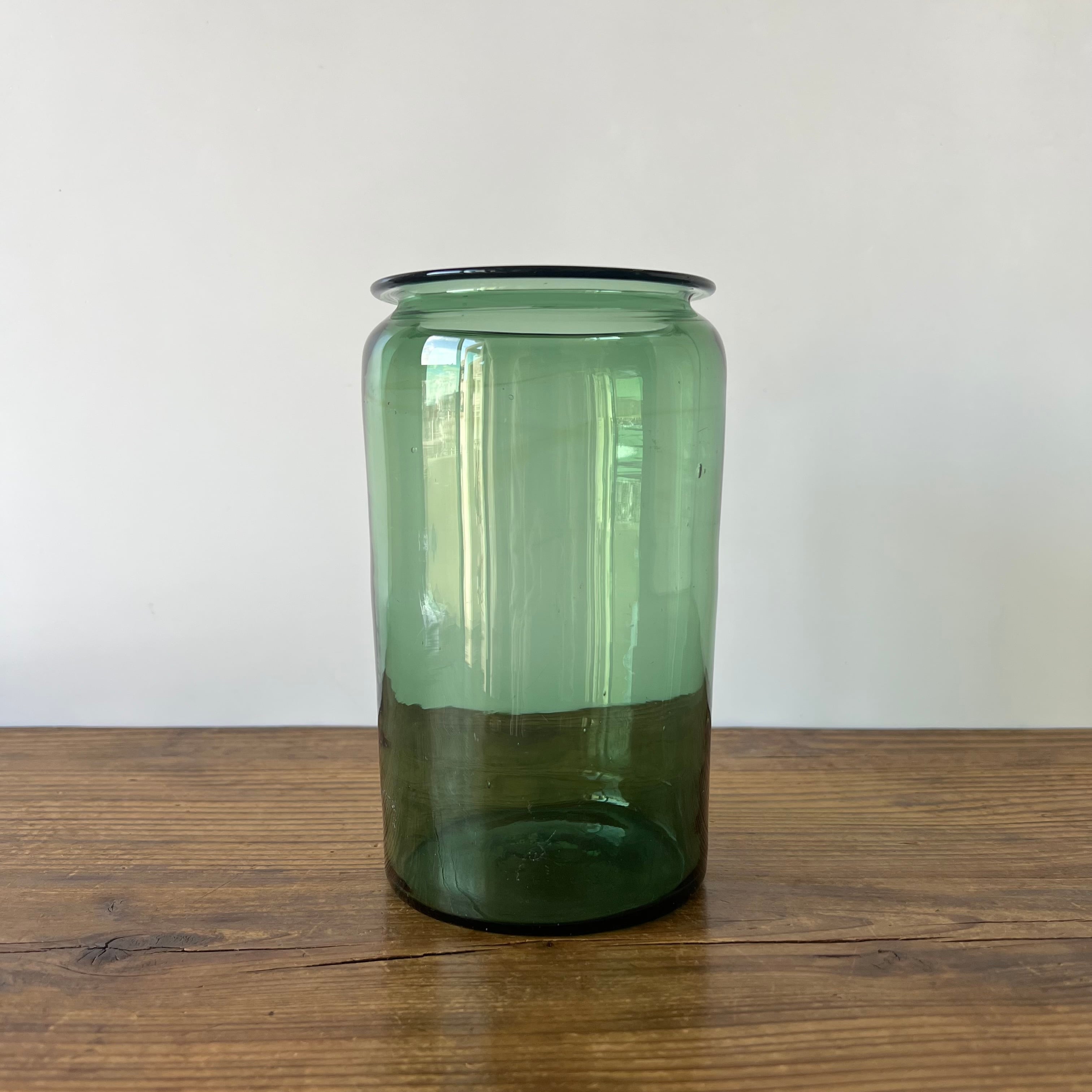 このような濃いグリーンの保存瓶は当時の生産数が少なく、現存数も限られているため、たいへん希少です。