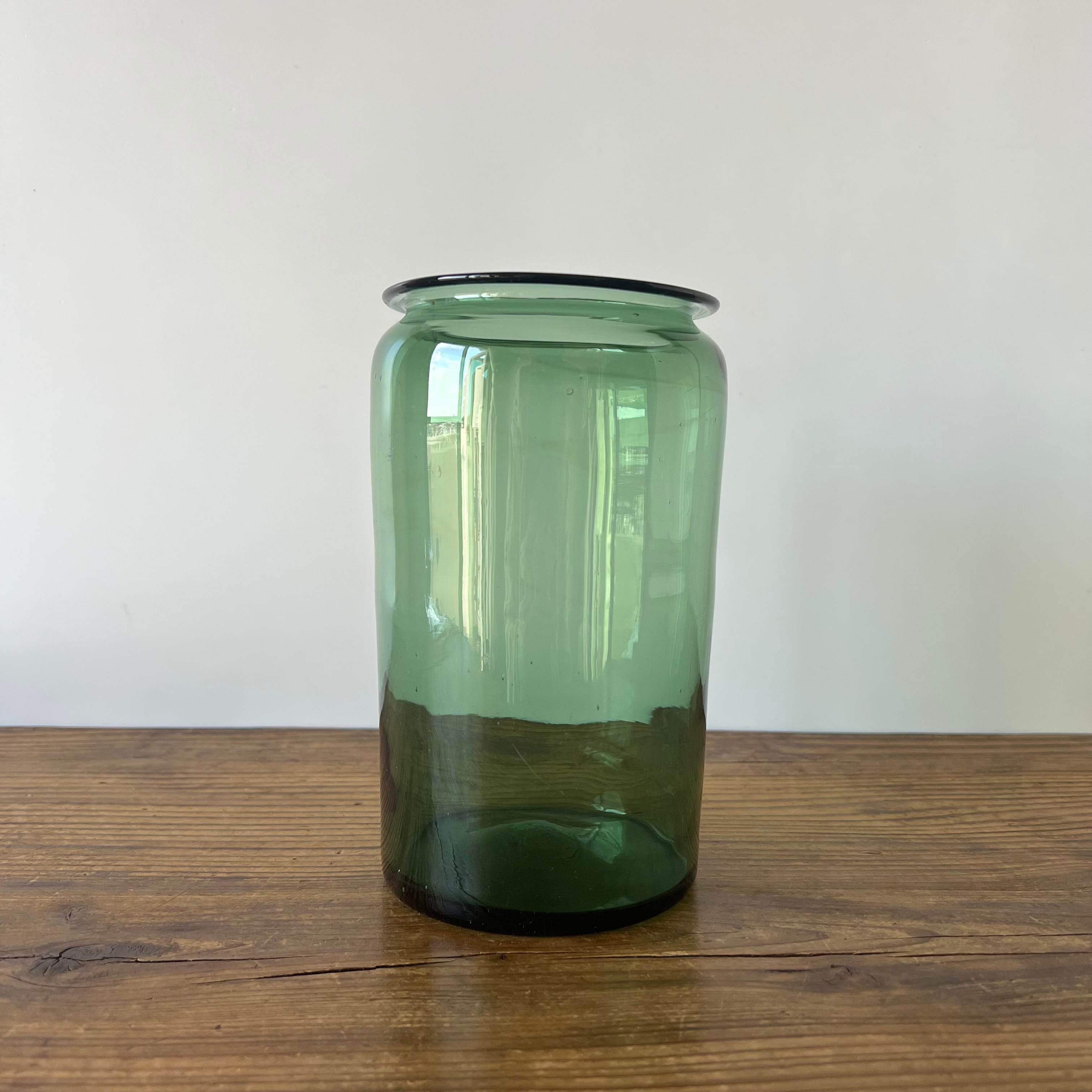 フィンランドで見つけた深いグリーンの色合いが美しい、手吹きの保存瓶です。