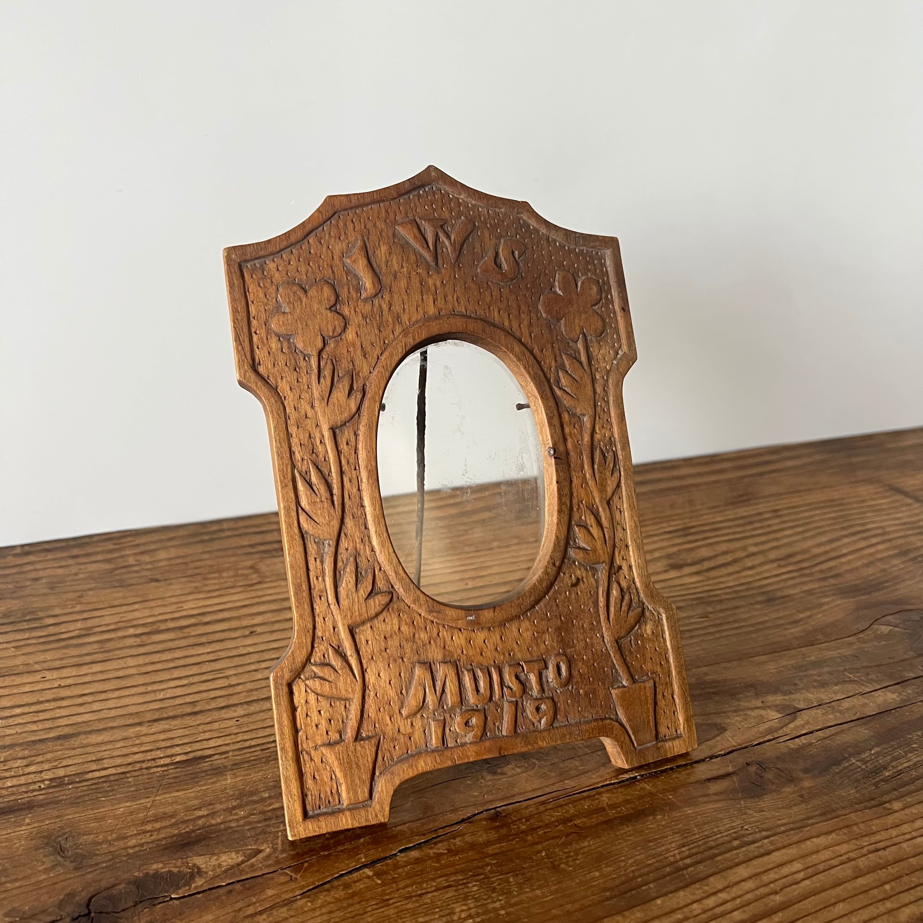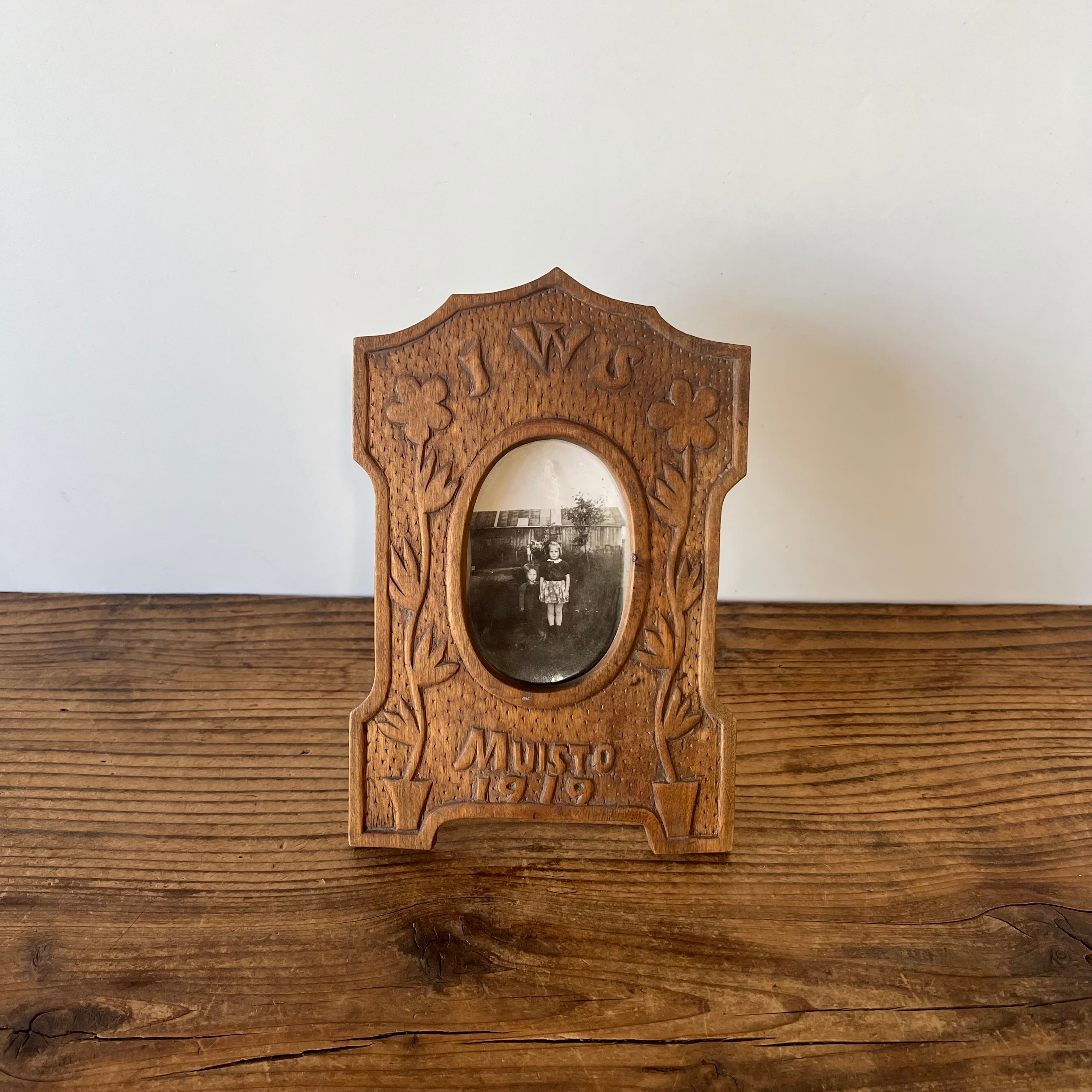 1919年に制作された、初期のPuhdetyöと考えられる木製フォトフレームです。