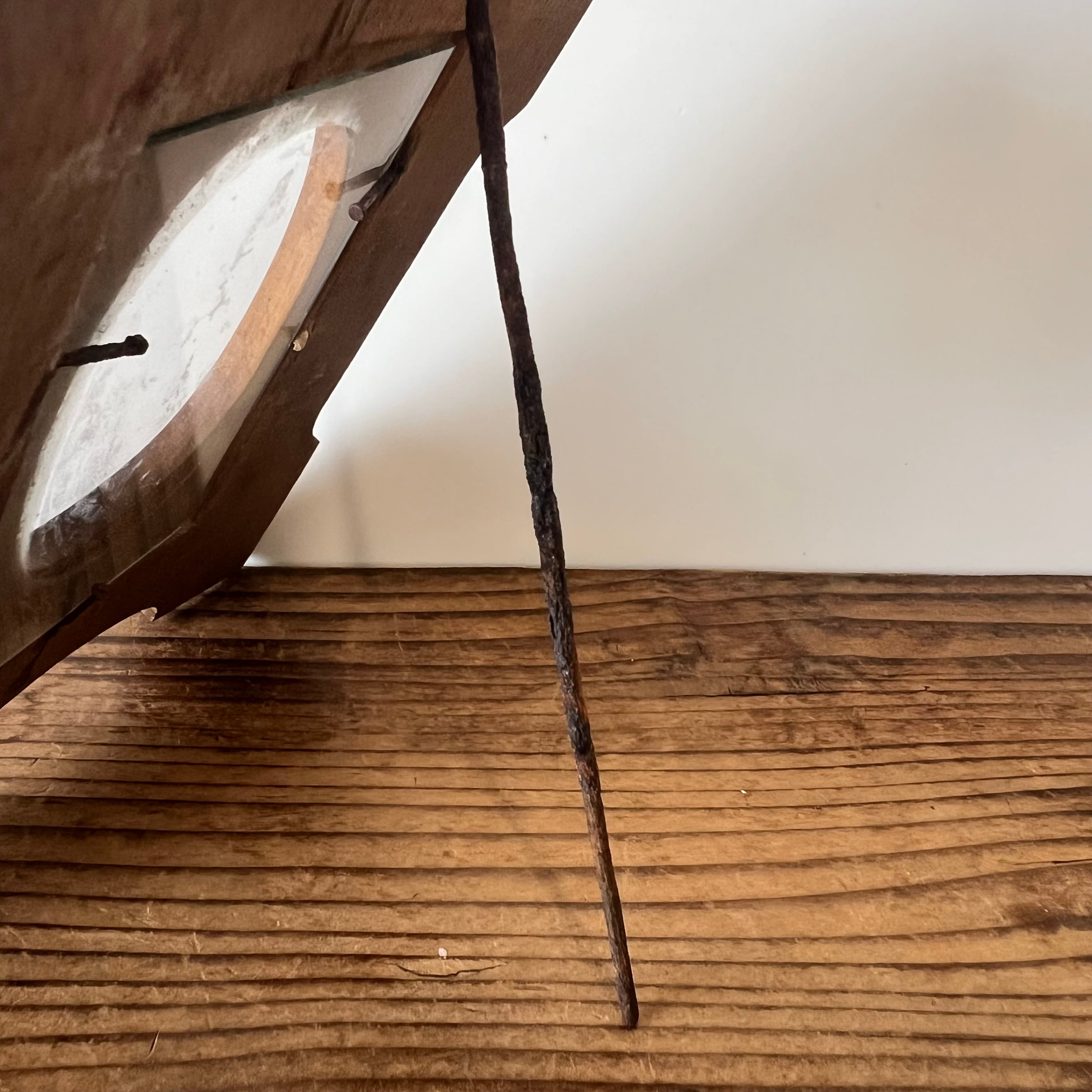 裏面の金属スタンドは錆びが進んでおり、途中で折れて変形しているため安定せず倒れやすい状態です。