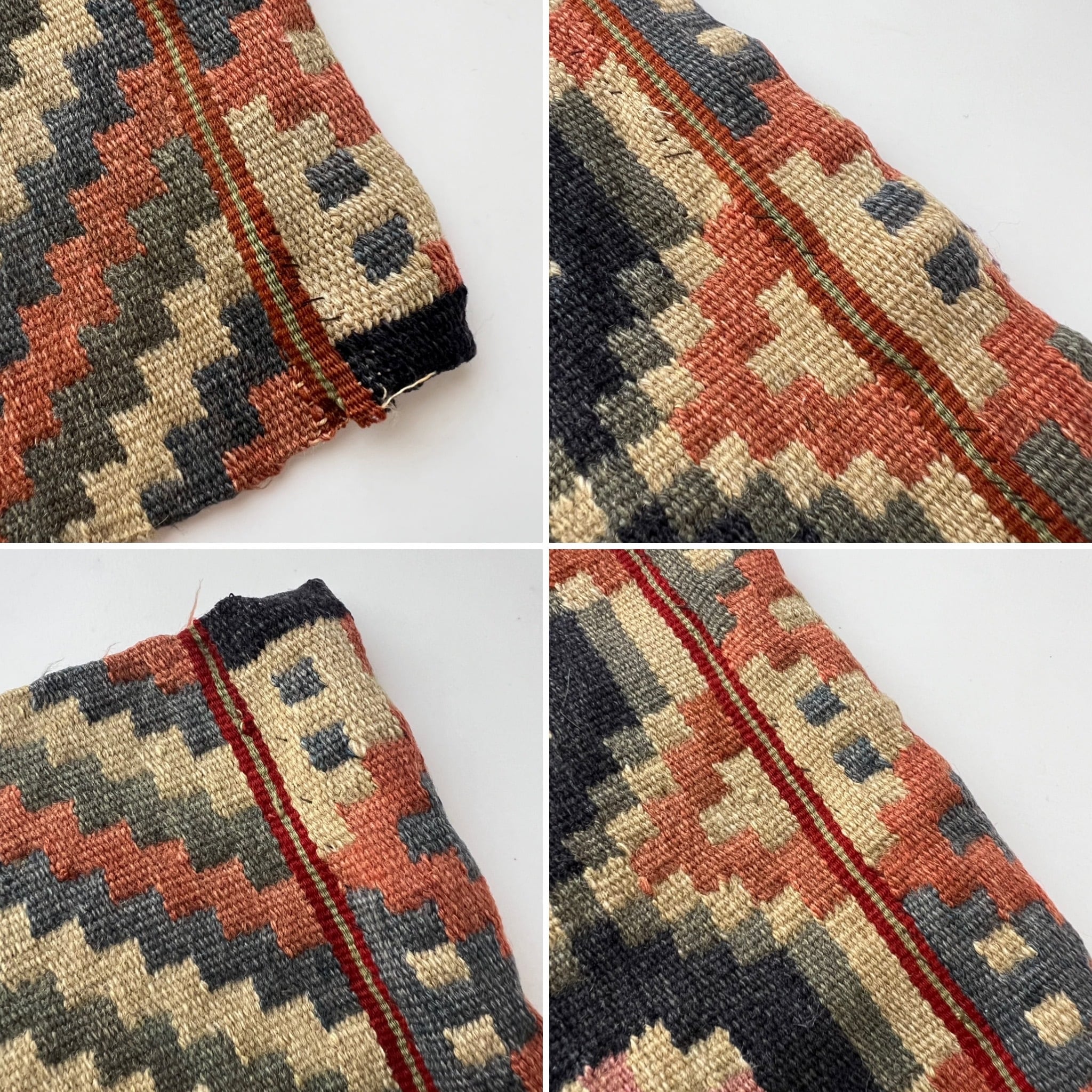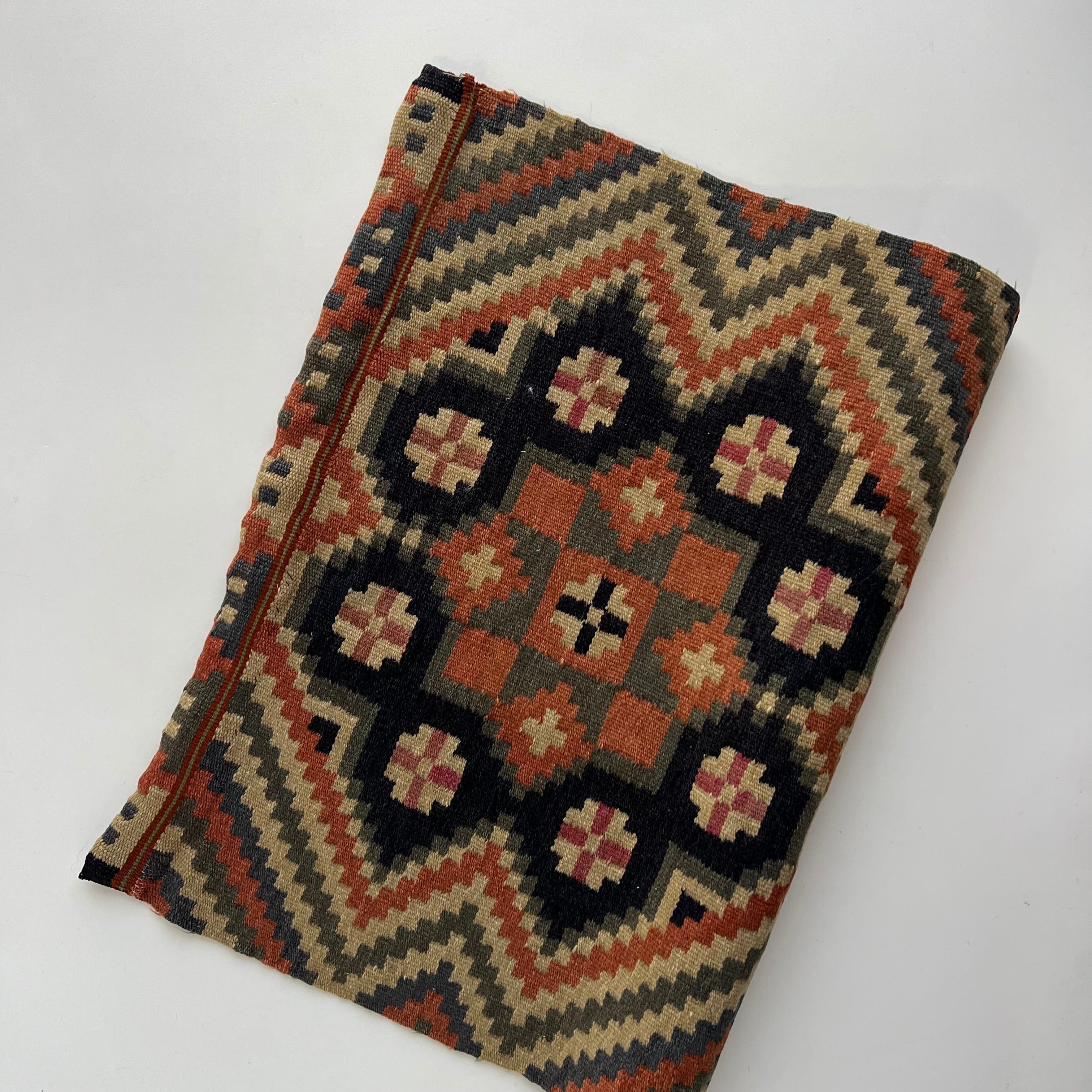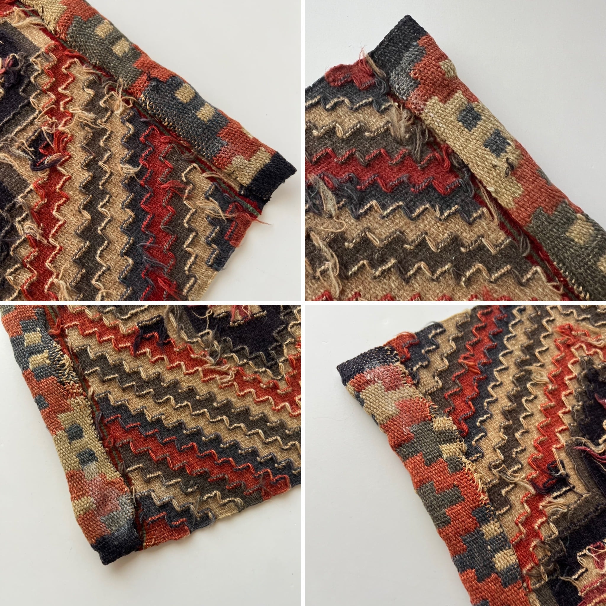 アンティーク品のため、経年による摩耗や糸の飛び出し、ほつれ、汚れ、使用感が見られますが、