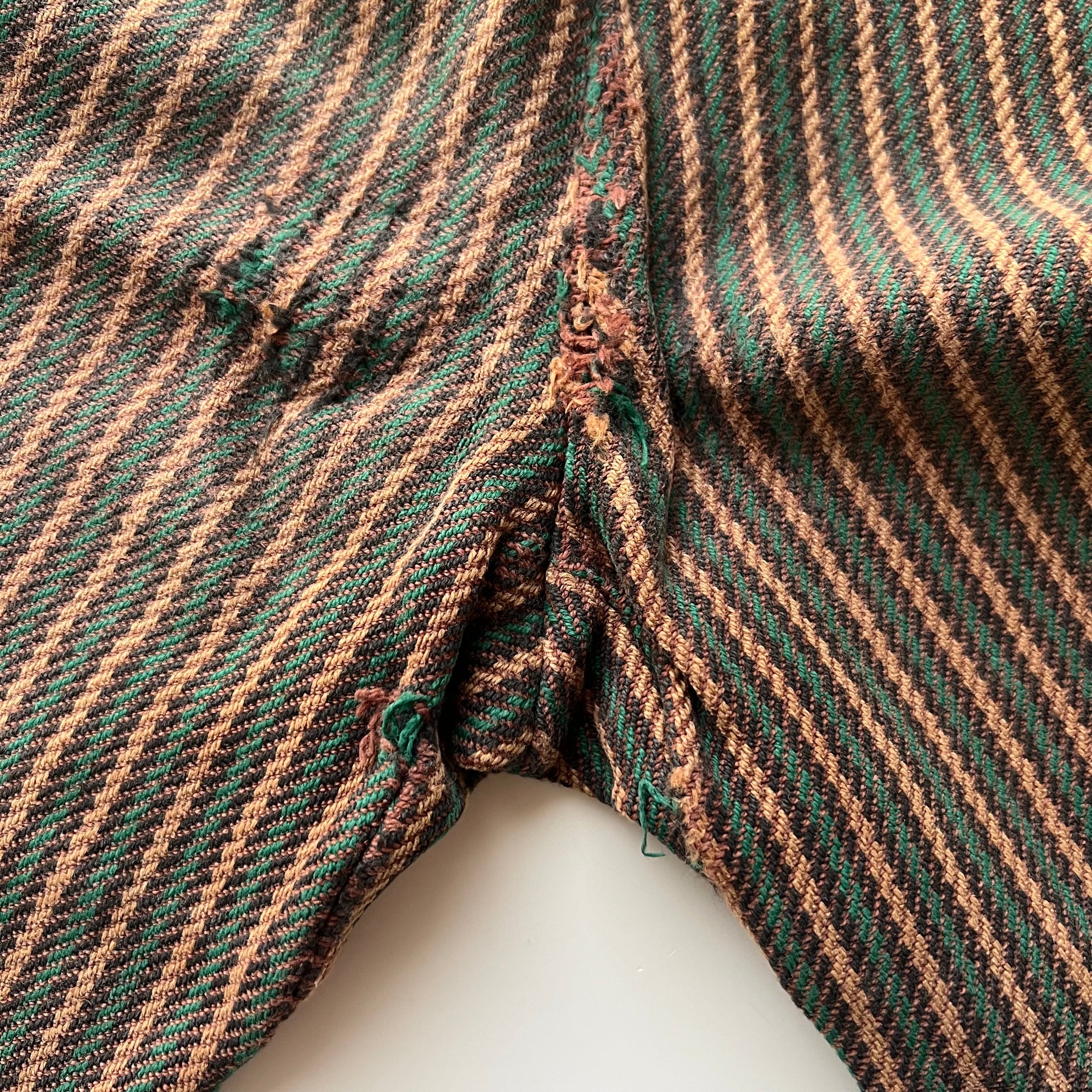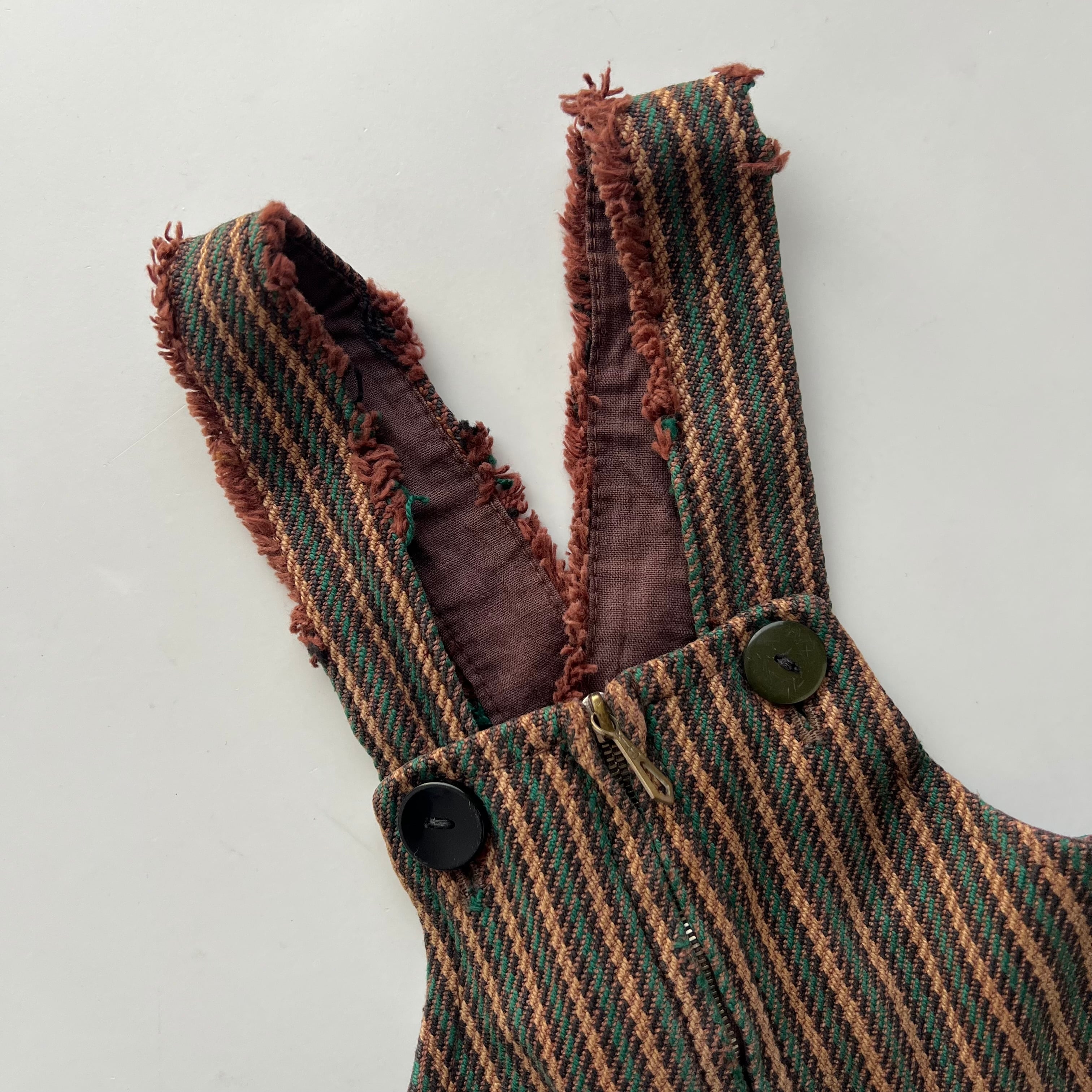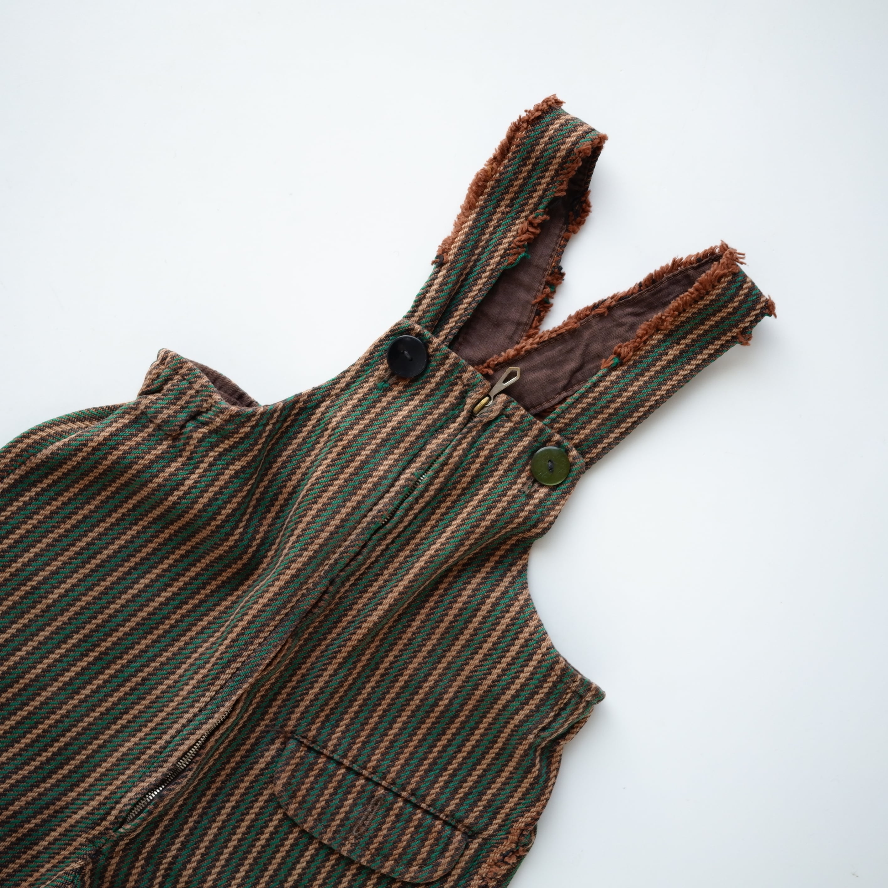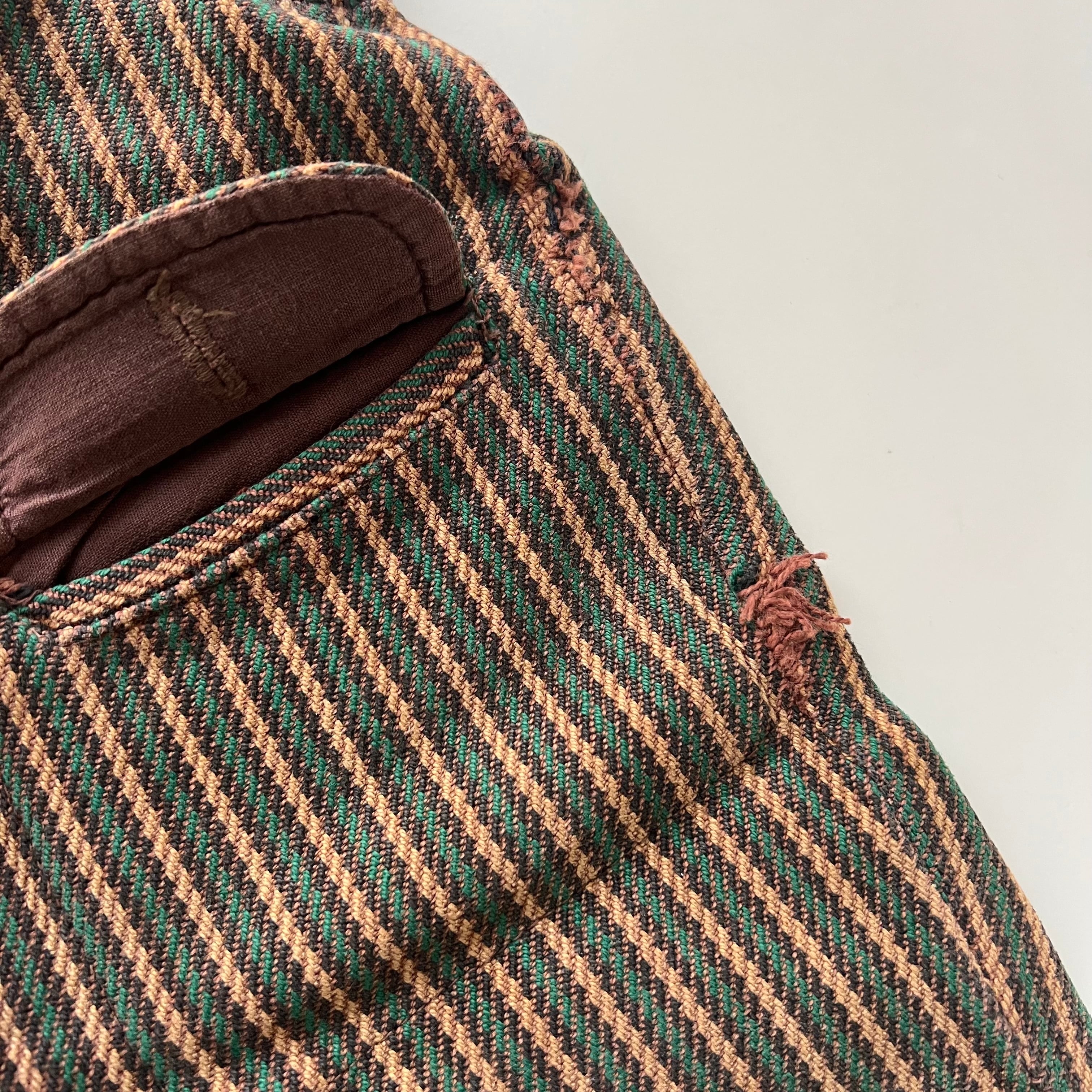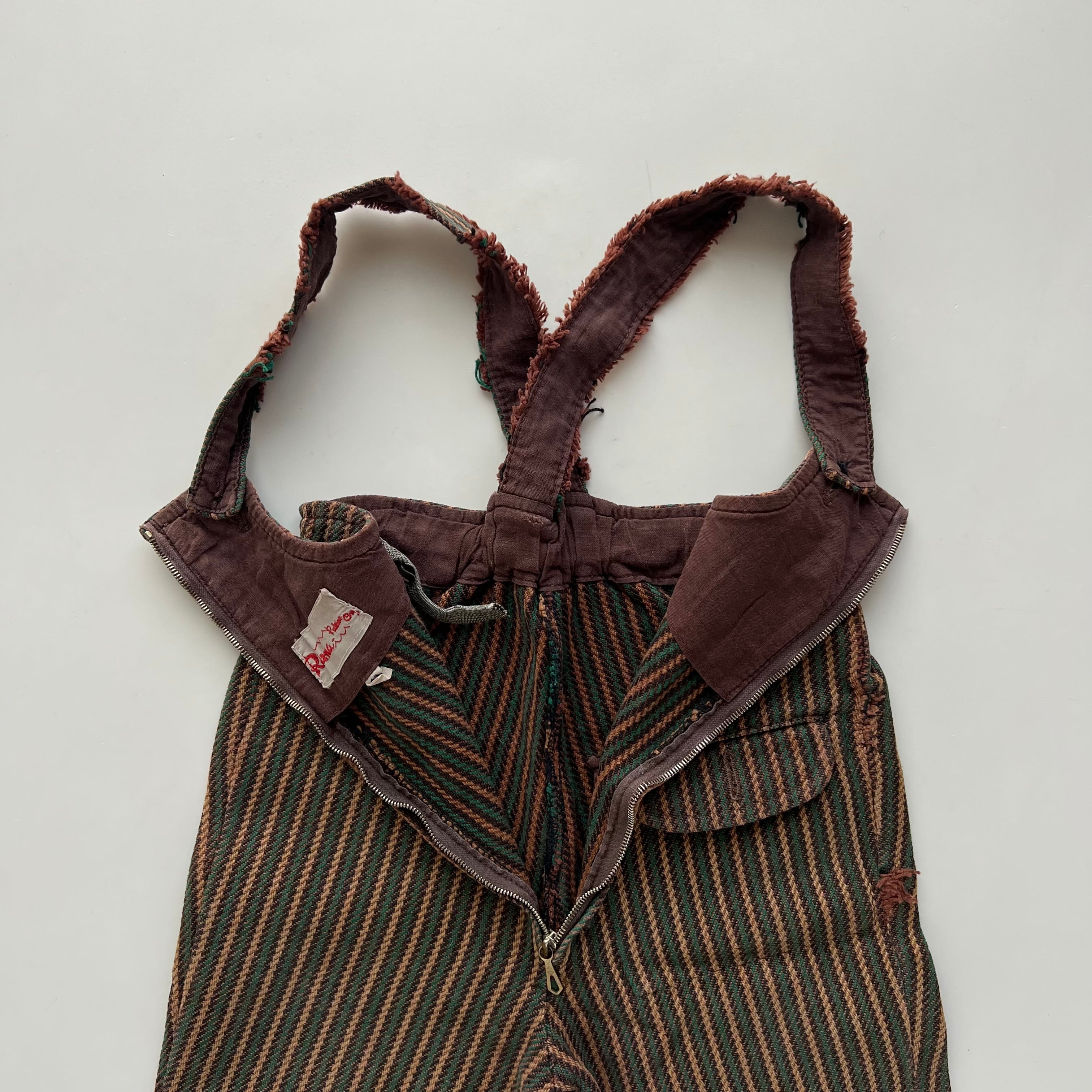 メーカータグや金属ファスナー、素朴な織りの生地感などのディテールから、1960〜1970年代頃に作られたものと推測されます。