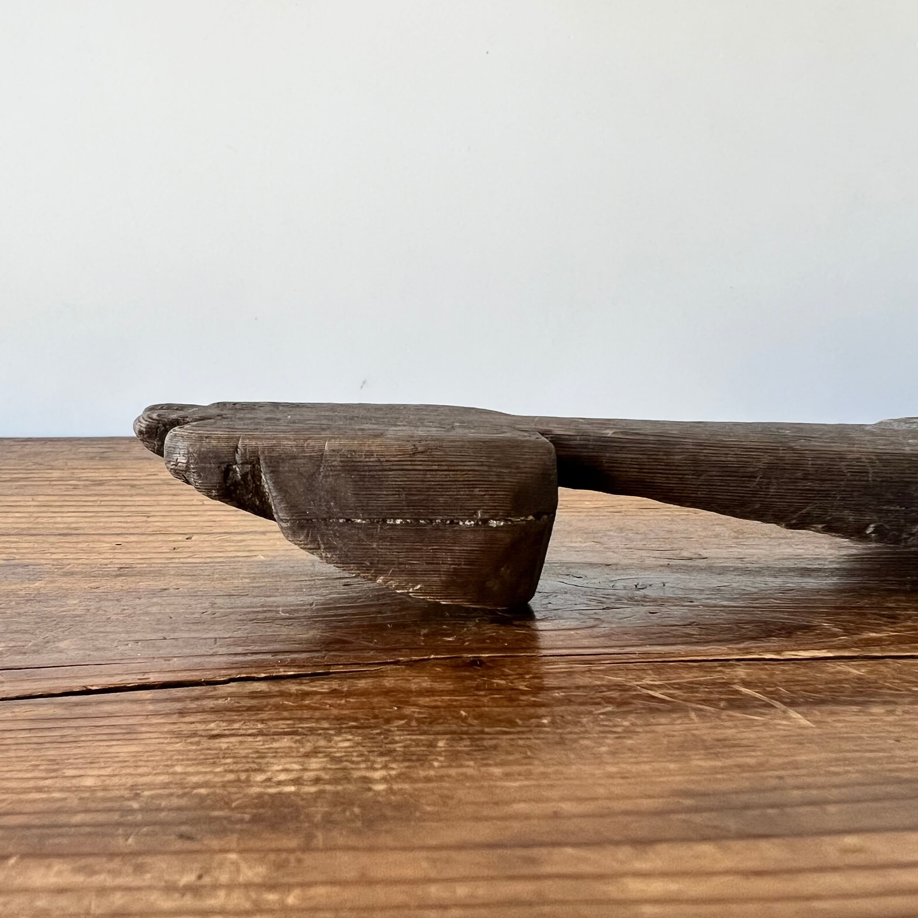 実用品でありながら、素朴で力強いフォルムはどこか彫刻的な存在感もあり、壁に立て掛けたりディスプレイとして空間に取り入れるのもおすすめです。