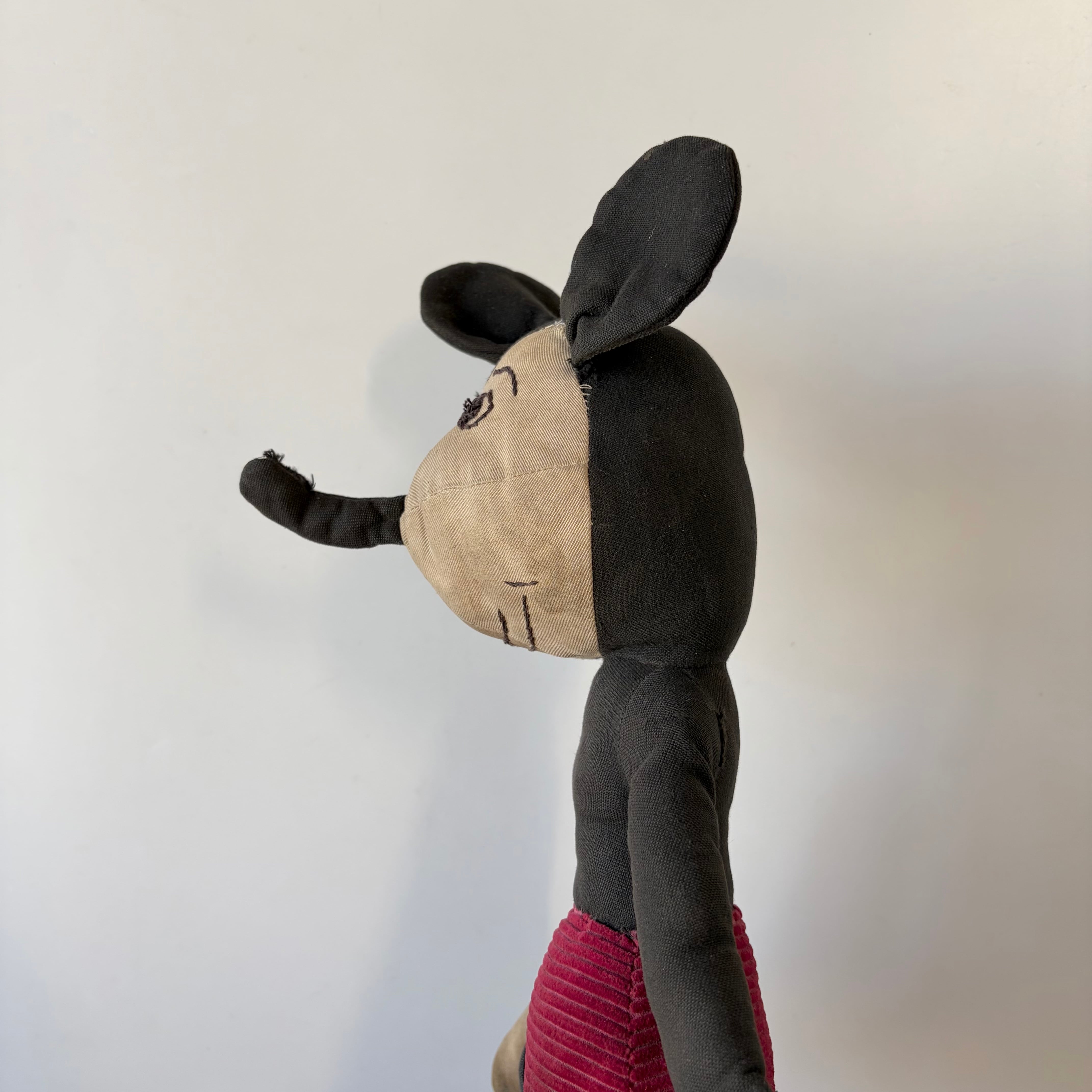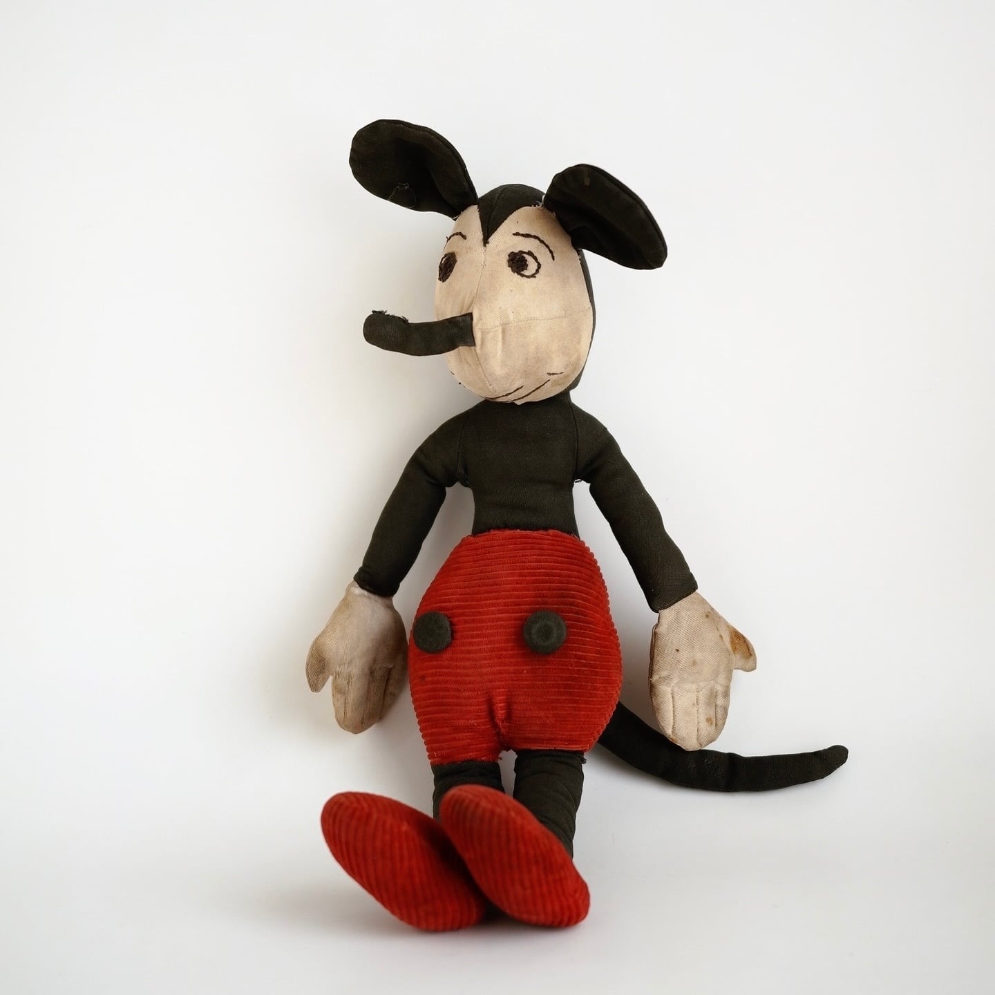 1930年代、世界的な人気を博したミッキーマウスは、フィンランドでも次第にブームとなりました。ヘルシンキのストックマン百貨店では工業製品のミッキーも販売されていましたが、家庭で手作りされた布製のミッキーマウスは、より身近な存在として親しまれていました。