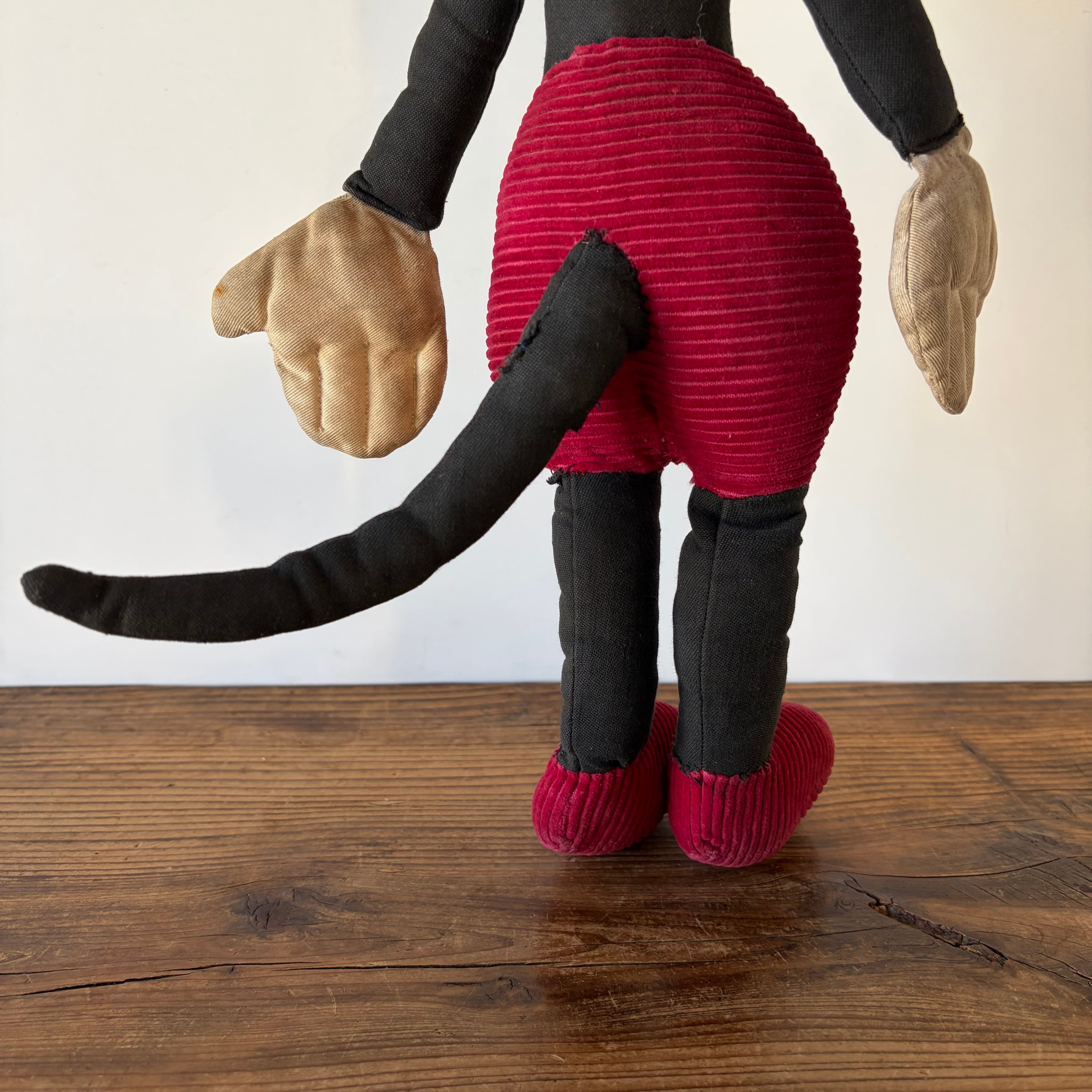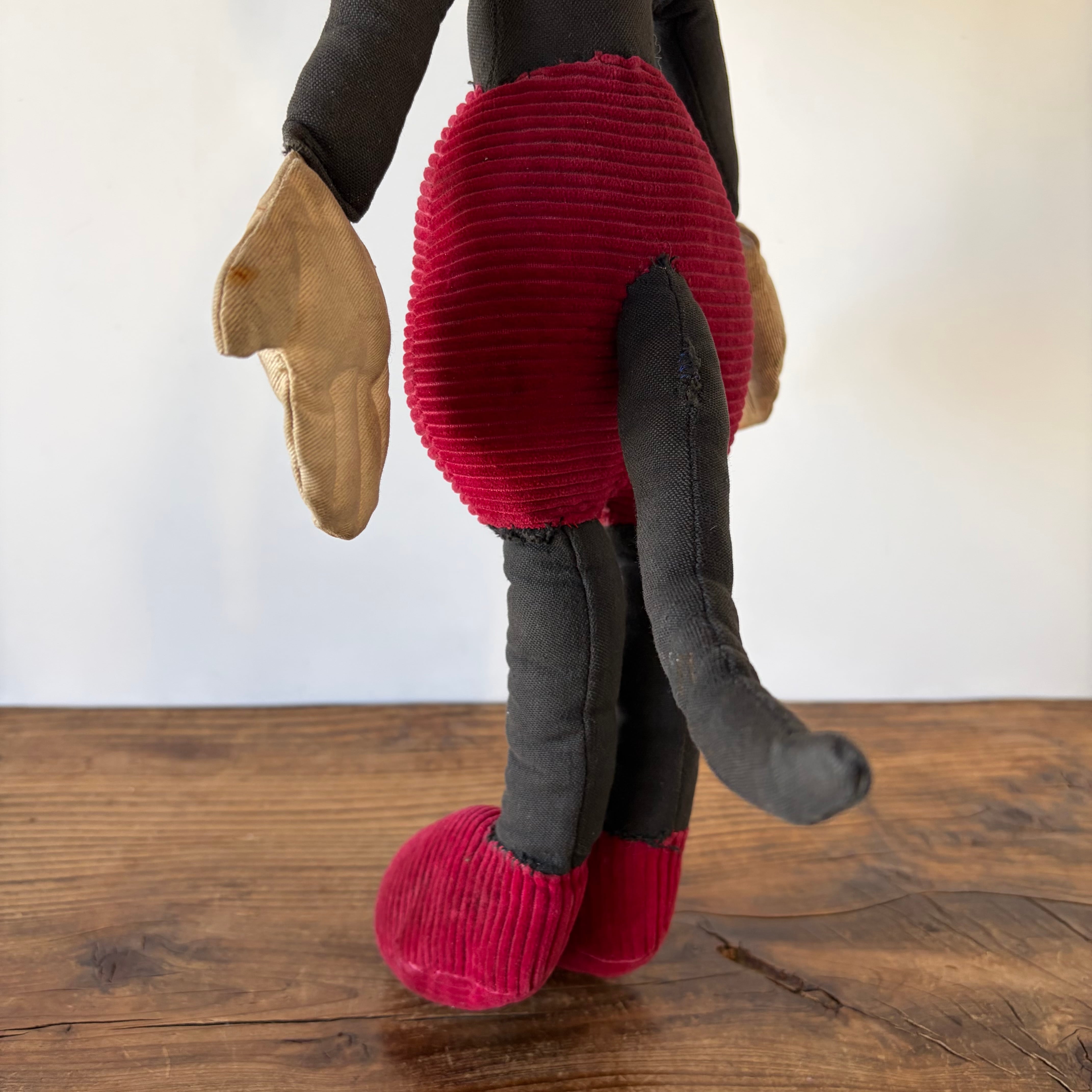 赤いパンツと足にはコーデュロイ生地が使われ、鼻がピノキオのように長く、公式デザインとは少し異なるユニークな表情が印象的です。