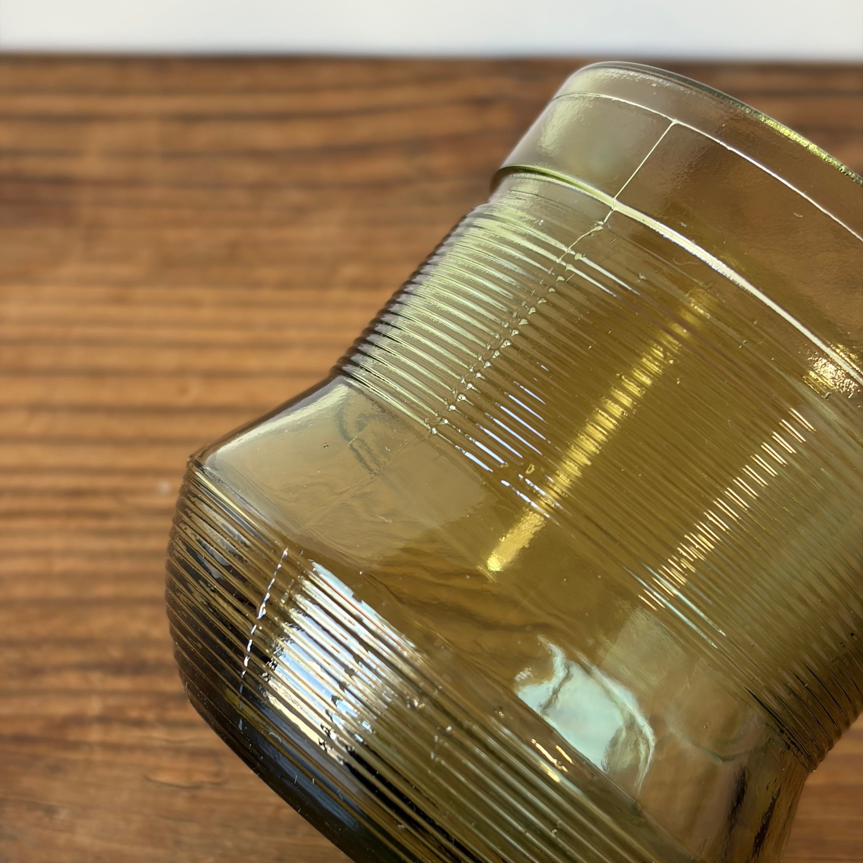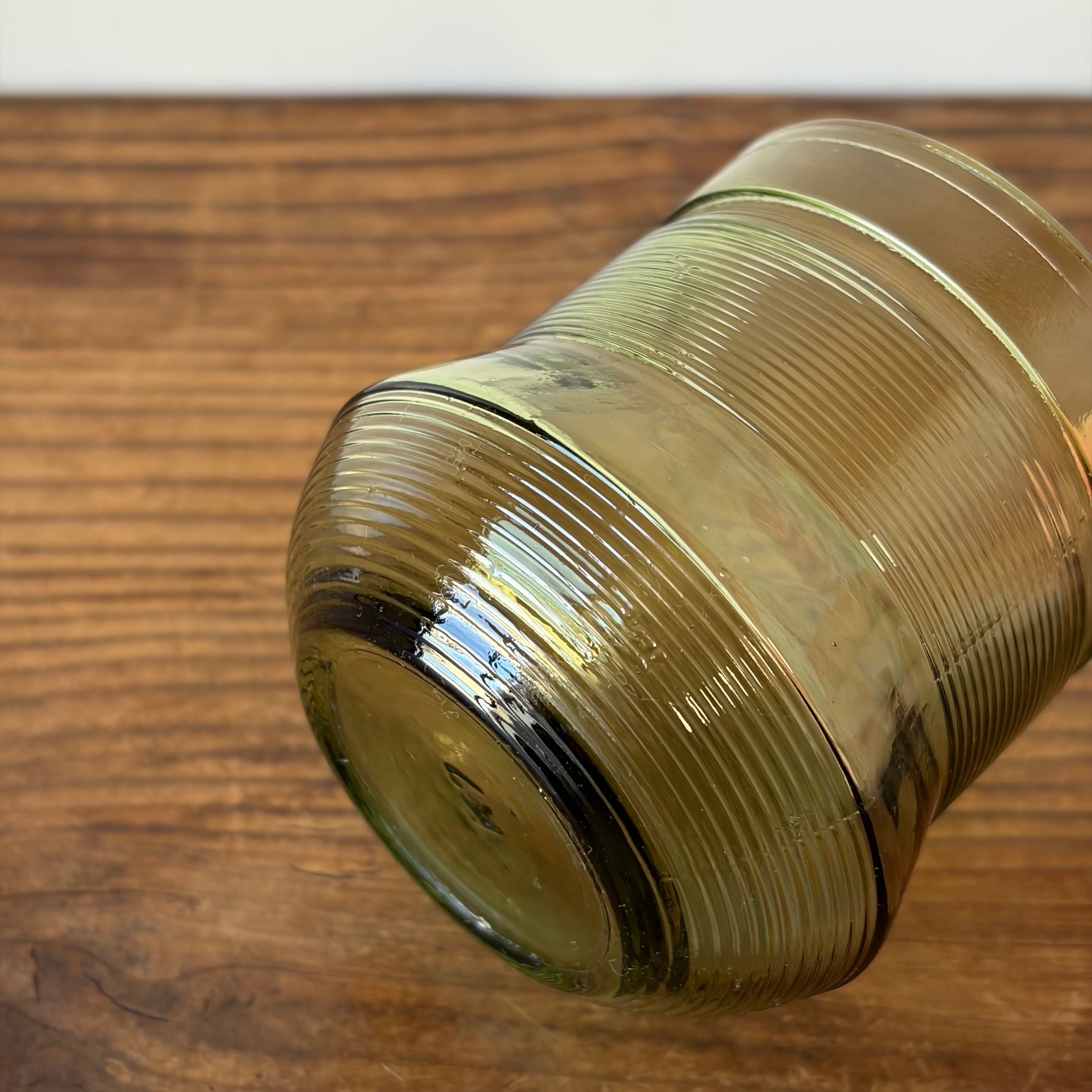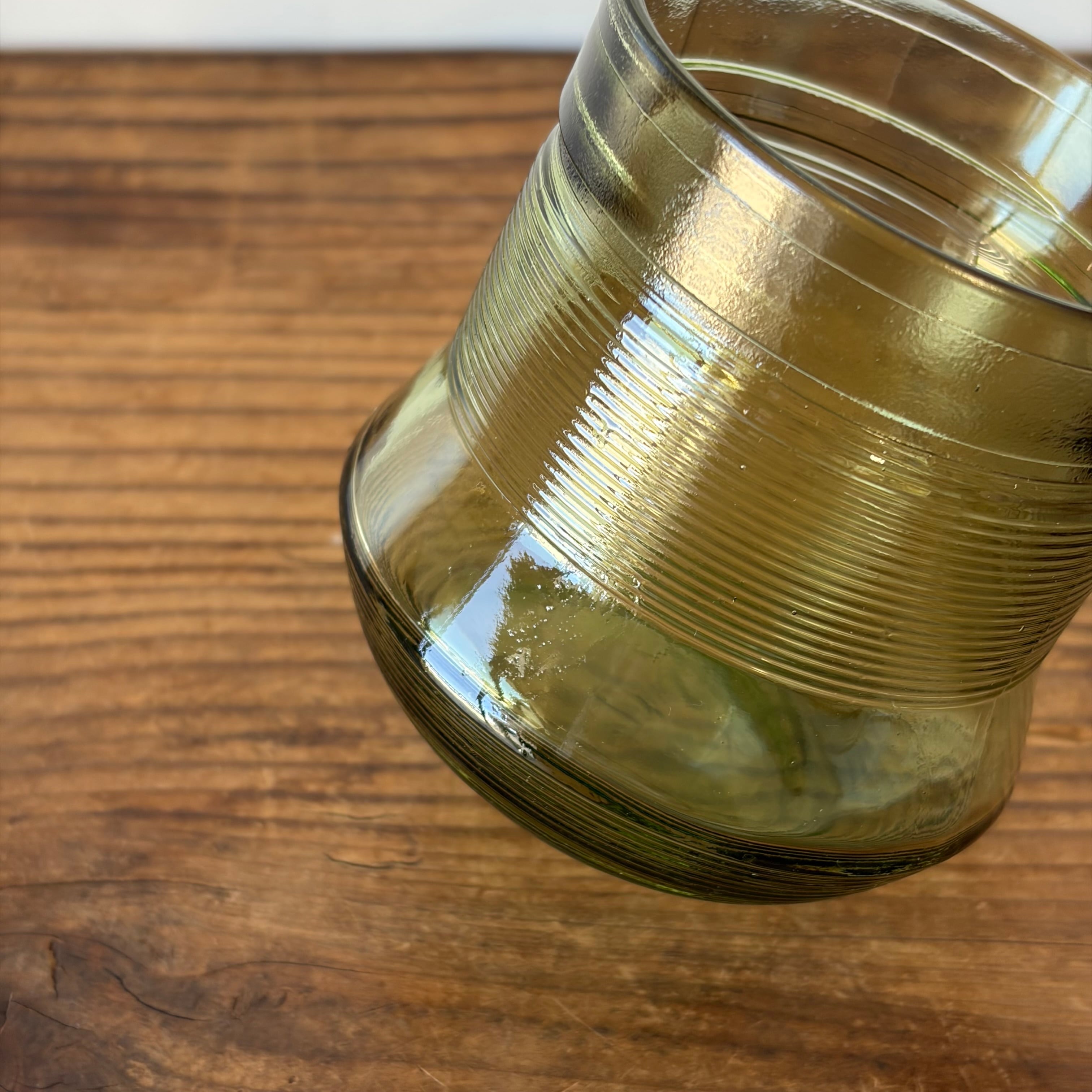 落ち着いたグリーンガラスに、横方向のリブが施されたフォルムが特徴的。