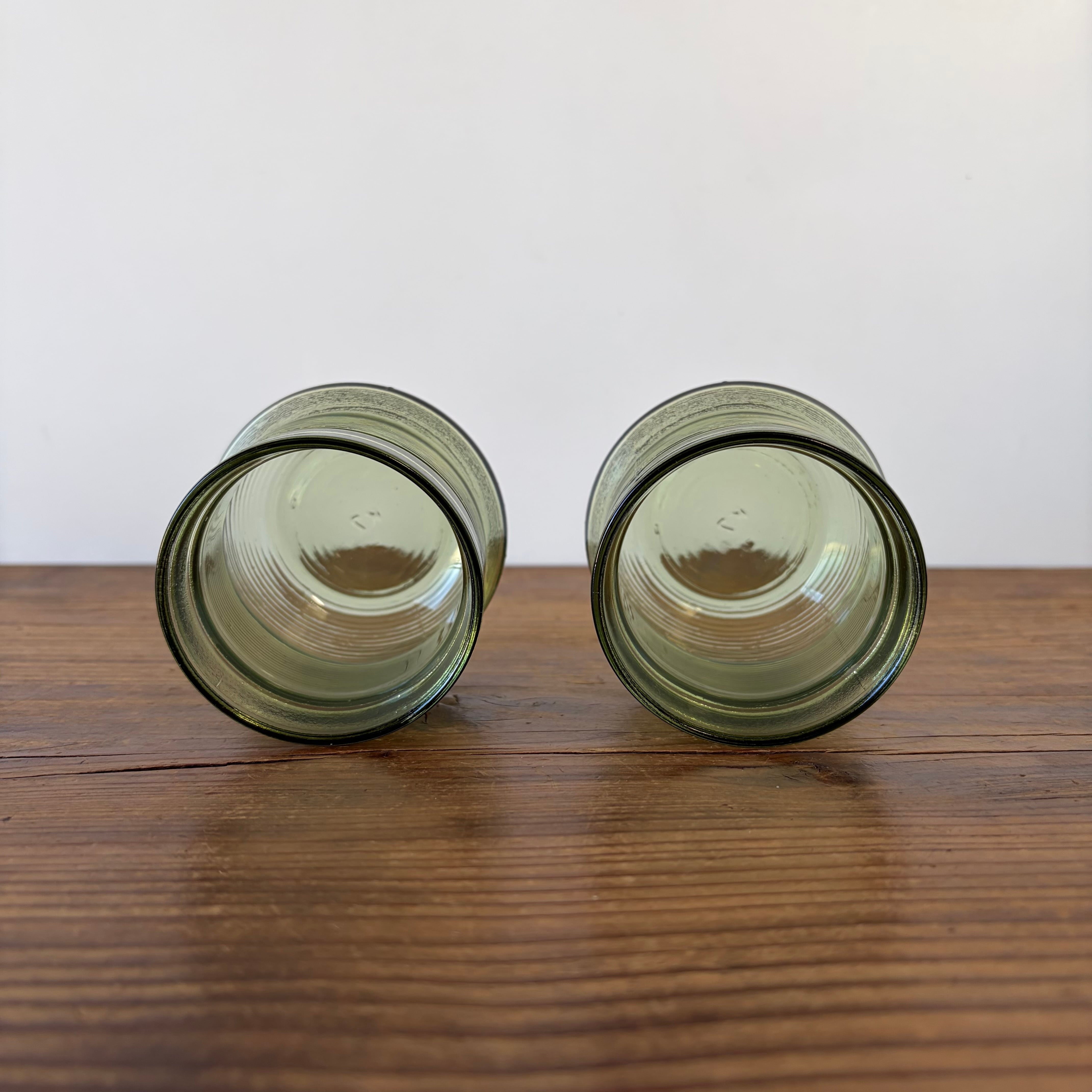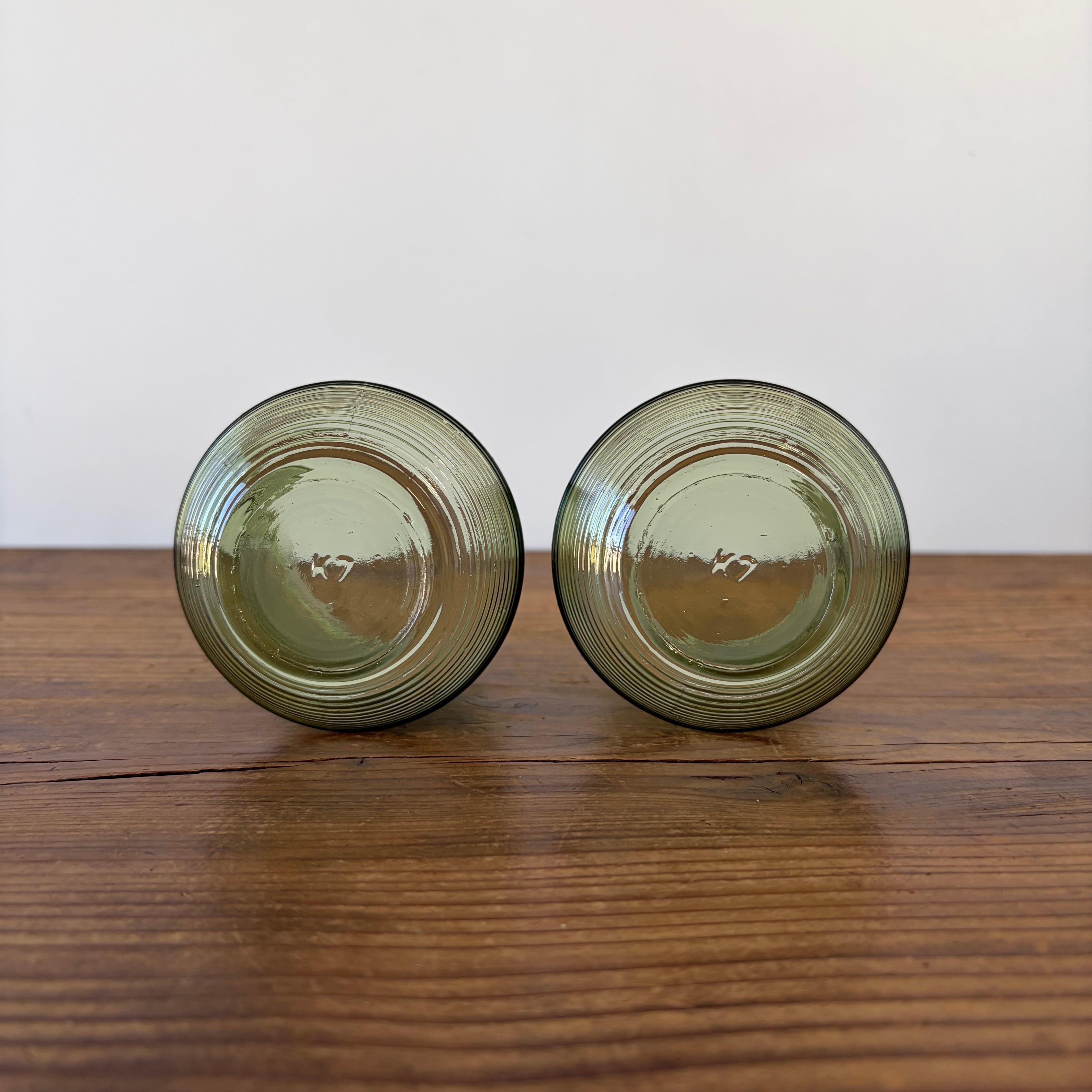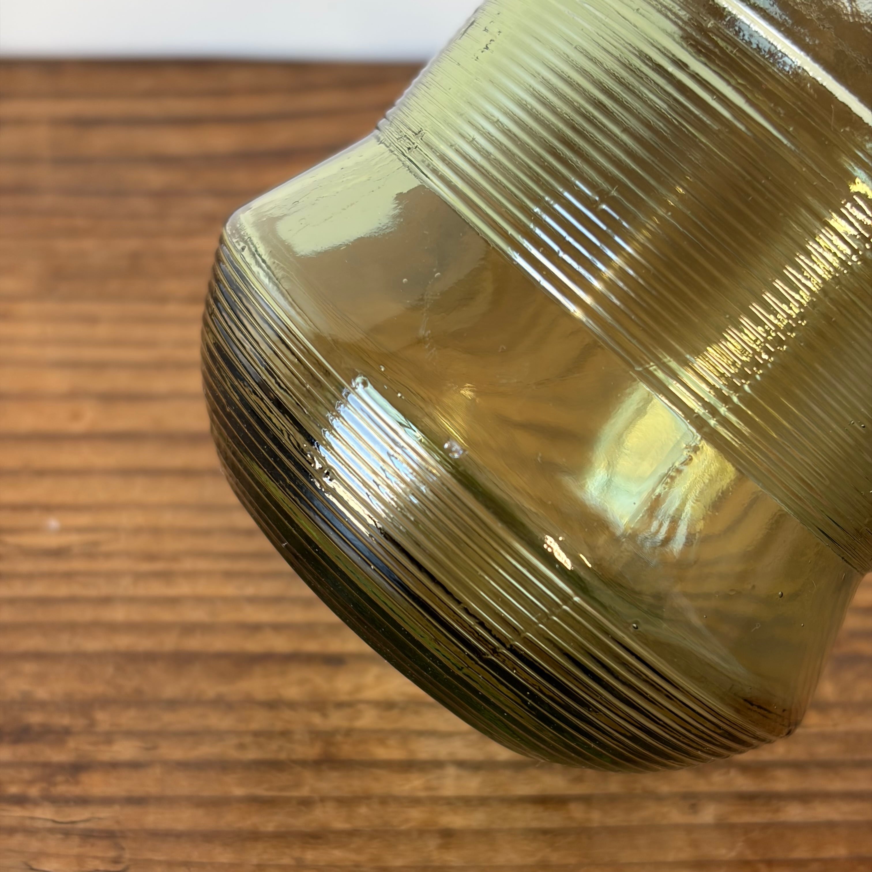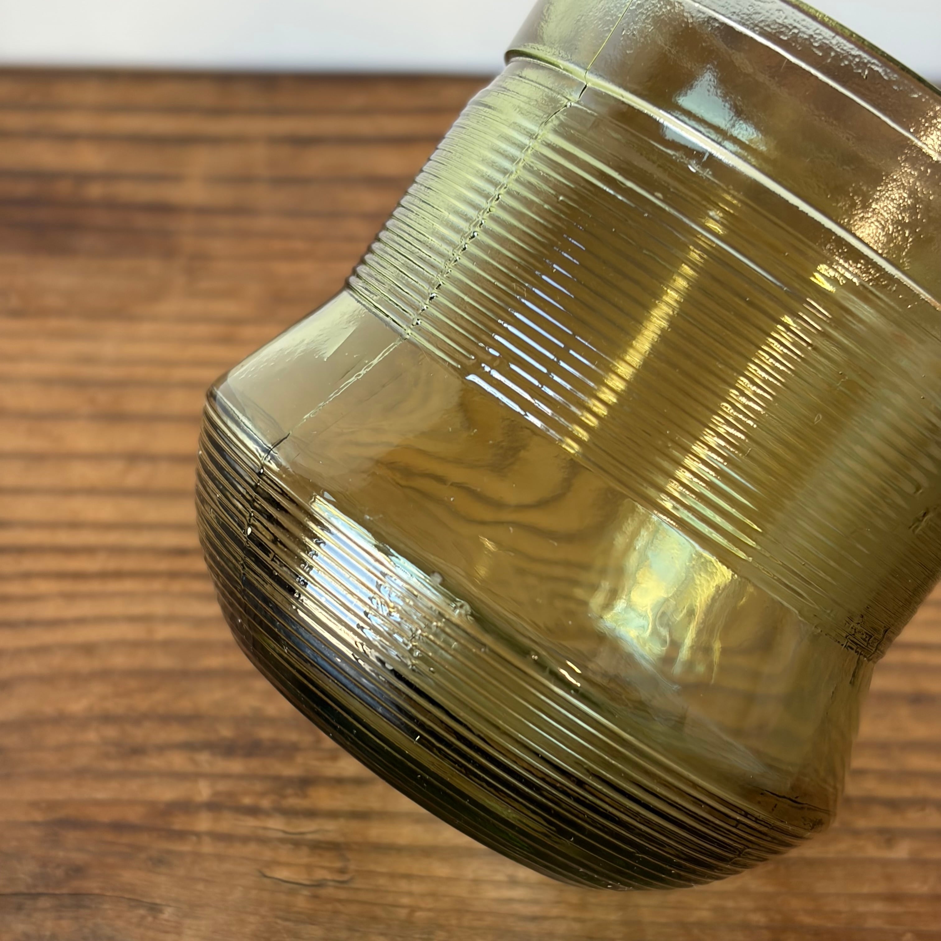 落ち着いたグリーンガラスに、横方向のリブが施されたフォルムが特徴的。