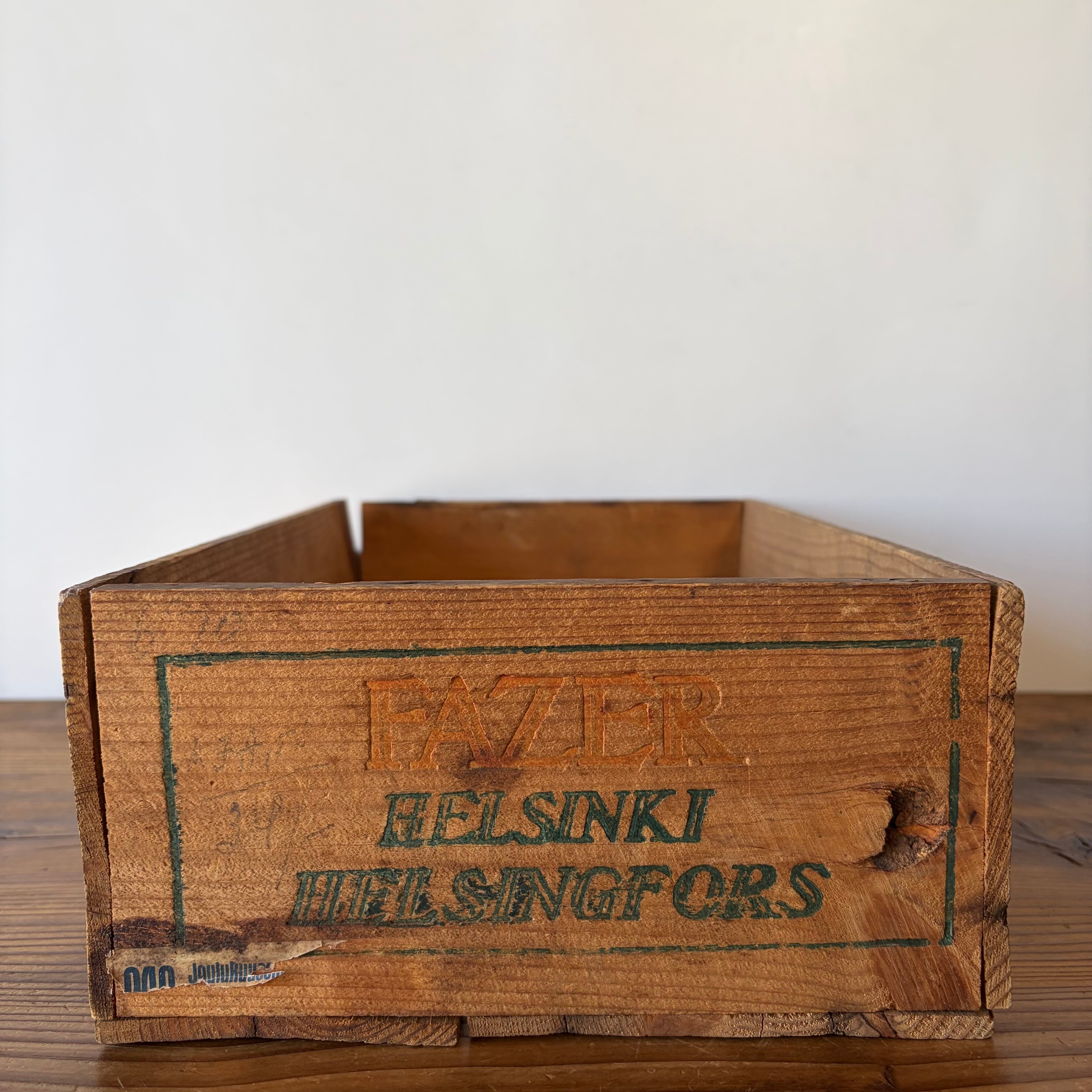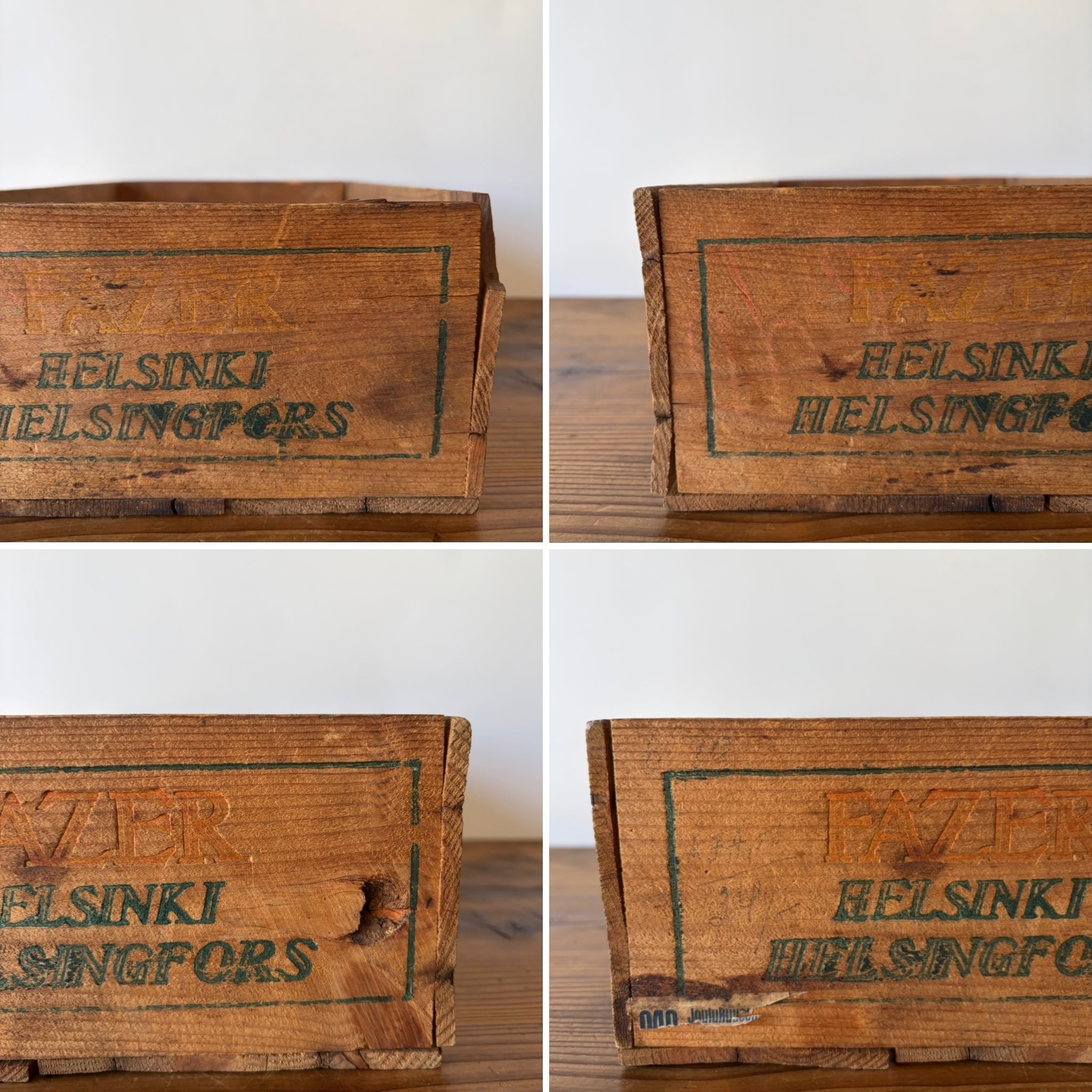 フィンランド語とスウェーデン語、2つの公用語による都市名が併記された、当時の輸送箱ならではの仕様となっています。
