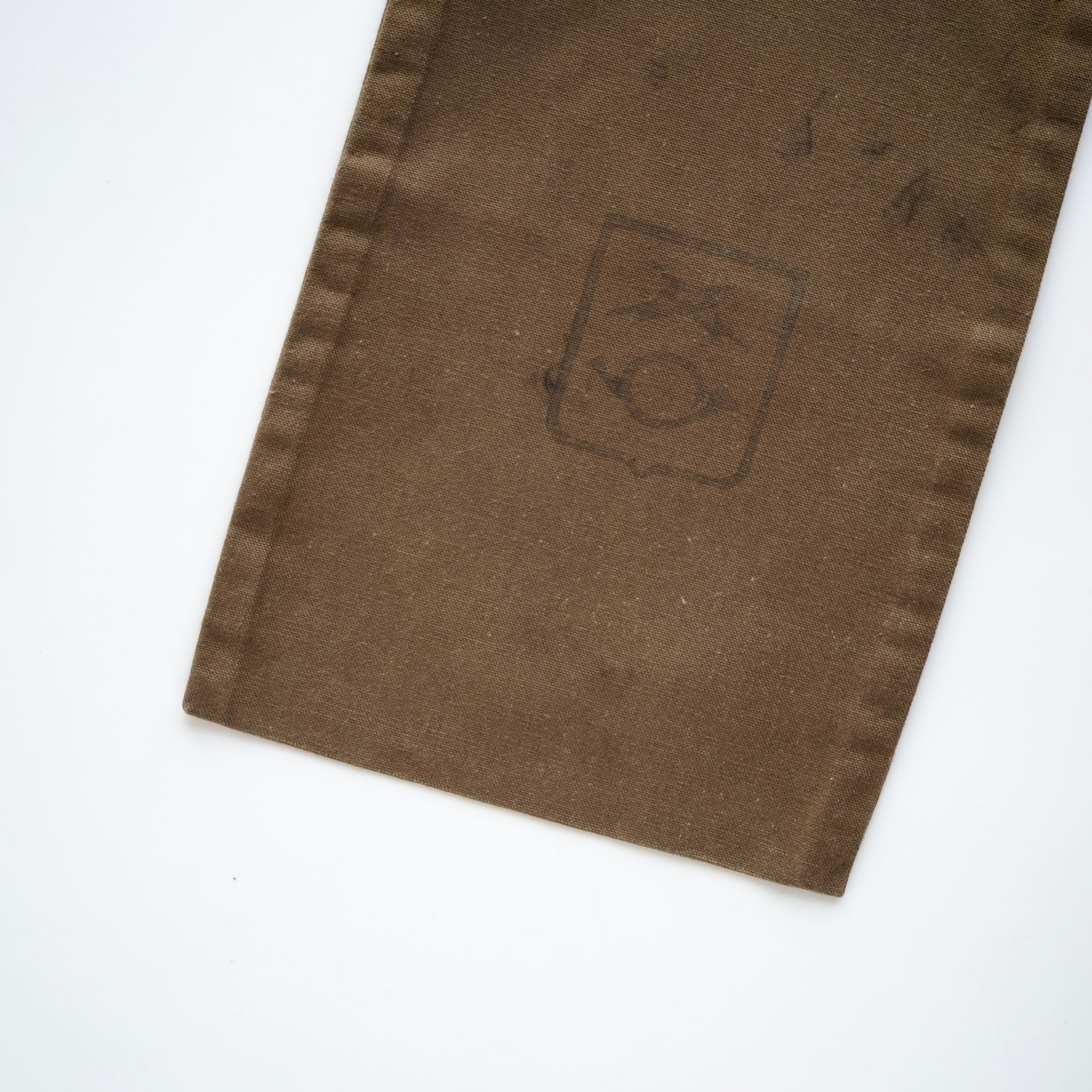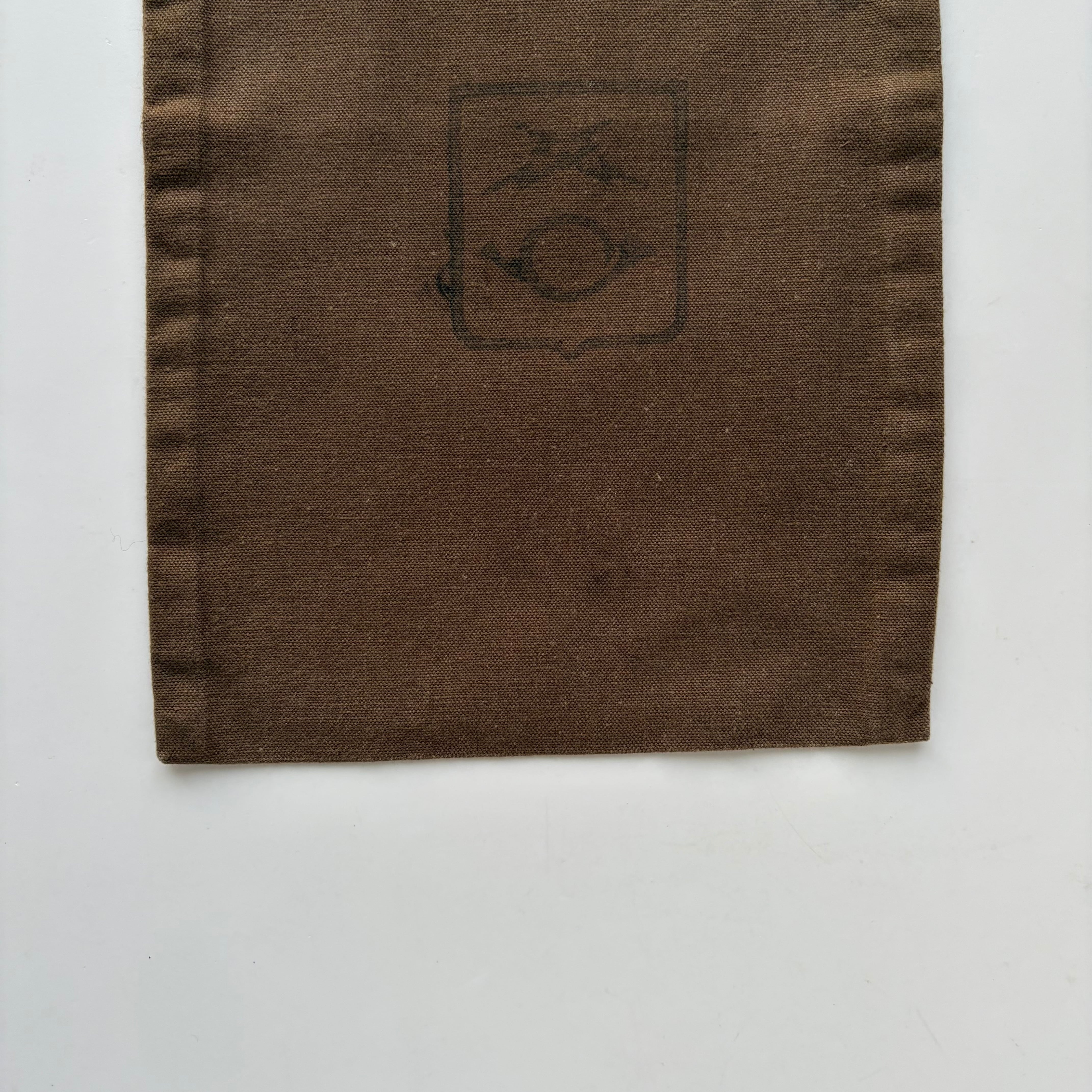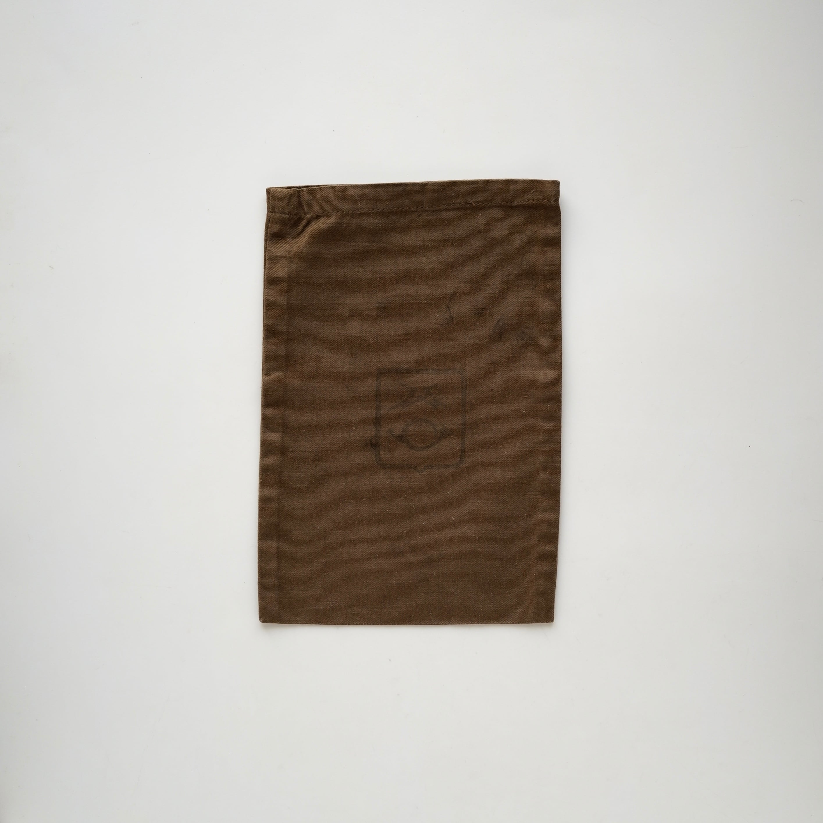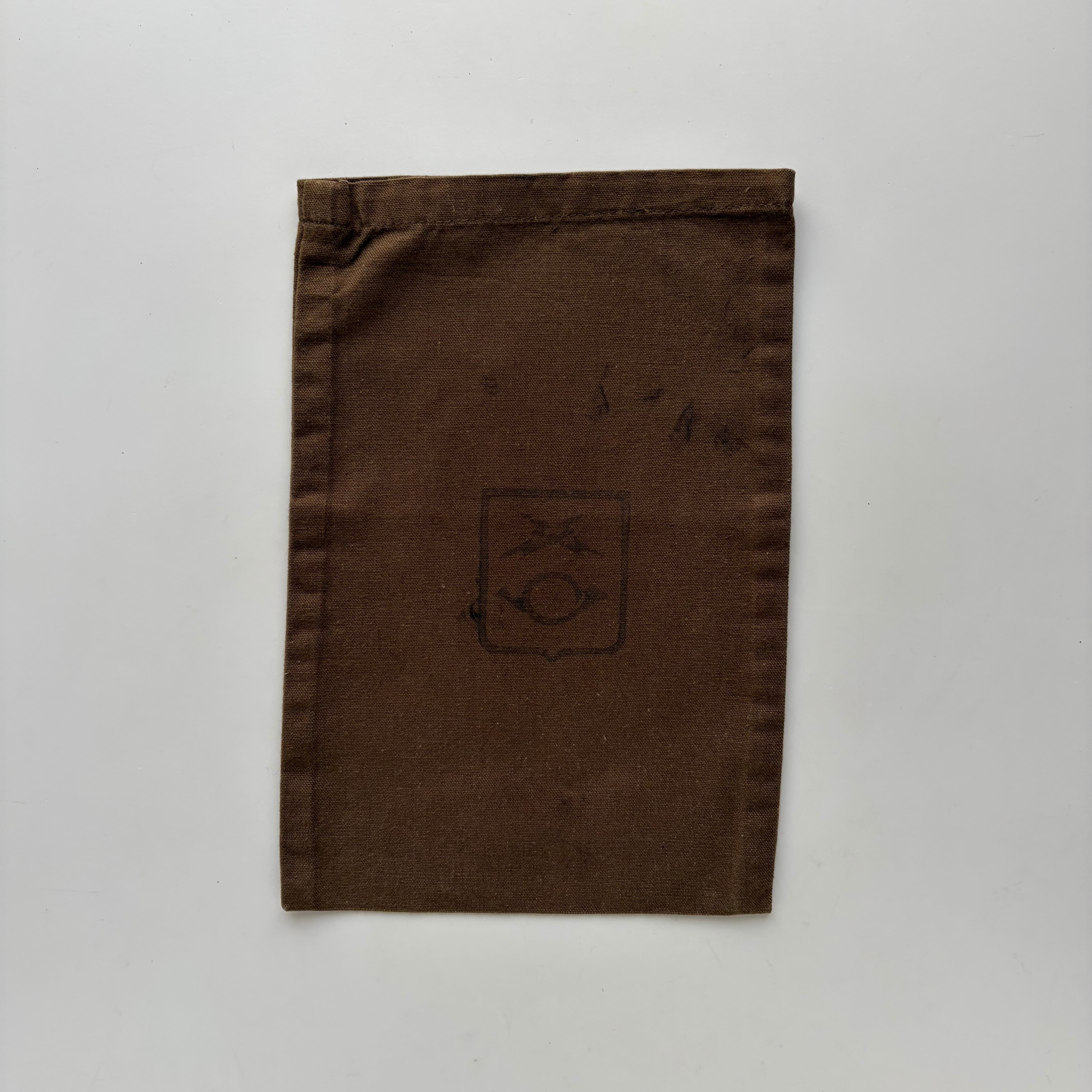 フィンランドで見つけた、郵便ラッパと稲妻を組み合わせた紋章がスタンプされた、ヴィンテージの布製小袋です。