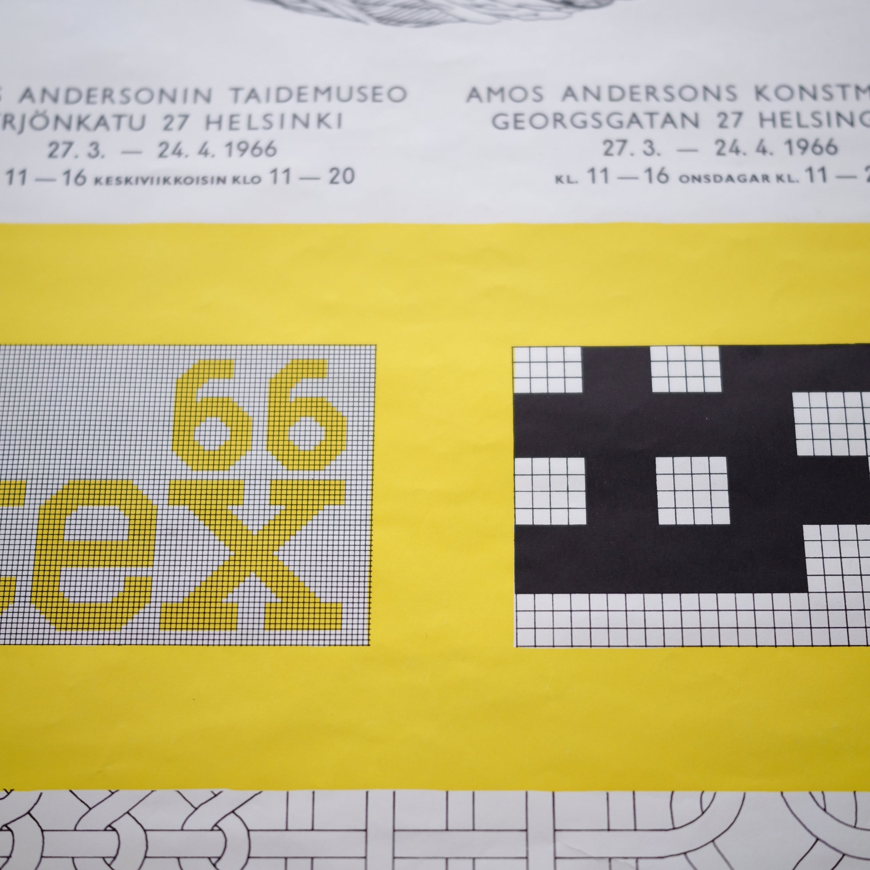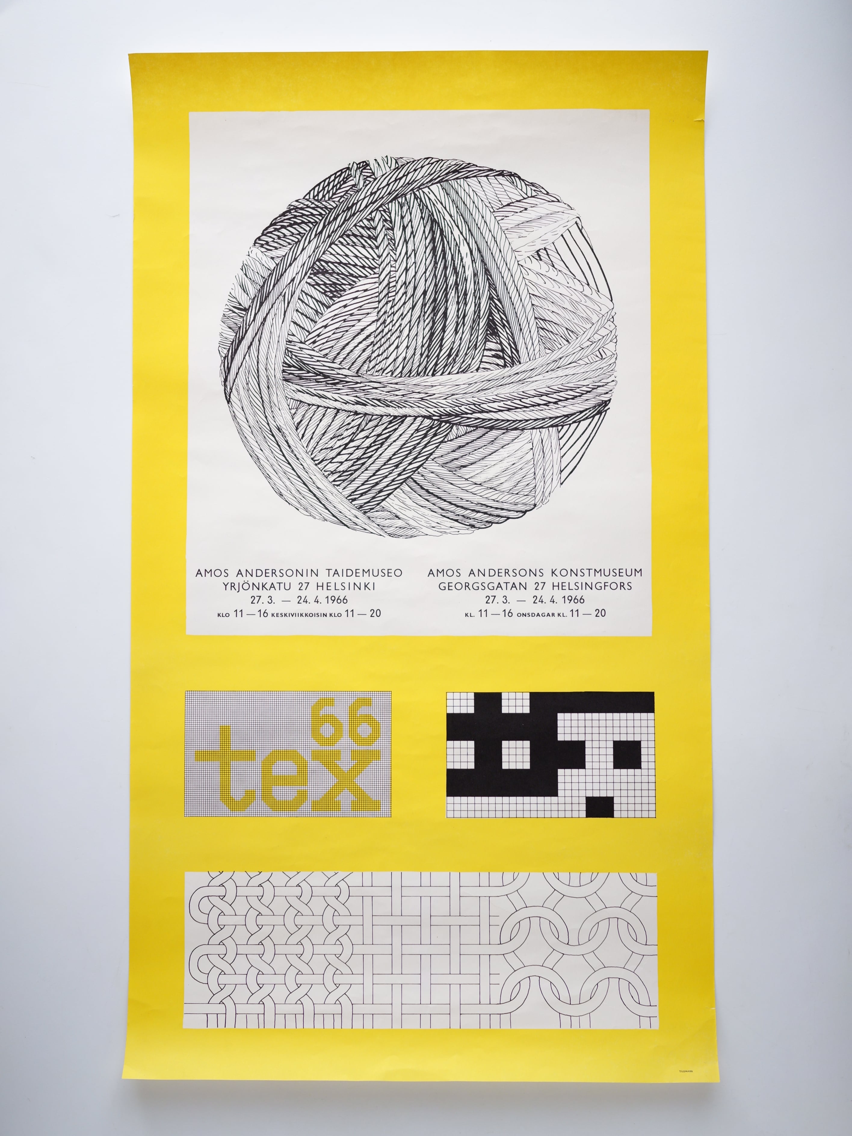 1966年にヘルシンキのAmos Andersonin taidemuseo(アモス・アンダーソン美術館/現 Amos Rex)で開催されたテキスタイル展「TEX-66」のオリジナルポスターです。