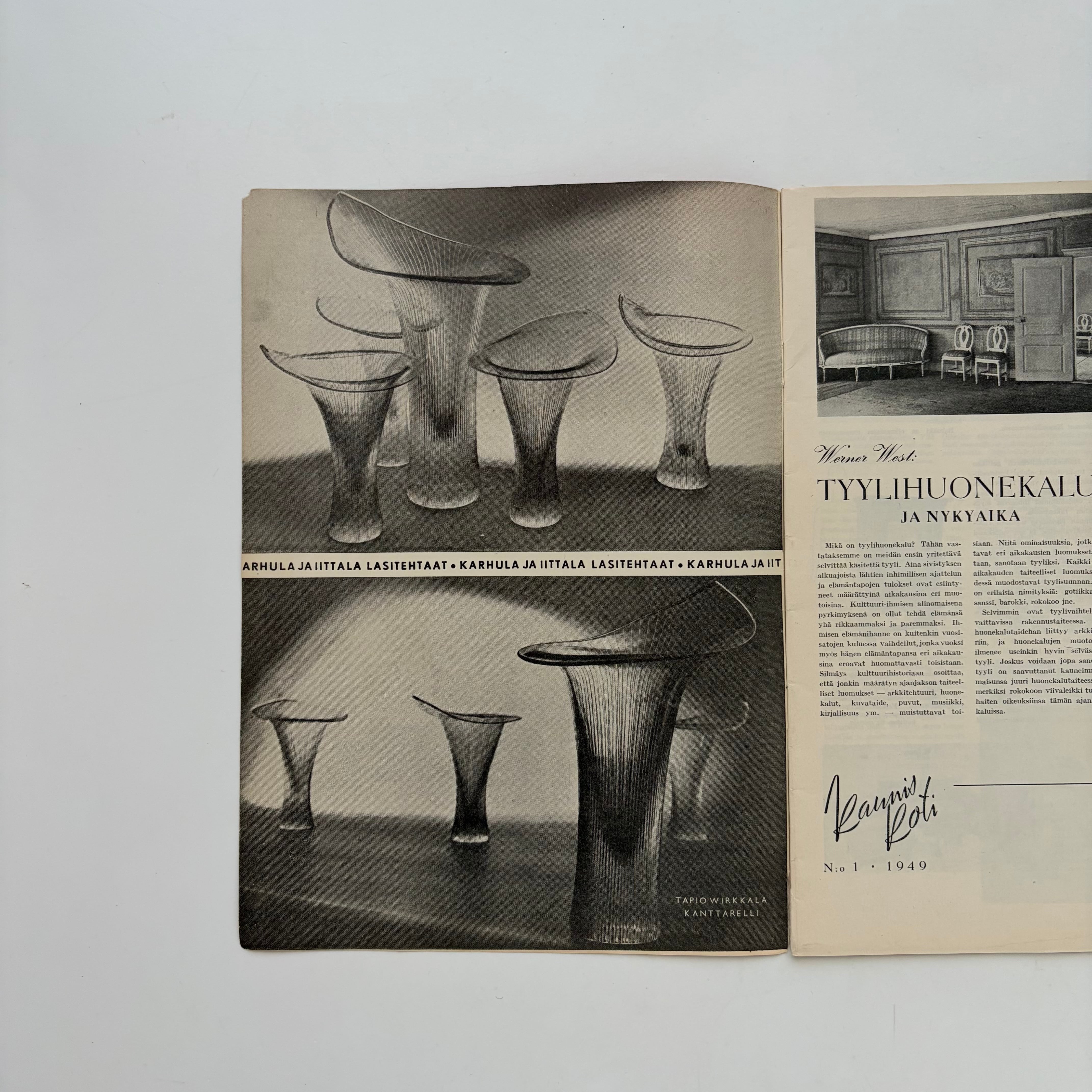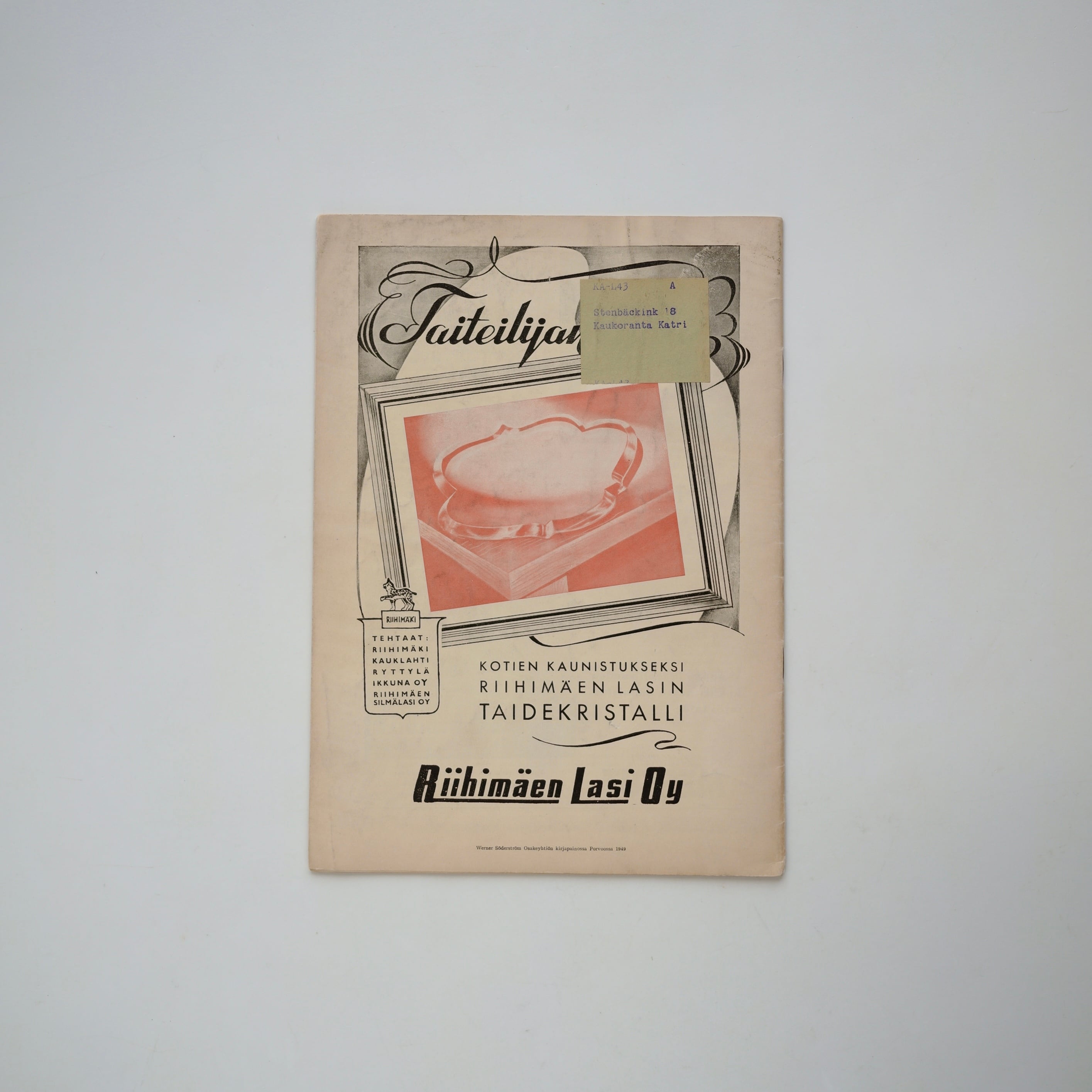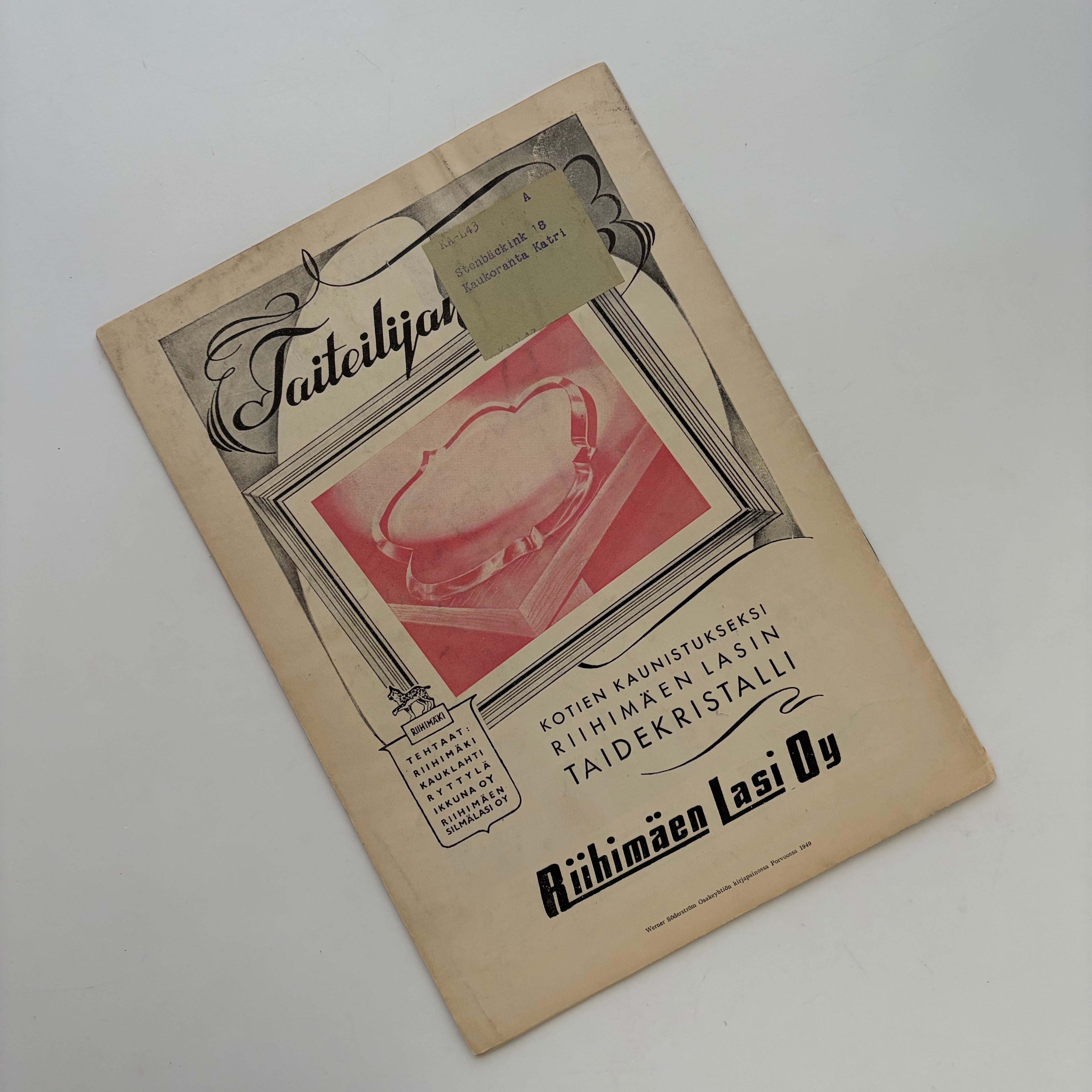 KARHULA–IITTALAをはじめとするメーカー広告が掲載されており、1950年前後のグラフィックや商業デザイン資料としても大変興味深い一冊です。